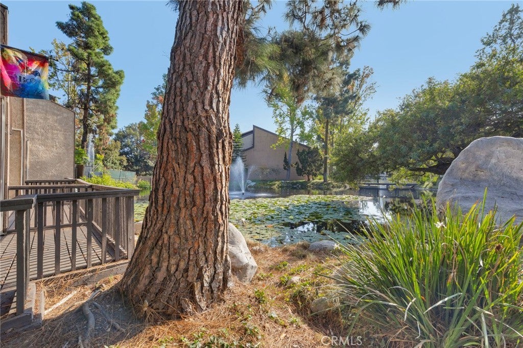 Gorgeous Lake view with wood deck that leads to waters edge...View of lake with water lilies, exotic birds, turtles, fish, trees in this incredibly beautiful community...this condo is a Studio with small rm could be br/office.. entire has been completely remodeled few years ago new counter tops, new cabinets, new laminate Cherry Wood flooring...stone flooring in bath and kitchen... Decorator wall covering with accent lighting plus recessed lighting in living rm and dining area, all new decorator designed sink and shower...New air conditioning...new electrical outlets...Clubhouse with ping pong, pool table, sauna, reading and workout room near by... Walk to Eldorado Park and Nature Center...Bike path next to entrance that takes you to Seal Beach...HOA fee pays for all hot and cold water, trash, building and ground maintenance, security, fire insurance. Community gated.