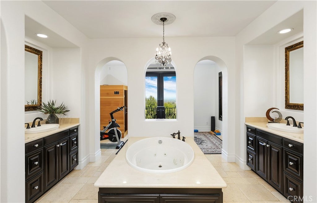 AMAZING VIEWS & LOCATION! Quiet & private cul-de-sac location on a SINGLE-LOADED STREET. Perched on a rare single-loaded cul-de-sac, this stunning estate offers jaw-dropping, unobstructed 180° views—from the Irvine Spectrum and Saddleback Mountains to Downtown LA, snow-capped peaks, sparkling city lights, and Disneyland fireworks. Every room captures a picture-perfect backdrop. Step inside to discover an expansive open layout with soaring ceilings and a grand-scale great room ideal for entertaining. This highly upgraded home features 5 spacious bedrooms + an optional 6th (currently used as a second office), including a full en-suite bedroom on the main level. The luxurious primary suite upstairs is a private retreat, complete with two bonus spaces perfect for a home office, gym, or media lounge. Designer finishes throughout include exotic limestone floors, rich Brazilian rosewood upstairs, a sweeping marble staircase with custom Italian iron railing, granite kitchen countertops, and spa-inspired marble bathrooms. Anderson French doors, custom drapery, 10” baseboards, wood blinds, and hand-selected chandeliers add to the refined elegance. Outside, enjoy a resort-style backyard with a built-in BBQ, sink, fireplace, and fire pit—designed for California indoor-outdoor living at its best. Located in Irvine’s premier Quail Hill community with world-class amenities: 3 resort pools, fitness center, tennis courts, hiking/biking trails, and top-rated Irvine schools. Just minutes to Irvine Spectrum, Laguna Beach, IVC, and UCI. This is a once-in-a-lifetime view home—don't miss it!