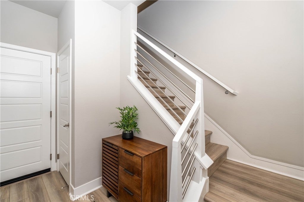 Why buy new when this home offers the same features—plus premium upgrades—all for the same price? Stunning Panoramic Views from the Vincent Thomas Bridge to the Palos Verdes Hills. Rare end unit and the last remaining view property in Ponte Vista by Meritage. This home is filled with natural light and enjoys refreshing morning and evening breezes-plus breathtaking, star-lit views. A rare opportunity to own a peaceful retreat that makes every day feel like a getaway. Beautifully upgraded, move-in ready townhome featuring contemporary design and cutting-edge efficiency. Enjoy the elegance of sleek black quartz countertops paired with a custom stone tile backsplash, a full wrap around island and luxury vinyl plank flooring throughout. The open-concept kitchen flows seamlessly into the bright, airy living space, enhanced by natural light pouring in from the south-facing second-story balcony. This north-facing homesite is just steps from the resort-style pool and the expansive, master-planned amenity center. App-controlled smart home features include a video doorbell, Wi-Fi-enabled door lock, and a two-stage smart thermostat—adding convenience and security at your fingertips. The flexible first bedroom is an en-suite, perfect for a home office, gym, or creative studio. Upstairs, the third-floor primary bedroom features a slider window that opens to a private balcony-perfect for enjoying coffee or evening breezes, it is a peaceful retreat with dual sinks, a custom walk-in closet outfitted with decor plus natural wood-toned cabinetry and soft-close doors., and stunning views of city lights, hills, and the harbor. Paid solar panels, Two EV charging station in the garage, Whole-home water filtration system. Ideally situated with easy access to freeways,- shopping and the beach, and is just minutes from the up-and coming San Pedro waterfront- and exciting hub for dining, entertainment and future development. . Friendly neighbors, vibrant community activities, parks with open grassy areas and dog parks for all sizes, and scenic walking trails. Additional highlights include: Paid solar panels, EV charging station in the garage, Garage has epoxy floor, Whole-home water filtration system, Access to the largest park in the community. Located in a secure, gated neighborhood of stylish three-story townhomes, this vibrant community is less than five miles from the Pacific Ocean and offers a host of resort-style amenities.