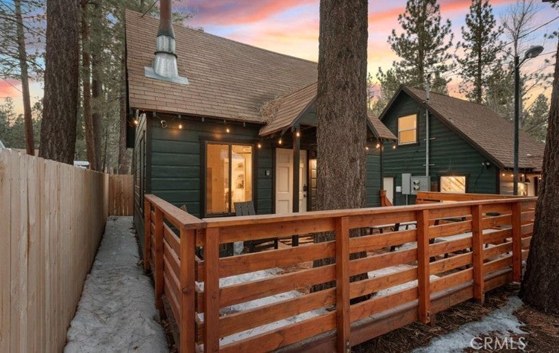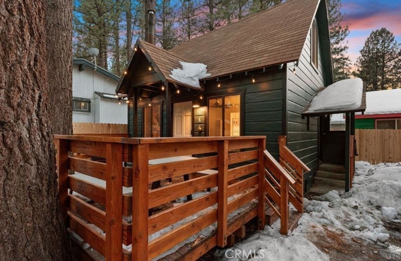 Looking for options w/ income? This fully upgraded 2 unit property near Snow Summit Ski Resort offers plenty. Current owner uses this as a successful income producing property-one cabin as a short term rental and the 2nd cabin as a 30 day or longer Mid Term rental. This property has good rental history and includes two detached 1 bedroom units. One has an extra half bath. The large corner lot has been completely taken advantage of with two separate private spas for each unit w/ mountain murals adding to the serene setting. Plenty of parking and fully furnished and decorated with every detail carefully thought of. Including sleeper sofas in each living room and functional kitchens. Nice mountain setting w/ tall pine trees and close to everything Big Bear has to offer. .