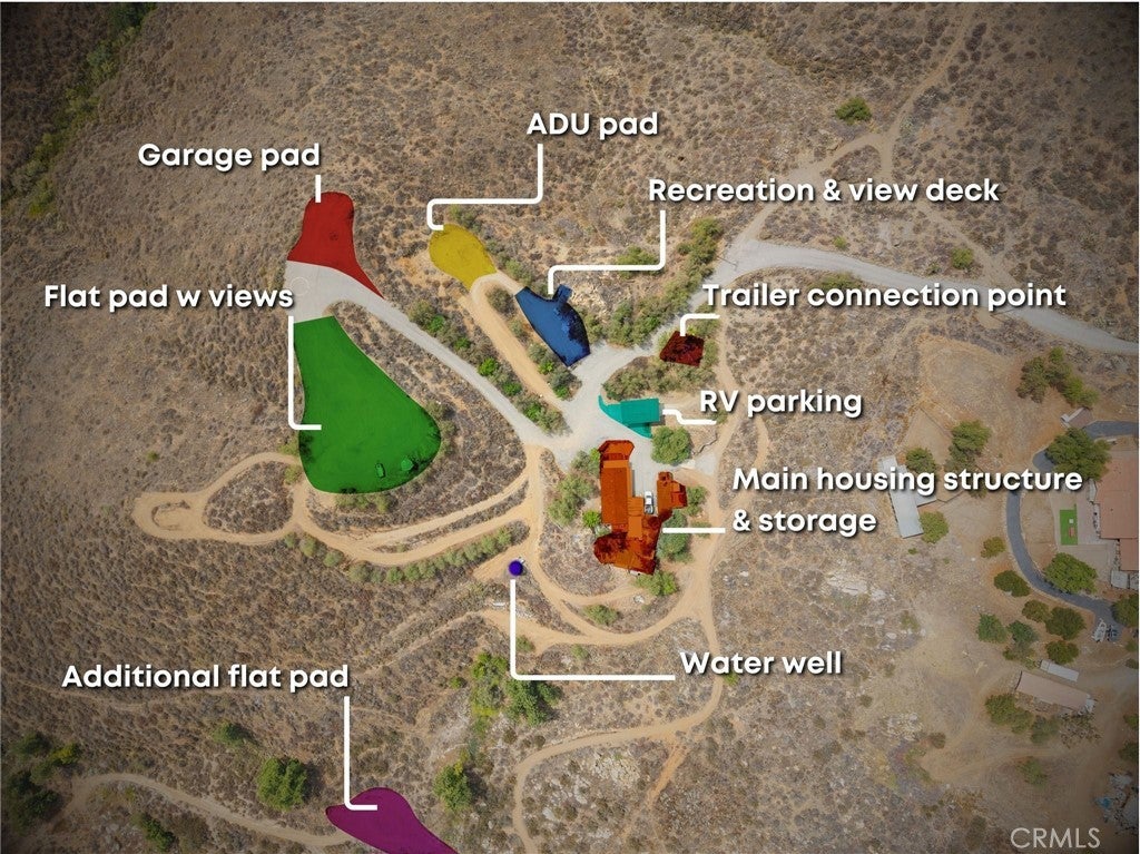 If you're searching for a private compound featuring an existing home and multiple amenities, this property is a must-see! It offers a scenic pad with incredible views to build your dream home, an additional pad perfect for an ADU, and a dedicated RV parking area with full hookups for family and friends. Plus, there's extra covered RV parking, a spacious recreation area for family fun, and a versatile workshop for your projects. Don't forget about the functioning water well with a brand new motor is on property with a 7,500g storage tank. Words, videos, or images can't do this property justice—it's truly something you need to experience in person. Custom house plans for main pad available at no cost!!! Contact me today to schedule your private tour!