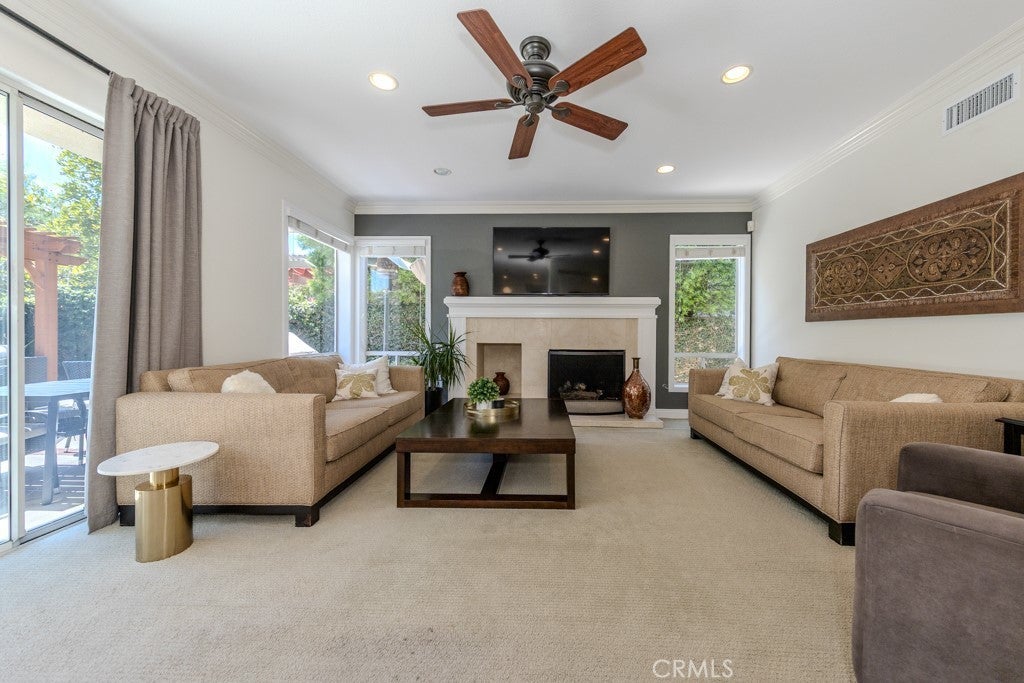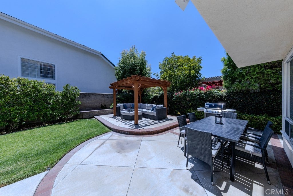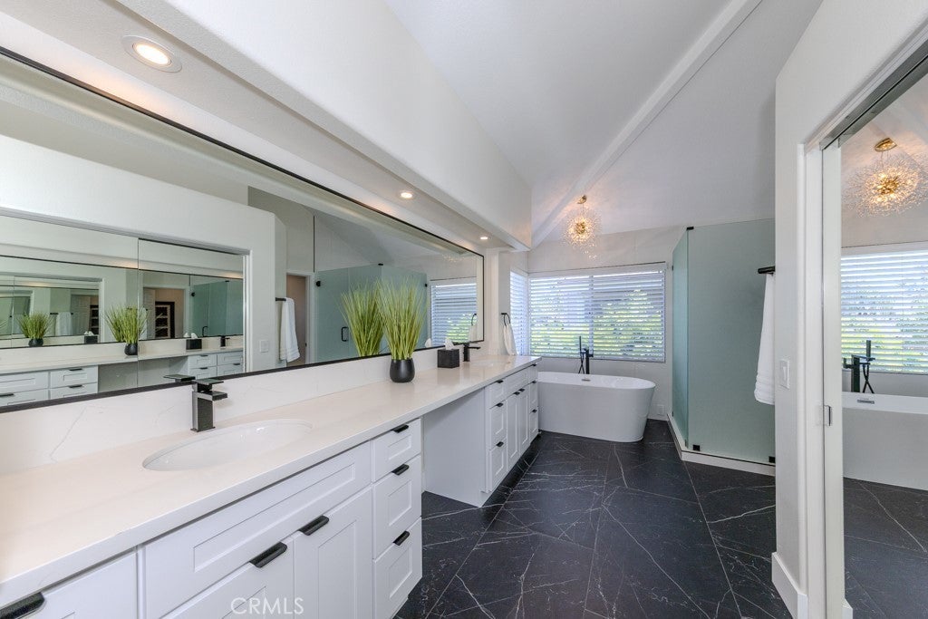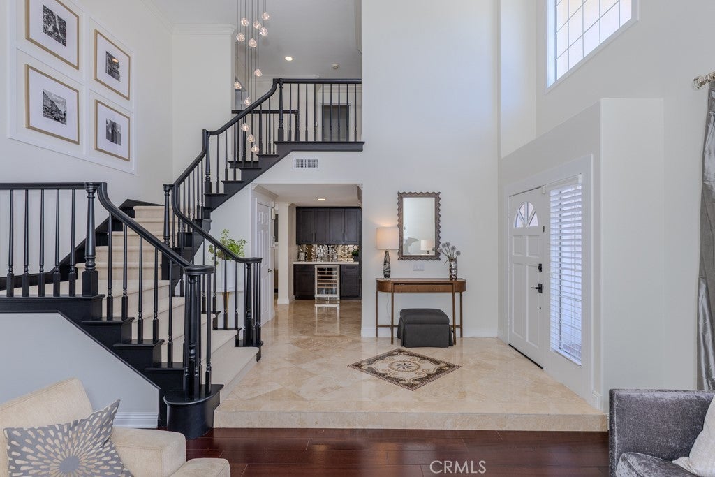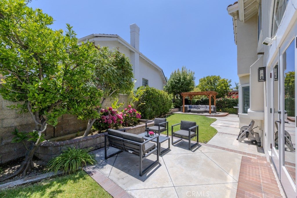 Welcome to this bright, beautiful, move-in-ready home on a sunny corner lot in Belmont Estates. Upon entering the home, you’re welcomed by high ceilings, a stunning chandelier, and an open floor plan with abundant windows that fill the space with natural light. The private living and dining rooms feature elegant hardwood floors and a cozy fireplace, and travertine flooring flows through the main areas for timeless style. An expansive family room with its own fireplace opens seamlessly to the modern kitchen with quartz countertops, double ovens, a center island, a dining nook, and a premium Bosch cooktop. A stylish bar with a wine fridge and designer backsplash elevates every gathering and is ideal for entertaining. A desirable main floor bedroom provides flexible living for guests or multi-gen needs. Upstairs, the spacious primary suite offers a cozy sitting area and a luxurious en-suite bath with a glass shower, an elegant freestanding soaking tub, dual vanities, and a large walk-in closet. In addition, the second floor also features two large bedrooms and a versatile, oversized bonus room with modern built-ins and a walk-in closet — perfect for an office, media room, or private gym. Comforts include new contemporary bathrooms, new dual HVAC systems with HEPA filters, a separate laundry room, a new ultra-quiet garage door with a keypad, a new water heater, and a 3-car garage with built-in cabinets and ceiling racks for ample storage. Step outside to a lush backyard oasis with a new gazebo, multiple outdoor entertaining areas, and lemon, orange, guava, and pomegranate trees that is perfect for relaxing or hosting gatherings. This corner lot home combines thoughtful upgrades, elegant design, and the peaceful charm of Belmont Estates — ready for you to move in and enjoy!