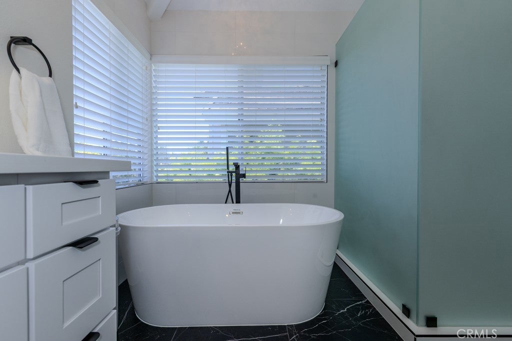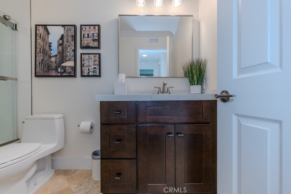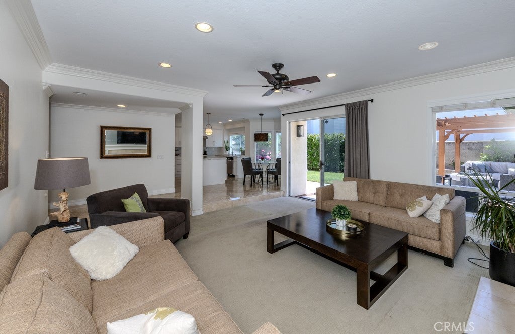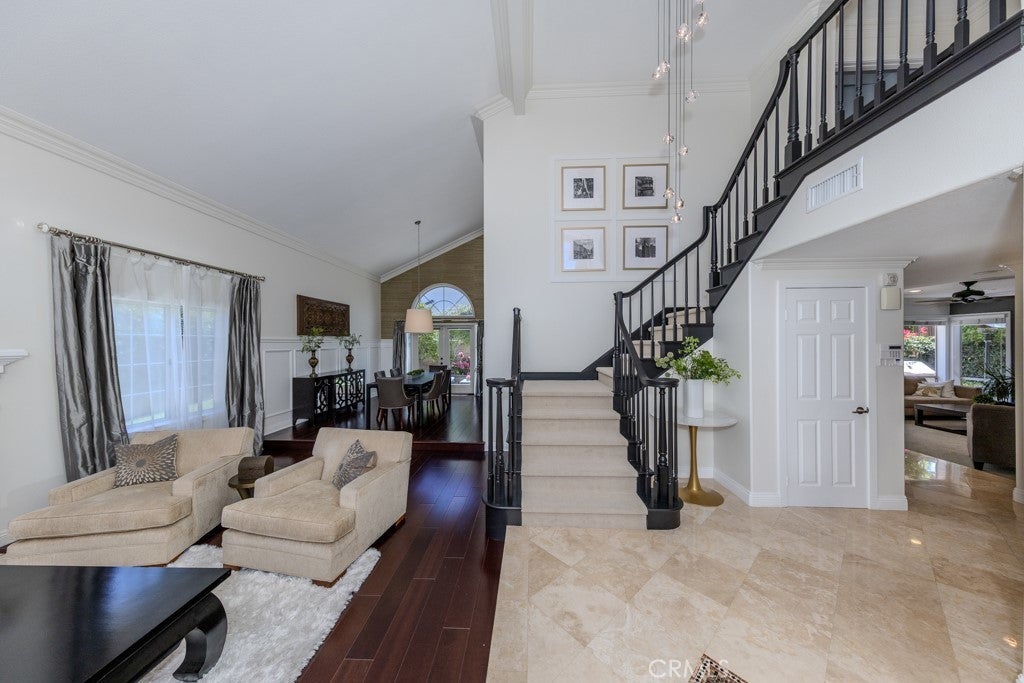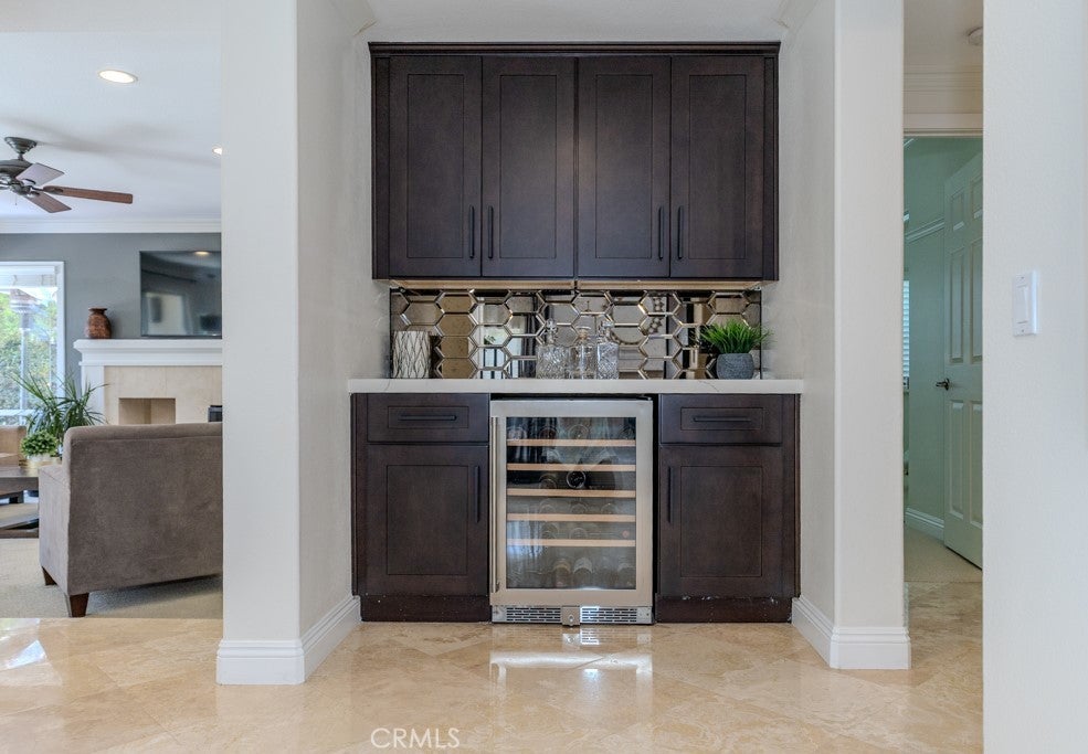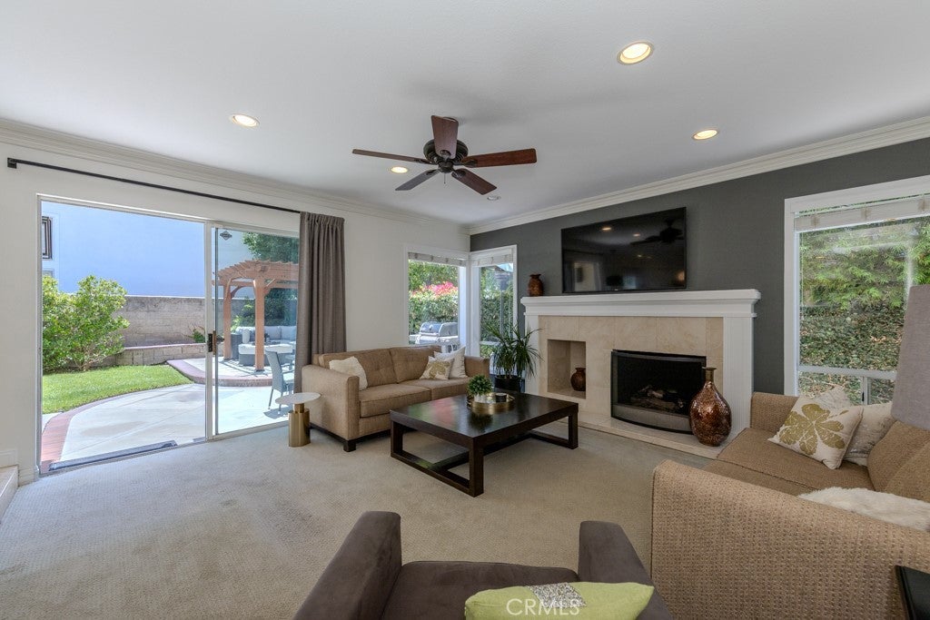 Welcome to this bright, beautiful, move-in-ready home on a sunny corner lot in Belmont Estates. Upon entering the home, you’re welcomed by high ceilings, a stunning chandelier, and an open floor plan with abundant windows that fill the space with natural light. The private living and dining rooms feature elegant hardwood floors and a cozy fireplace, and travertine flooring flows through the main areas for timeless style. An expansive family room with its own fireplace opens seamlessly to the modern kitchen with quartz countertops, double ovens, a center island, a dining nook, and a premium Bosch cooktop. A stylish bar with a wine fridge and designer backsplash elevates every gathering and is ideal for entertaining. A desirable main floor bedroom provides flexible living for guests or multi-gen needs. Upstairs, the spacious primary suite offers a cozy sitting area and a luxurious en-suite bath with a glass shower, an elegant freestanding soaking tub, dual vanities, and a large walk-in closet. In addition, the second floor also features two large bedrooms and a versatile, oversized bonus room with modern built-ins and a walk-in closet — perfect for an office, media room, or private gym. Comforts include new contemporary bathrooms, new dual HVAC systems with HEPA filters, a separate laundry room, a new ultra-quiet garage door with a keypad, a new water heater, and a 3-car garage with built-in cabinets and ceiling racks for ample storage. Step outside to a lush backyard oasis with a new gazebo, multiple outdoor entertaining areas, and lemon, orange, guava, and pomegranate trees that is perfect for relaxing or hosting gatherings. This corner lot home combines thoughtful upgrades, elegant design, and the peaceful charm of Belmont Estates — ready for you to move in and enjoy!