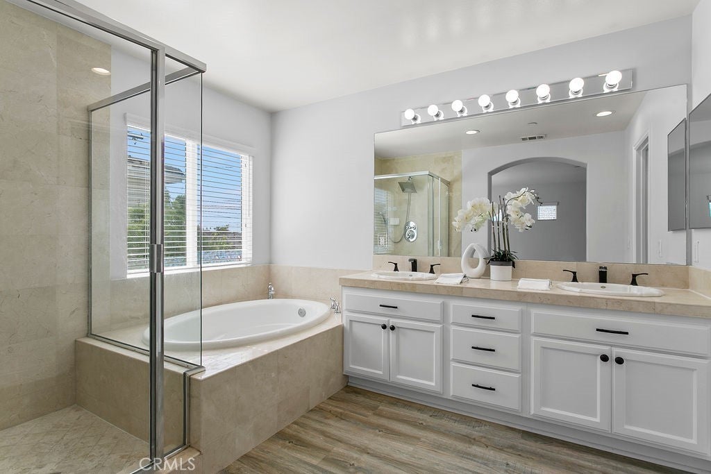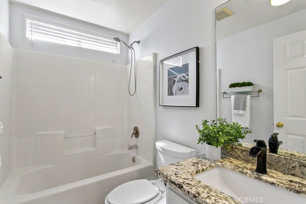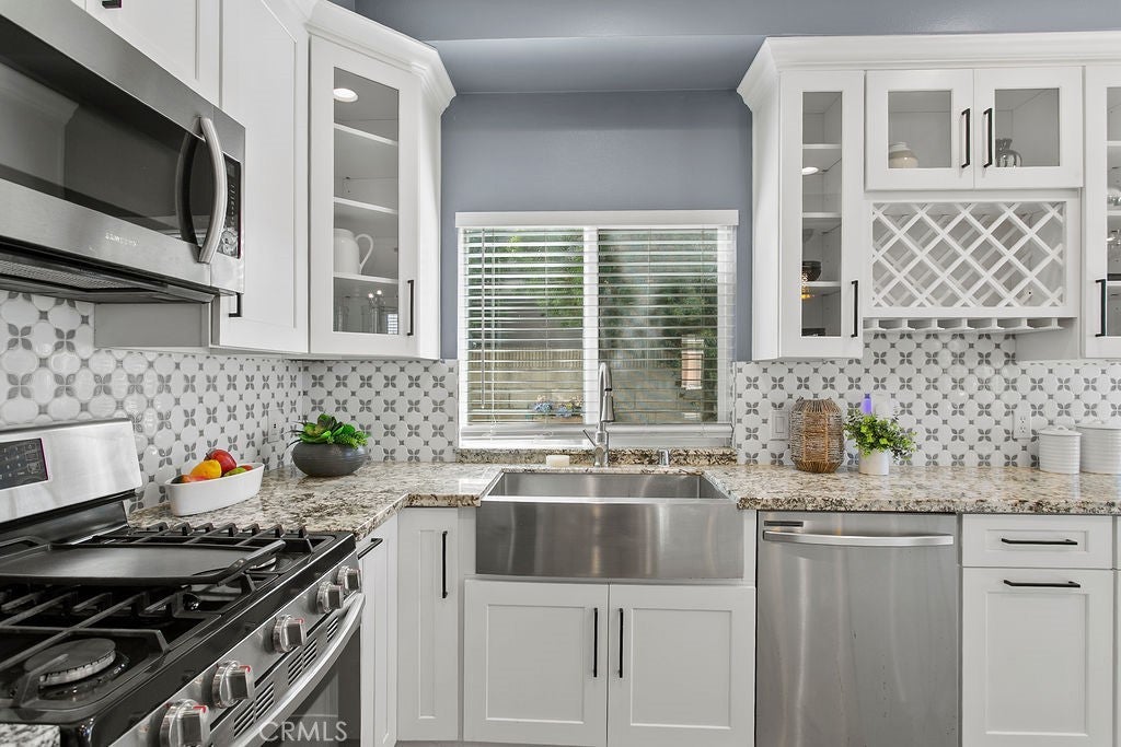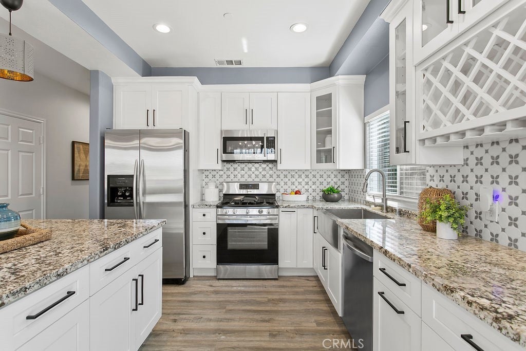 Welcome to this elegantly updated detached home in the desirable "The Coves" community, in the middle of a FRIENDLY neighborhood. Built in 2005, this 4-bedroom, 3-bathroom home features a versatile floor plan with a convenient DOWNSTAIRS bedroom and full bathroom, 2 car garage with an ADDITIONAL ASSIGNED PARKING perfect for guests or multi-generational living. Enjoy an open layout filled with natural light, high ceilings, NEW flooring upstairs, and NEWER interior paint. The remodeled kitchen has a quartz island, sleek countertops, and stainless steel appliances, seamlessly connecting to spacious living and dining areas. Additional highlights include dual-pane windows and a two-car garage with epoxy flooring with an additional assigned parking space. Located at the front of a quiet cul-de-sac in a community of just homes, you’ll love the privacy and neighborhood feel. Close to several parks and assigned to award-winning Luther Elementary, Walker Junior High, and Kennedy High School, this turnkey home is truly move-in ready!