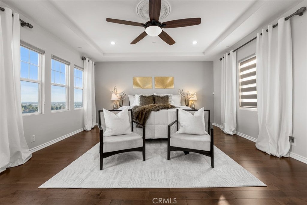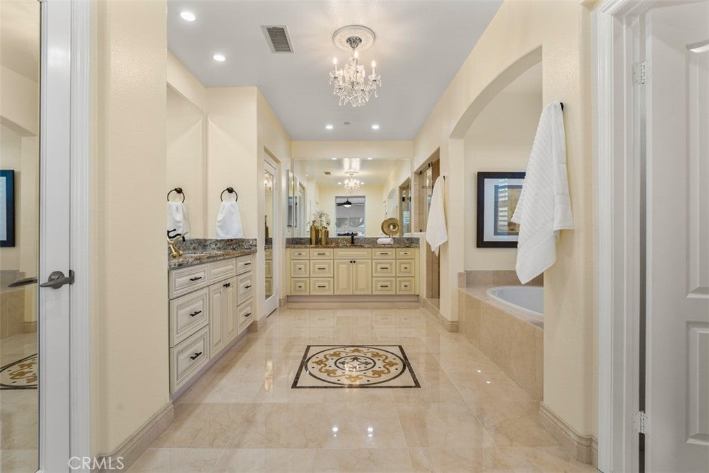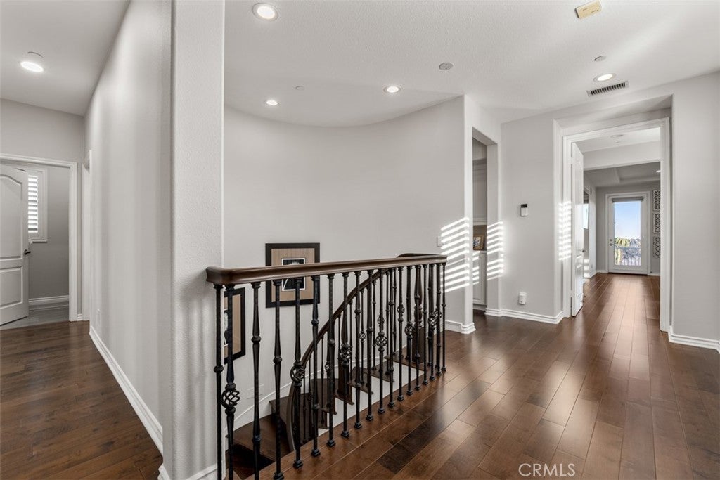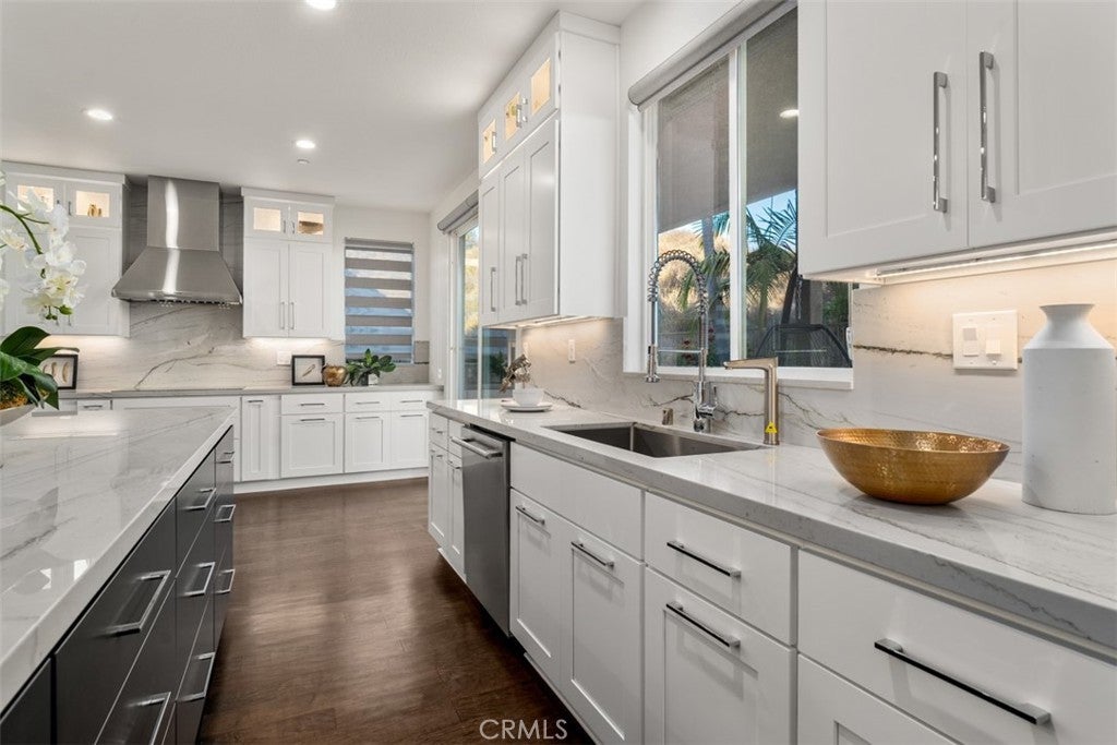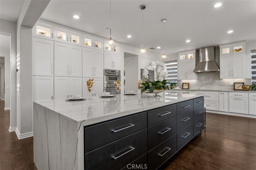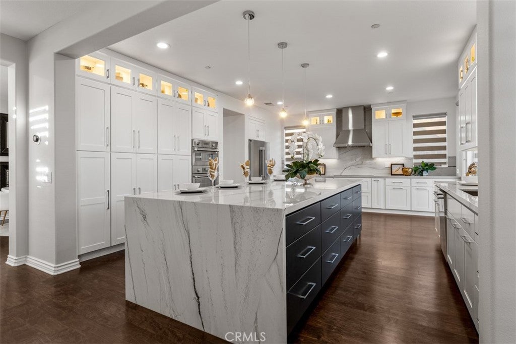 Discover the beauty that lies beyond the door and witness classic elegance embracing modern convenience. This exquisitely upgraded home showcases meticulous attention to detail, beginning with rich engineered & real hardwood flooring that transitions gracefully throughout the living spaces, setting a warm and refined tone. The interior walls have been textured & refreshed, adding depth & character while plantation shutters offer timeless elegance & enhanced privacy. Brilliant Phillips HUE LED lighting illuminates the home, all programmable, coupled with Nest thermostats, smoke & carbon monoxide detectors, Ring cameras & doorbell, topped with Simplisafe security system on all doors and windows. The intimate dining room looks out to a serene view of water cascading down a rugged stone fountain into a sculpted koi pond. At the heart of the epicurean kitchen is a massive solid quartzite countertop with waterfall edge & a full wall-to-ceiling backsplash. To complement the space, the kitchen is outfitted with , Professional grade Thermador appliances including the microwave/oven/toaster combo, warming drawer, refrigerator, dishwasher, sleek induction cooktop & exhaust system. All cabinets & pull out drawers are soft close. Curated lighting casts a refined glow across the kitchen and showcase glass cabinets blending elegance & everyday utility. The main floor ensuite bedroom/bathroom renovation holds its own, showcasing a marble vanity, porcelain tiles on floors & shower wall, LED mirror & sliding glass door. All bathrooms have been masterfully remodeled. The spacious primary bedroom, a calming hideaway has unobstructed views and together with the primary bathroom offers an indulgent escape to rest & renew. Elegance defined with marble counters, beveled mirrors, full tiled walls, tempered glass shower doors & polished finishes throughout. Sleek Hansgrohe plumbing fixtures throughout the home further reflect the commitment to luxury & performance .Dual-zone climate control & upgraded AC condensers & blowers ensure year-round comfort tailored to every corner of the home. Outside,No detail was spared. The thoughtful upgrades continue with an advanced outdoor drainage system, a low maintenance grass area, raised concrete patio, a tranquil rock water fountain & expansive city view that offers a stunning backdrop for everyday living. Over $250,000 worth of upgrades. Every detail in this home speaks to quality, refinement, modern convenience & an elevated lifestyle.