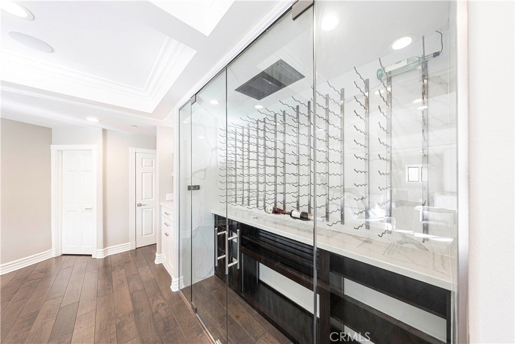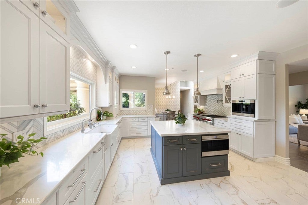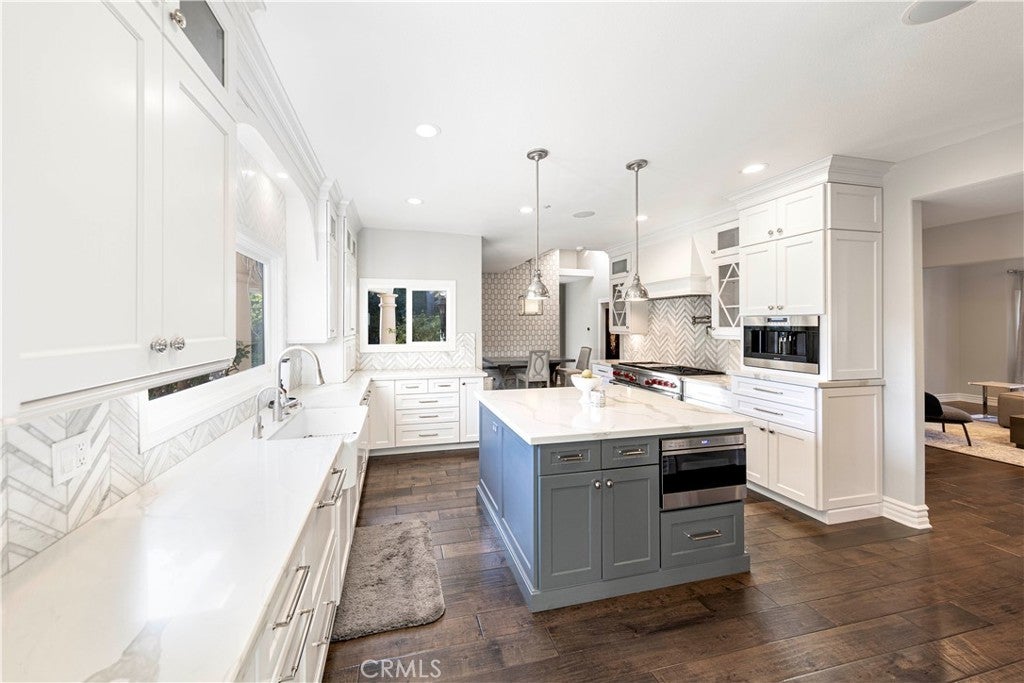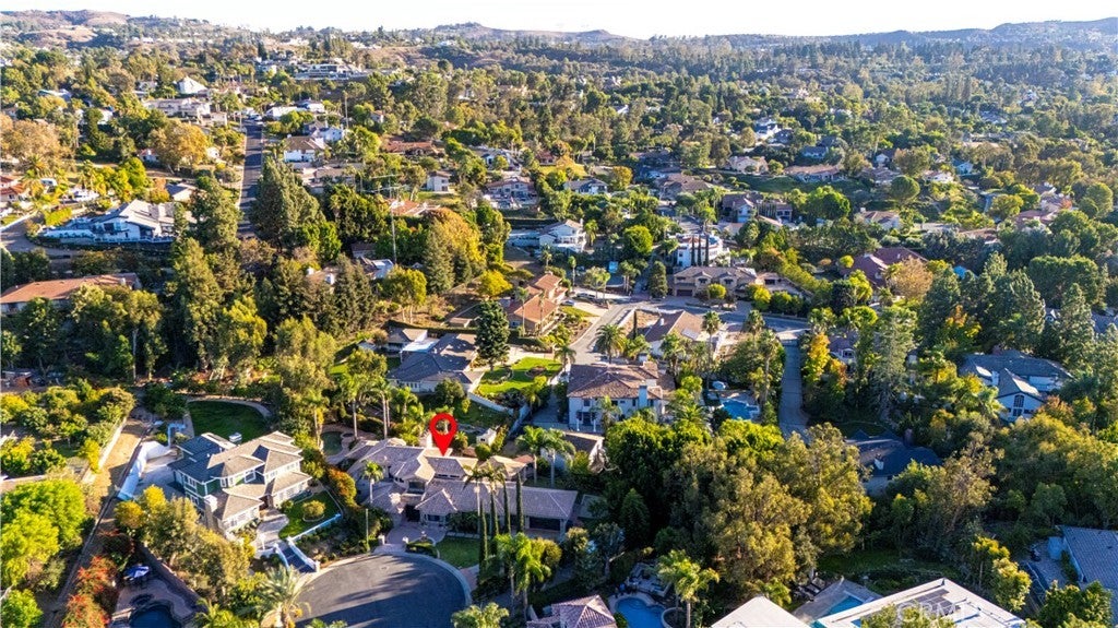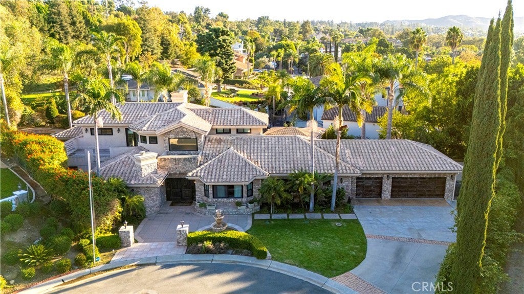 Exquisite custom estate in the prestigious gated community of Almeria, Anaheim Hills. Welcome to your dream home in one of Anaheim Hills’ most exclusive enclaves. Perfectly situated at the end of a private cul-de-sac, this custom-designed estate offers the pinnacle of refined living with approximately 5,574 sq ft of elegant interior space on a sprawling one-acre flat lot. Boasting five bedrooms + Office and 4.5 baths, this home has been meticulously remodeled with the highest attention to detail, quality, and craftsmanship. Step through the grand double-door entry into a light-filled foyer with a skylight, leading to a formal living room and dining room, both tastefully appointed for elevated entertaining. The living room showcases soaring cathedral ceilings with custom wood beams, while the dining room is adorned with two chandeliers, cozy fireplace and elegant architectural details. Upstairs, the primary suite is a private retreat with a fireplace, French doors to a balcony, and an adjoining room ideal as a nursery, office, or sitting area. The spa-inspired primary bath features a walk-in shower, soaking tub, dual vanities, and luxury finishes. A whole-house fan enhances energy efficiency and comfort. Main floor, three guest bedrooms include one en suite and two with a Jack-and-Jill bath. The family room features coffered ceilings, built-ins, a fireplace, and a temperature-controlled wine cellar. The chef’s kitchen includes Sub-Zero appliances, double ovens, six-burner range, espresso machine, two dishwashers, a farmhouse sink, oversized island, and abundant cabinetry. A sunny breakfast nook opens to a game room or executive office with a stone accent wall, wet bar, and a second ice machine. A large laundry room and 3/4 guest bath offer easy access to the resort-style backyard. Outdoors, enjoy mature fruit trees, a custom pool and spa with safety gate, a built-in BBQ island with ample seating under a covered patio and multiple entertaining spaces. Additional features: 3-car garage with storage, tankless water heater, filtration system, two beautiful fountains, integrated audio system & speakers throughout, dual newer HVAC systems, energy-efficient windows, $18K permitted electrical upgrade, and newer carpet in the downstairs bedrooms. Ideally located near the 91 freeway, award-winning schools, shopping, dining, and scenic trails—this home offers the perfect blend of luxury, privacy, and convenience. #multigenerationalliving #twoprimarybedrooms