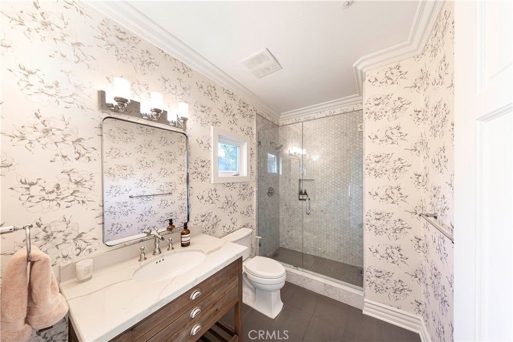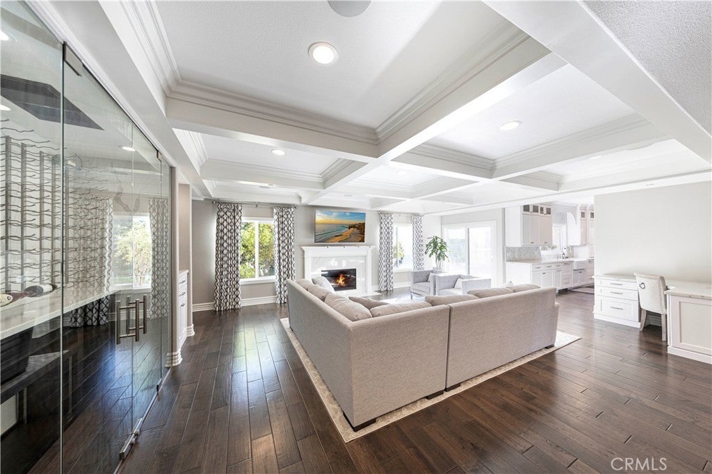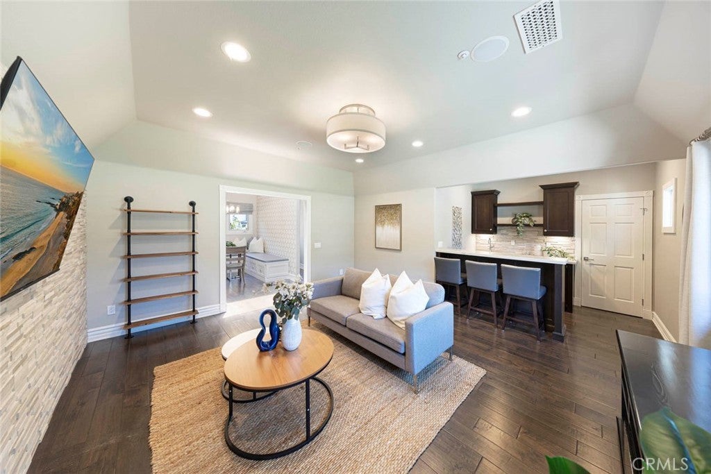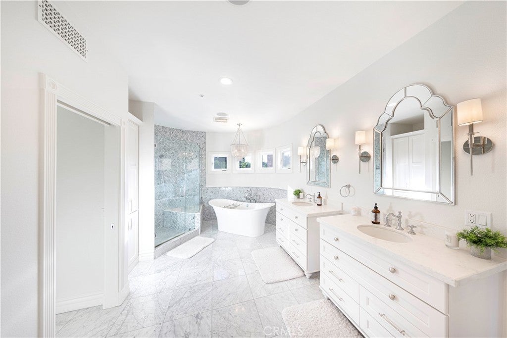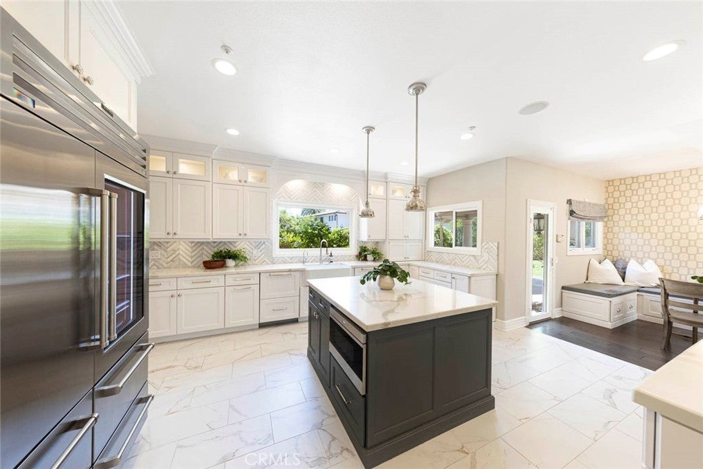 Exquisite custom estate in the prestigious gated community of Almeria, Anaheim Hills. Welcome to your dream home in one of Anaheim Hills’ most exclusive enclaves. Perfectly situated at the end of a private cul-de-sac, this custom-designed estate offers the pinnacle of refined living with approximately 5,574 sq ft of elegant interior space on a sprawling one-acre flat lot. Boasting five bedrooms + Office and 4.5 baths, this home has been meticulously remodeled with the highest attention to detail, quality, and craftsmanship. Step through the grand double-door entry into a light-filled foyer with a skylight, leading to a formal living room and dining room, both tastefully appointed for elevated entertaining. The living room showcases soaring cathedral ceilings with custom wood beams, while the dining room is adorned with two chandeliers, cozy fireplace and elegant architectural details. Upstairs, the primary suite is a private retreat with a fireplace, French doors to a balcony, and an adjoining room ideal as a nursery, office, or sitting area. The spa-inspired primary bath features a walk-in shower, soaking tub, dual vanities, and luxury finishes. A whole-house fan enhances energy efficiency and comfort. Main floor, three guest bedrooms include one en suite and two with a Jack-and-Jill bath. The family room features coffered ceilings, built-ins, a fireplace, and a temperature-controlled wine cellar. The chef’s kitchen includes Sub-Zero appliances, double ovens, six-burner range, espresso machine, two dishwashers, a farmhouse sink, oversized island, and abundant cabinetry. A sunny breakfast nook opens to a game room or executive office with a stone accent wall, wet bar, and a second ice machine. A large laundry room and 3/4 guest bath offer easy access to the resort-style backyard. Outdoors, enjoy mature fruit trees, a custom pool and spa with safety gate, a built-in BBQ island with ample seating under a covered patio and multiple entertaining spaces. Additional features: 3-car garage with storage, tankless water heater, filtration system, two beautiful fountains, integrated audio system & speakers throughout, dual newer HVAC systems, energy-efficient windows, $18K permitted electrical upgrade, and newer carpet in the downstairs bedrooms. Ideally located near the 91 freeway, award-winning schools, shopping, dining, and scenic trails—this home offers the perfect blend of luxury, privacy, and convenience. #multigenerationalliving #twoprimarybedrooms