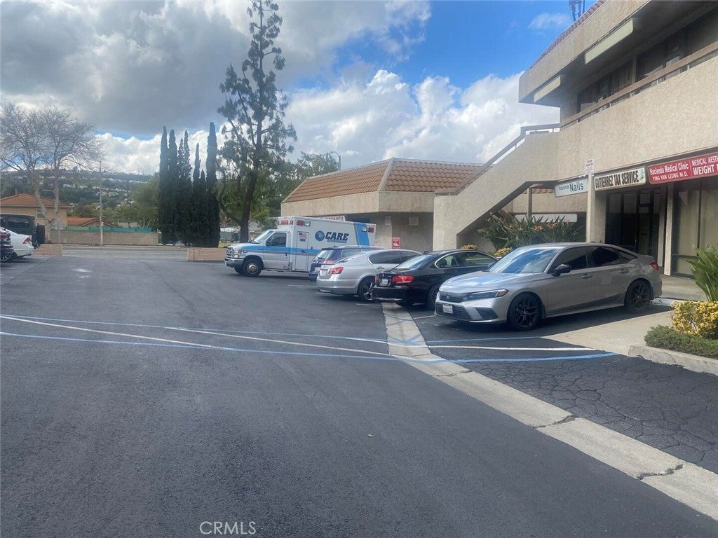 One Floor Level ( Downstairs) Office and reception area with private restroom facilities in own office space Central Air and Heat.. Very busy location in Hacienda Heights. Entry area has one small office adjacent to front of unit. Spacious floor plan. Great parking areas included. Very close to 60 Freeway and businesses.