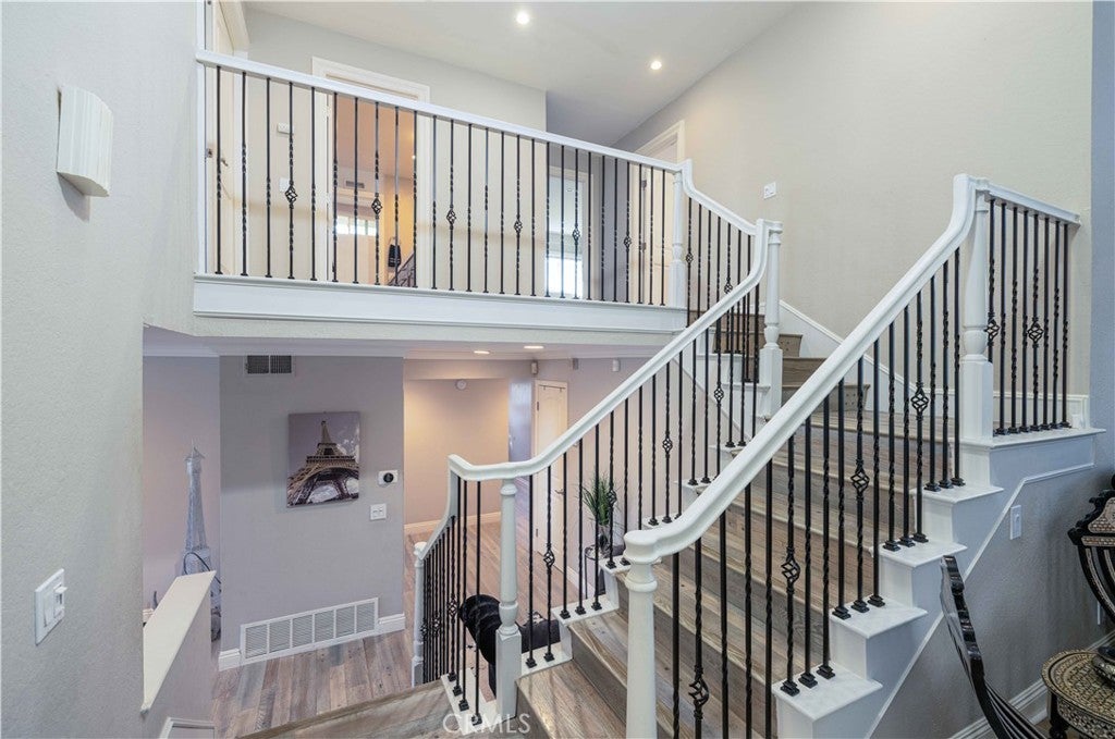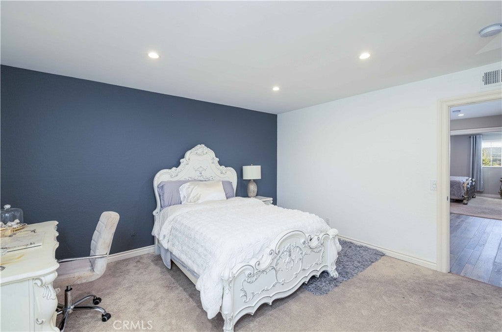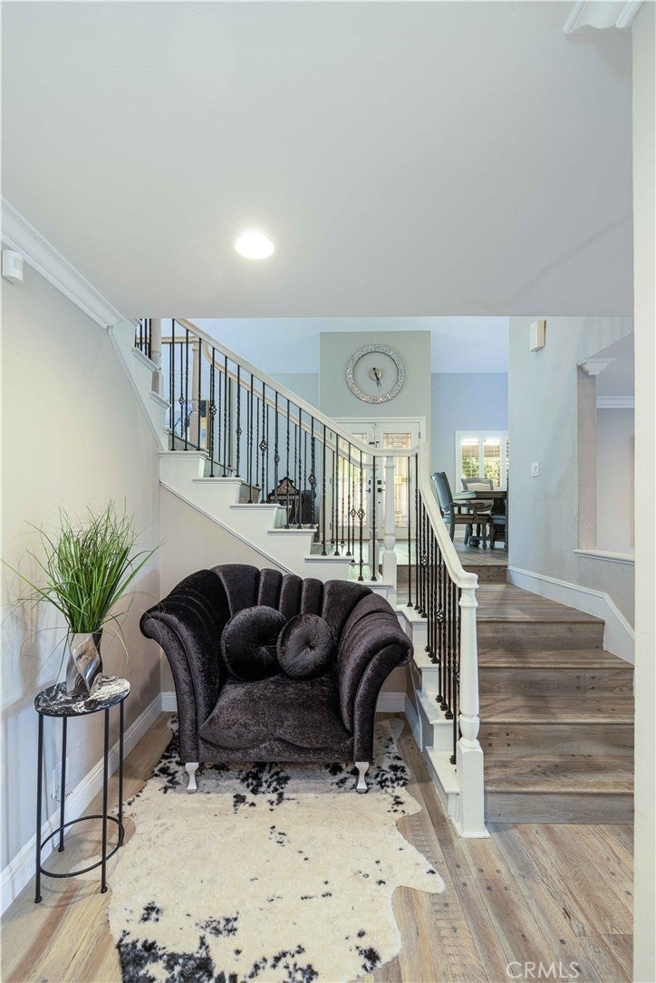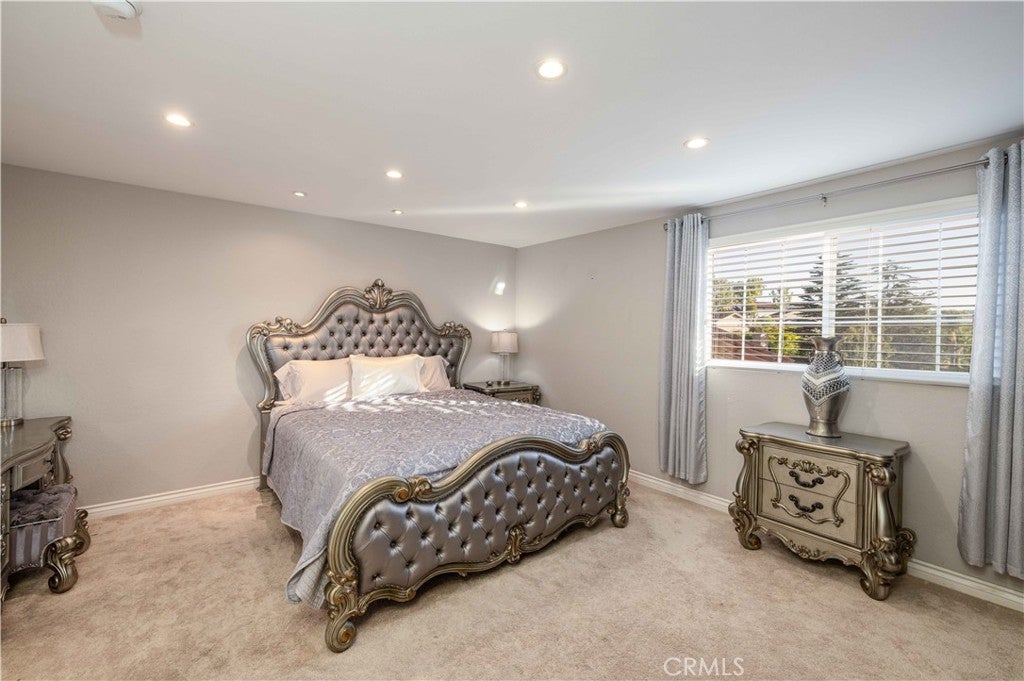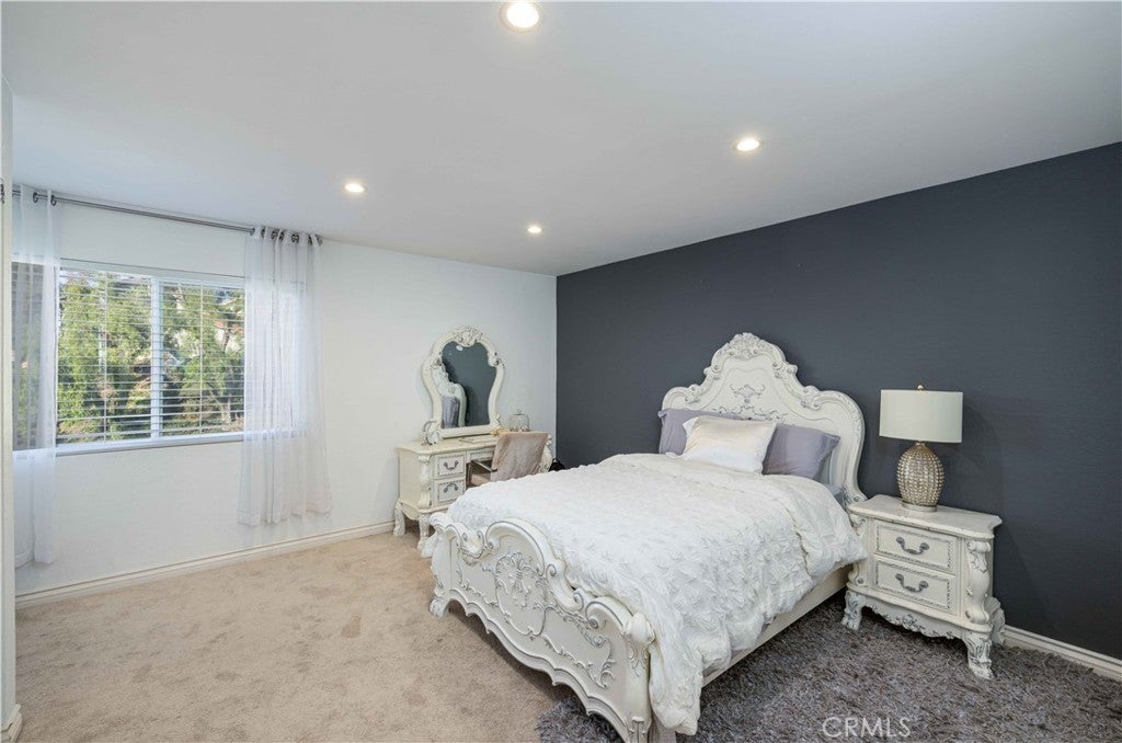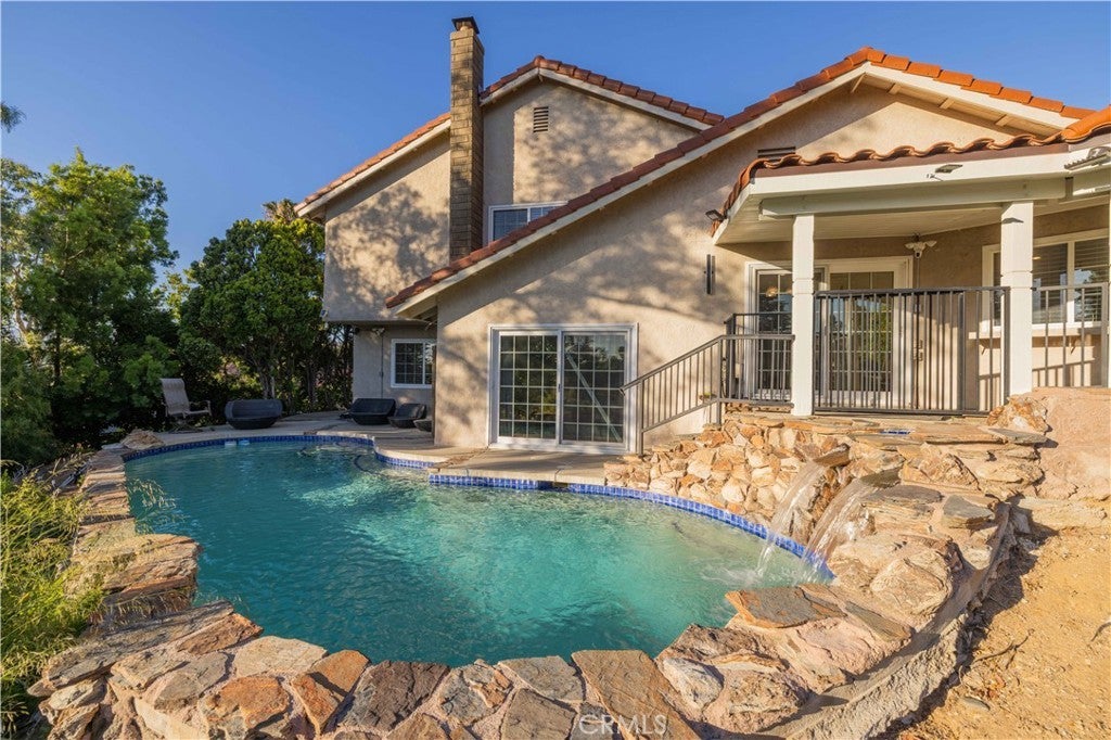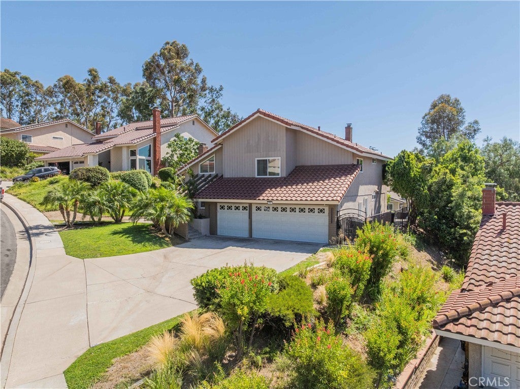 Stunning Two-Story Home Nestled in a Peaceful Cul-de-Sac, Featuring Scenic Views of Hills, Trees, and a Lush Greenbelt. The Dramatic Entry Boasts Leaded Glass Double Doors, Soaring Cathedral Ceilings, and a Striking Open Banister. The Spacious Formal Living Room with Fireplace Flows into the Elegant Dining Area. This Home Offers 4 Generously Sized Bedrooms with Custom Closet Organizers, Including One Bedroom and One Fully Remodeled Bathroom Conveniently Located on the Main Floor. Enjoy Approximately 2,689 Sq Ft of Comfortable Living Space. The Fully Remodeled Kitchen Features Newer Soft-Close Cabinetry, Granite Countertops, Stainless Steel Appliances, and a Charming Breakfast Nook. The Expansive Family Room Offers a Cozy Fireplace and Sliding Glass Doors That Open to a Beautifully Landscaped Backyard. Additional Features Include an EV Charger, Interior Laundry Room, Upgraded Travertine, Wood, and Carpet Flooring in all bedrooms on 2nd floor, Crown Molding, Wood Blinds and Shutters, a Security System, and Water Softener & Purification Systems. The Attached 3-Car Garage Includes Overhead Storage. The resort-style backyard is perfect for entertaining, featuring a sparkling pool and spa, built-in BBQ island, and stunning views—all set on a generous ~12,000 sq ft lot. Conveniently located within walking distance to the highly rated El Rancho Charter School.