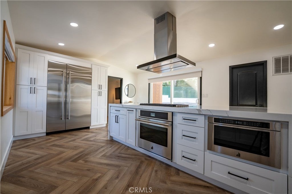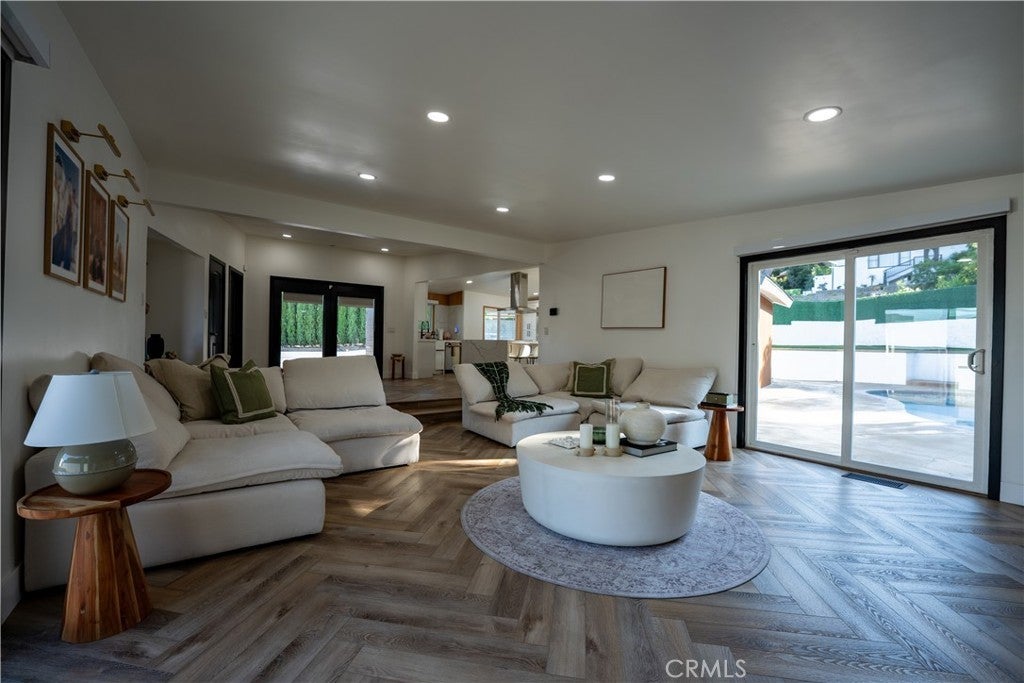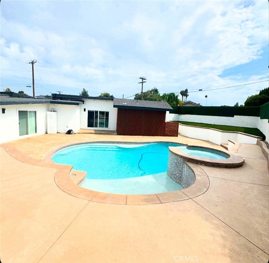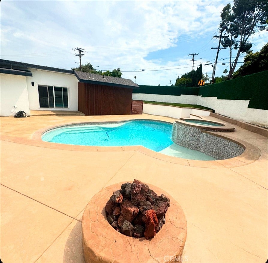 Welcome to 2047 Angelcrest Drive, a beautifully renovated home in the heart of Hacienda Heights offering a rare blend of custom design, open-concept living, and resort-style outdoor amenities. This 3-bedroom, 2-bathroom residence also includes a versatile den or office, perfect for remote work or a creative space. With nearly 2,000 square feet of living space on a generous 0.32-acre lot, this home stands out with its architectural character, thoughtful layout, and premium upgrades. Step inside to find all-new herringbone-patterned luxury vinyl flooring, smooth ceilings with recessed lighting, and custom wood accents throughout. Every window features sleek custom roller shades for privacy and style. The open floor plan flows seamlessly into the designer kitchen, which includes waterfall quartz countertops, a built-in JennAir refrigerator, microwave, and dishwasher, a farmhouse sink, and modern cabinetry—ideal for both entertaining and daily living. The home is equipped with a newer HVAC system for year-round comfort and solar panels on a lease, helping reduce energy costs. Outside, enjoy your own private retreat featuring a newly remodeled pool and spa, a custom elevated deck with a built-in fire pit, and low-maintenance artificial turf landscaping. A brand-new two-way driveway offers parking for up to seven cars, along with a one-car garage that includes built-in storage. Additional upgrades include a brand-new roof and updated exterior finishes. Located on a quiet street in a desirable neighborhood, this move-in ready home offers the perfect combination of luxury, comfort, efficiency, and unique architectural design.