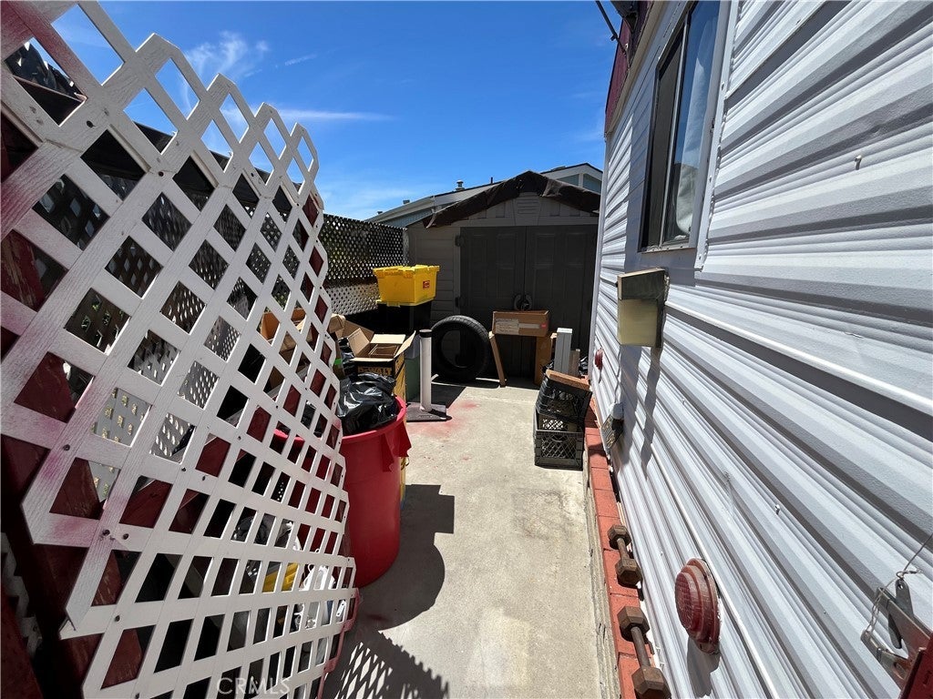 This well located and affordable mobile home is full of potential! It features a cozy 1 bedroom, 1 bathroom layout with a functional living room, ideal for a minimalist lifestyle or creative redesign. The kitchen offers ample storage, and the home includes a dedicated in unit laundry room. The property has been left mostly original by the previous owners, giving buyers the opportunity to update and personalize. Outside, enjoy a small storage shed, and a generous yard perfect for pets. Located in a pet friendly park with amenities including a pool, clubhouse, guest parking and, close to shopping, dining, and freeway access. This home could be a perfect fit, don’t miss your chance to make it your own!