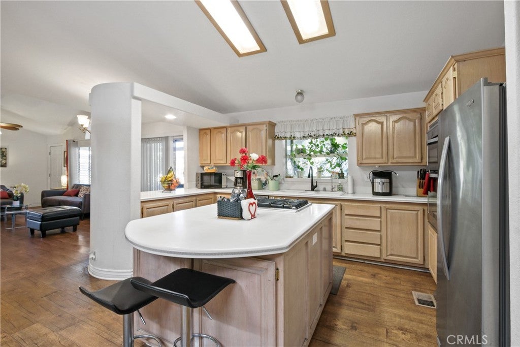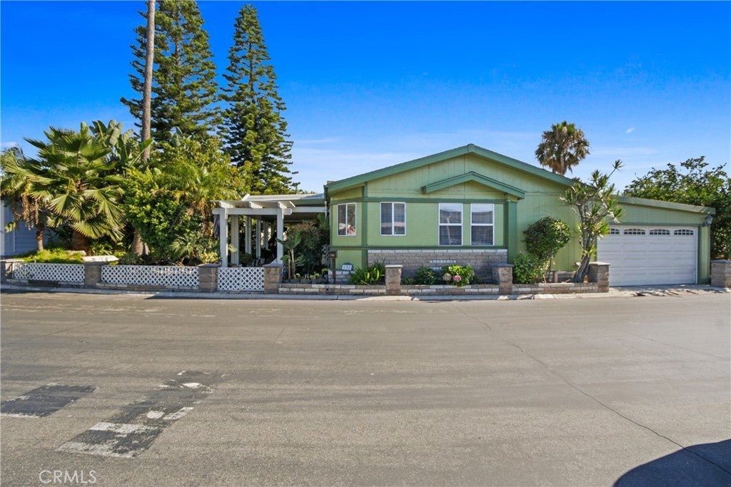 NEW LOWER PRICE! PRICED TO SELL JUST FOR THE RIGHT BUYER! THIS TRANQUIL HOME IS A MUST SEE! A ground-level residence, there are no porch stairs. Its oversized lot is spacious with a quaintly fenced-in yard featuring a built-in fountain, gas BBQ, grass, & beautiful trees that offer shade & privacy. Built in 1995, this 1782 sq ft home offers a well-designed layout with 3 bedrooms & 2.5 bathrooms, a family room, a formal living room with a stunning gas-burning fireplace of stucco/tile with a mantle-to-ceiling mirror, bringing warmth & depth to the room. The formal dining area is adjacent to the formal living area with a pass-through space between the dining room and kitchen. The open floor plan creates a seamless flow throughout the home, enhanced by abundant natural light pouring in through multiple skylights & generously sized windows. The kitchen is spacious enough for multiple helpers during special occasions, & island is large enough for seating at the end. Adjacent to the kitchen, the family room provides ample space for an additional dining area as well as plenty of space to relax as a family. All 3 bedrooms are generously sized & have walk-in closets. The 1st & 2nd bedrooms are connected by a Jack & Jill bathroom, & include a stall shower with a sitting bench. The 2nd bedroom features double doors & a custom-built-in workstation (which can be removed if desired). The primary suite is generously sized, with a separate walk-in closet just off the primary bath, which includes a Roman-style tub & a separate stall shower. Additional features of this home include two skylights with retractable blinds in the family room, a laundry room with a half bath, 2 water heaters,wood-look laminate flooring, water purification system, 6 security cameras, tube skylight, an automatic sprinkler & drip system, low-voltage accent lighting, A/C PLUS an extra window A/C, & several free-standing plants. This home truly is a sanctuary—a must-see for anyone seeking comfort, style, & functionality. This home is located at the prestigious Anaheim Shores Estates. This park is unlike other manufactured home parks as it offers so many benefits, such as extra-wide streets, it's pet-friendly, has well-maintained trees & shrubs, a community pool, spa, bbq area, clubhouse, & a grass area for pets. The clubhouse offers a venue to enjoy many different occasions. They also have a billiards room, card game room, a library, a TV room, & a kitchen.