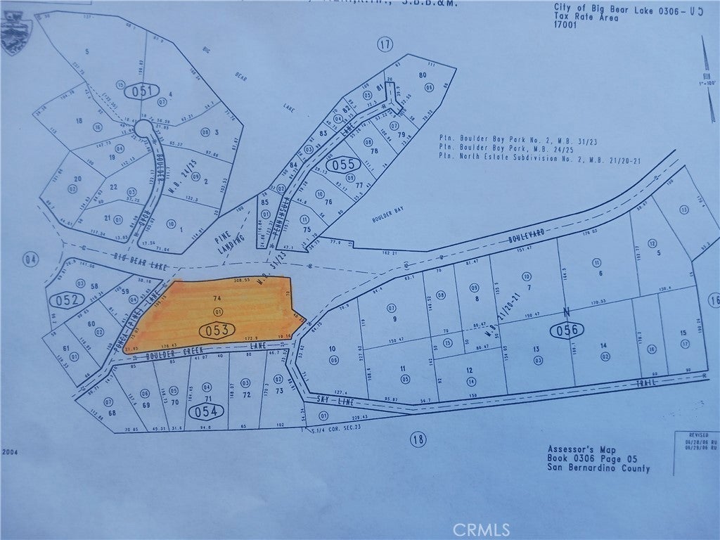 ALMOST LAKE FRONT LAND IN SOUGHT-AFTER BOULDER BAY UNOBSTRUCTED WATER LAKE VIEWS NEARLY 1 ACRE PARCEL Nestled in the serene mountains of Boulder Bay, Big Bear Lake with national forest right behind you, this expansive piece of land, just under one acre, offers unobstructed lake views. You can cross the road and be on the lake, or you can go hiking in the national forest. This sizable piece of land offers the perfect opportunity to build your custom dream getaway or permanent residence, or vacation rental. Located across the street from Boulder Bay Lake, and not far from the Big Bear Ski Resorts, this large parcel of land is surrounded by towering pines and fresh air. With easy access to outdoor recreations, including hiking, mountain biking, skiing, and fishing, you’ll enjoy year-round activities right at your doorstep. This land is zoned for residential use and has ample space for a custom home or cabin. With utilities available nearby, you’ll find it a convenient location for building your ideal retreat in this beautiful mountain town. Whether you're looking for a weekend escape or a full-time residence, this property offers incredible upside potential. Don’t miss out on this rare opportunity to own land in one of Southern California's most sought-after mountain destinations. We are still accepting backup offers. No address has been assigned to this property
