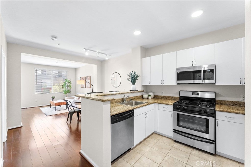 Welcome to 1801 E Katella Ave #2045, a modern 1-bedroom condo offering low-maintenance living in one of Anaheim’s most dynamic neighborhoods. Just a short walk from Angel Stadium and the Honda Center, this beautifully designed home puts you right in the middle of the energy, growth, and convenience the Platinum Triangle is known for. Inside, you'll find a spacious open-concept layout with a well-appointed kitchen featuring granite countertops, stainless steel appliances with a brand new microwave and refrigerator, and a functional breakfast bar. The bright living area flows seamlessly onto a private balcony—perfect for relaxing or entertaining. The large bedroom includes a walk-in closet and direct access to a stylish bathroom. You’ll also enjoy the practicality of in-unit laundry and central A/C. This residence is part of a thoughtfully planned community with incredible amenities: a resort-style pool surrounded by palms, a fully equipped fitness center, dry sauna, cozy fire pit, and secure building access. And here’s the kicker—your HOA dues include water and high-speed Wi-Fi, making it easier to manage monthly costs and enjoy peace of mind. Whether you're buying your first place or simply ready to enjoy a more connected lifestyle, this home delivers the ideal blend of comfort, convenience, and location. With new development happening at OC Vibe, this is more than just a great place to live—it’s a smart long-term move. Step into a fresh chapter in a home that feels both effortless and exciting.