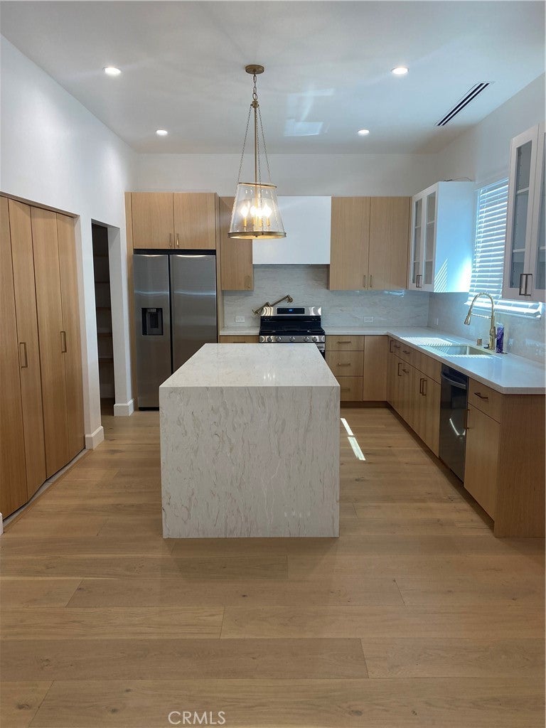 Vouchers welcome! Available now! This beautifully completely remodeled 3-bedroom, 2-bath home offers luxury and style. Featuring 10-foot ceilings, white oak hardwood floors, and elegant gold accents, this space is designed for modern living. The open-concept kitchen boasts custom cabinetry, quartz countertops, and high-end Samsung appliances—ideal for cooking and entertaining. The home also features sleek finishes, 96-inch doors, and modern HVAC vents throughout. Outside, enjoy a private, low-maintenance yard with artificial turf, California gold gravel, and block walls. Please note: The attached ADU units are not included in this rental. Ready for immediate move-in, this home is perfect for those seeking comfort and convenience. Don’t miss your chance to make it yours!