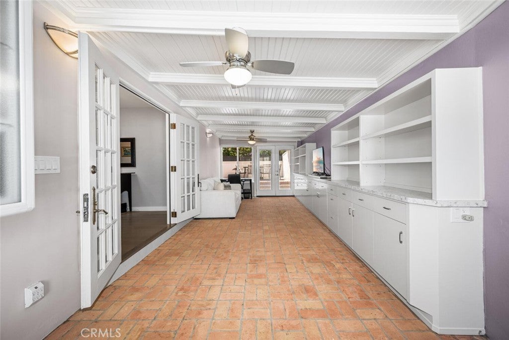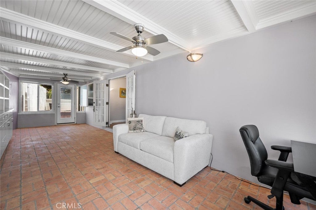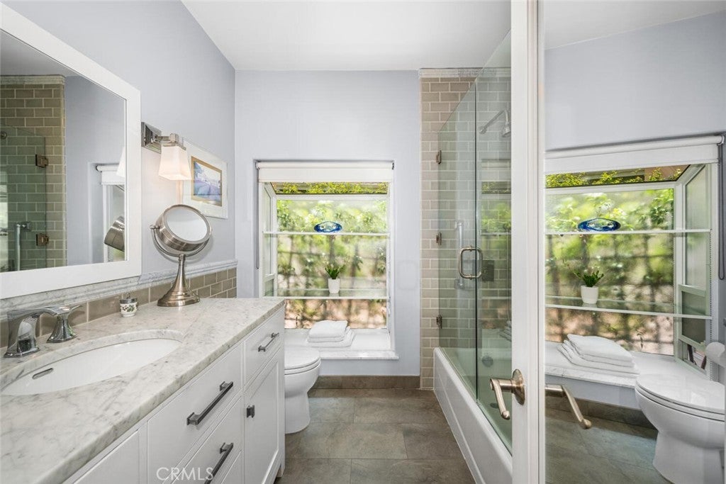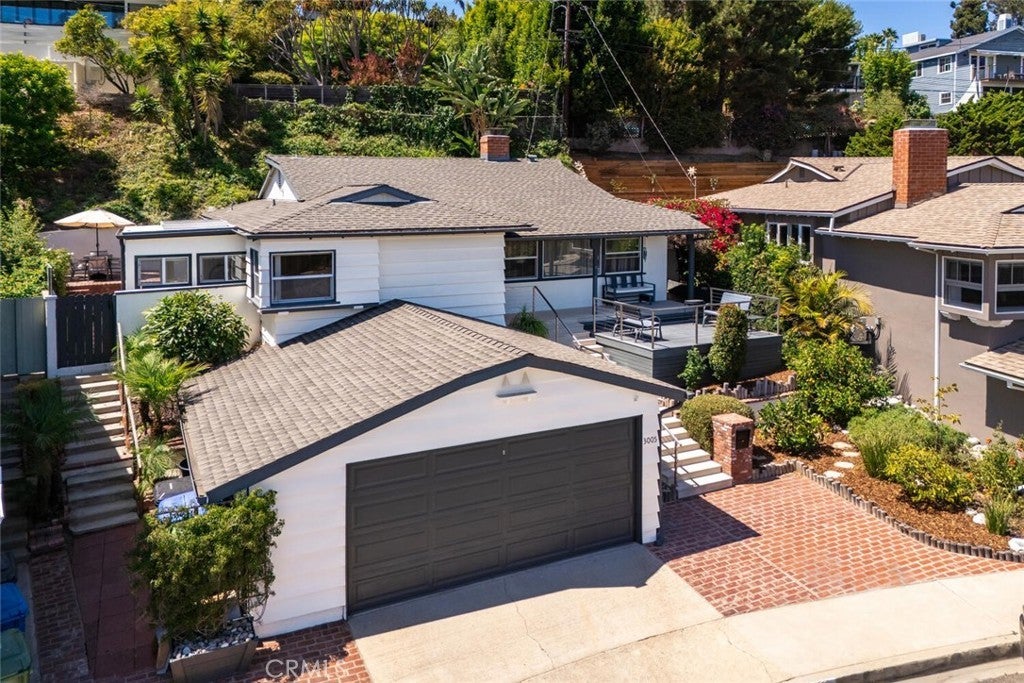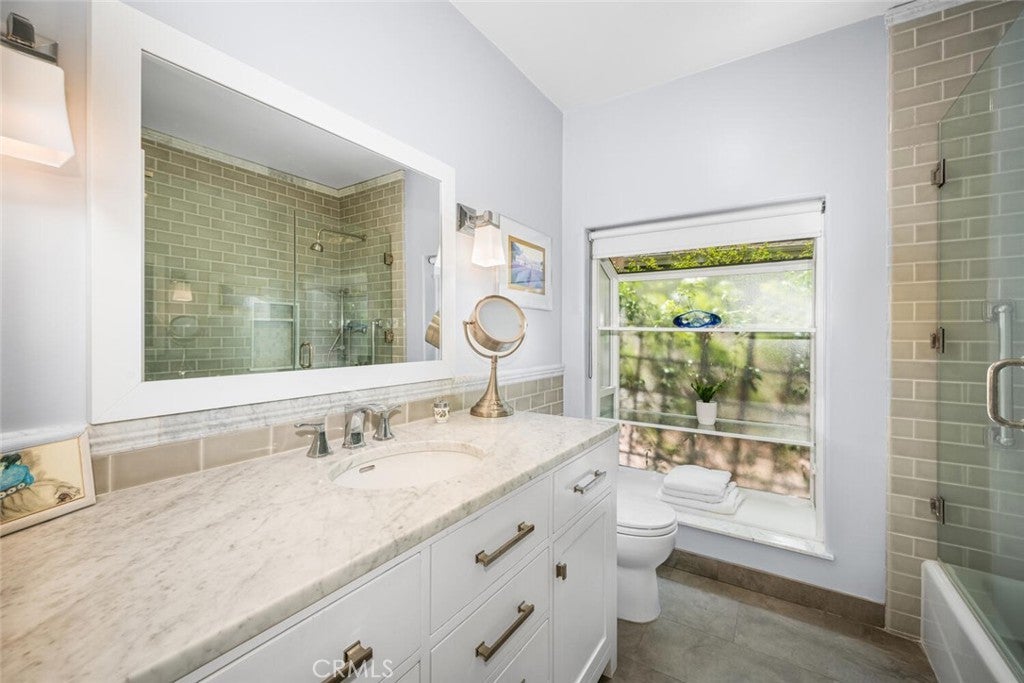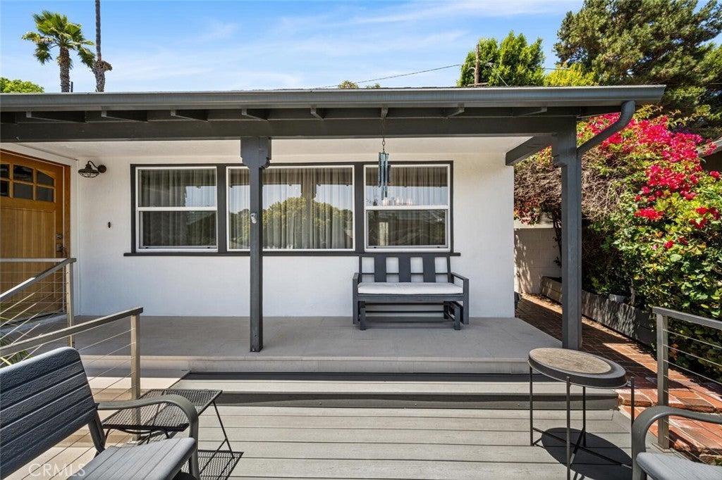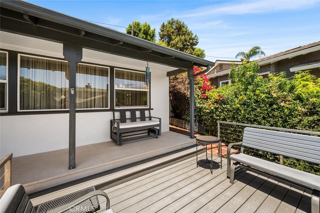 Welcome to this Sunset Park gem, ideally located on a quiet horseshoe street overlooking Marine Park. Light and bright throughout, this timeless 2-bedroom, 2-bath home features hardwood floors, elegant finishes, and thoughtful updates that blend classic character with everyday comfort. The inviting living room showcases a striking marble fireplace, built-in cabinetry, and abundant natural light. A flexible layout includes a formal dining room or den, plus a bonus room for added versatility. The updated kitchen is outfitted with white shaker cabinets, quartz countertops, and stainless steel appliances, offering a clean and timeless aesthetic. The primary bedroom includes a charming sunroom—perfect as a cozy reading nook, a peaceful office, or creative retreat. A dedicated laundry room off the kitchen adds convenience. Step outside to enjoy an expansive front deck, ideal for morning coffee or evening gatherings. In back, two separate private patios offer spaces to unwind, one of which features a sparkling spa. The terraced hillside offers space for a vibrant garden, allowing you to craft a serene refuge with inviting ambiance and natural beauty. Just adjacent to Marine Park is The Penmar—a popular local destination featuring a 9-hole golf course, concert-friendly green space, and a trendy restaurant that’s become a neighborhood favorite. All of this in Sunset Park, a peaceful, tree-lined neighborhood known for its coastal charm and sense of community—just over a mile from the beach and blocks from local cafes, shops, parks, and Santa Monica schools. With its walkability, warmth, and timeless style, this home sits in one of Santa Monica’s most sought-after pockets.