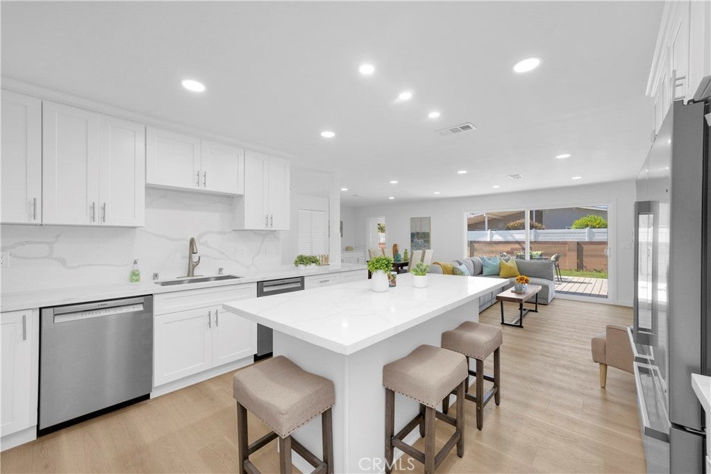 Over-the-Top “$350,000” Full Remodel Inside and Out in the Perfect Cul-de-Sac Location! An Entertainer’s Dream That’s Been Fully Reimagined in 2025 with Magazine-Worthy Finishes, Top-Tier Systems, and a Newly Air Conditioned Open-Concept Layout! Featuring 3 Bedrooms and 2 Luxurious Oversized Bathrooms! Inviting Double Door Entry with Light Wood Plank LVT Throughout! Light and Airy with Dozens of Flush Mount LEDs! Impressive Oversized Guest Bath with Modern Shower, Dual Vanities and Floor to Ceiling Linen Cabinet! ‘Professional Grade Chef’s Kitchen with 48” Range/Double Oven with Our Signature TV Range Hood, 2 Bosch Dishwashers, 64” Stainless Refrigerator/Freezer, and Built-In Wine/Beverage Cooler! Abundant Crisp White Shaker Cabinets with Quartz Counters and Matching Seamless Backsplash! Oversized Breakfast Island with More Shaker Cabinets and Matching Quartz! Adjoining Dining and Living Room with Cozy Quartz Fireplace and Direct View and Access to Your Backyard Entertainment Center! Raised Deck with Built-in BBQ Island, Spacious Lawn, and Total Privacy, Perfect for Summer Nights and Sunday brunches! Redesigned Primary Bedroom with Dual Mirrored Wardrobes and Slider to Your Deck, Luxurious and Modern Primary Bath with Multiple Shower Heads and Comfort Bench in a Huge Shower, and a Double Vanity! Fully Finished ManCave/SheShed or 2-Car Garage with New Rollup and Opener! Over $40,000 in Hardscape, Landscape and Deck, So There is Nothing Left to Do Except ENJOY!! Many of the Students Transfer to Los Al Schools Which are All Walking Distance! Wonderful Evening Ocean Breezes, Just Minutes to Local and Regional Parks, Multiple Golf Courses and Country Clubs, Marinas and Old Town Seal Beach! Click on VT1 & VT2 For Aerial and Virtual Tours