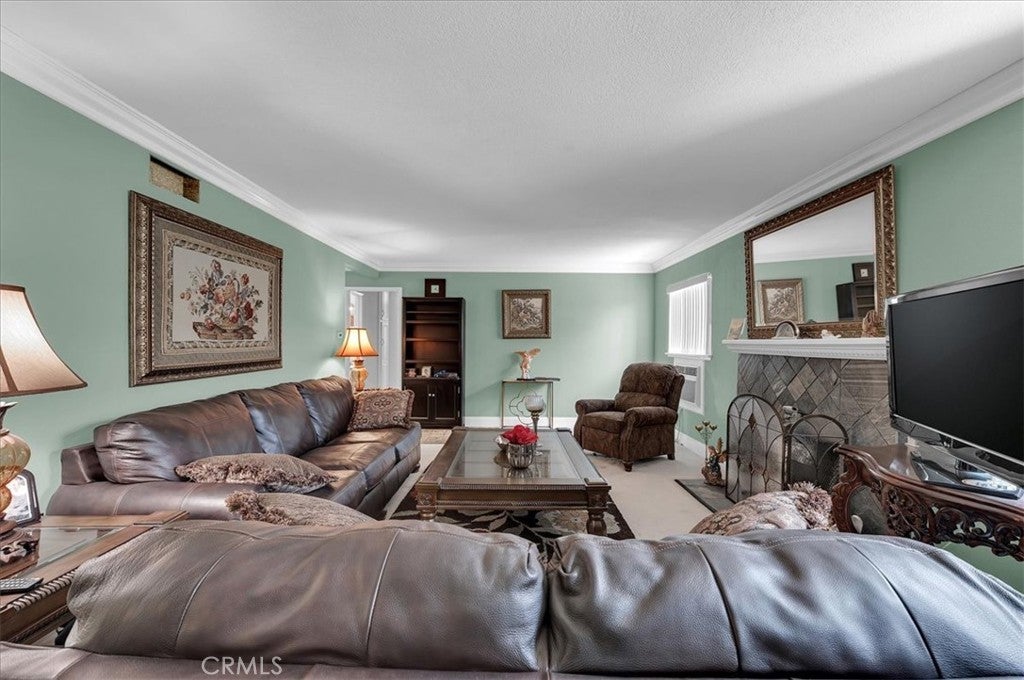 Sharp family home in great move in condition. Open and light floor plan. Large living room with cozy fireplace. Upgraded kitchen with newer appliances and cabinets. Newer tile flooring in kitchen and hallway areas . Good size bedrooms with ceiling fans. Upgraded bathrooms. Newer double pane windows. 2 car attached garage with finished walls and ceiling and access to kitchen area. Crown Molding. New fixtures. Wall Air conditioning in bedroom and living room. Newer central heating system. Long and spacious driveway for extra parking or RV. Low maintenance and large backyard with covered patio. Extra large storage shed. Block wall fences. Walking distance to Edison Elementary school. Northgate Market and Starbuck in a very short distance. Updated and Well maintained home.