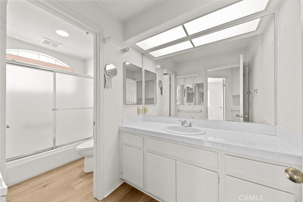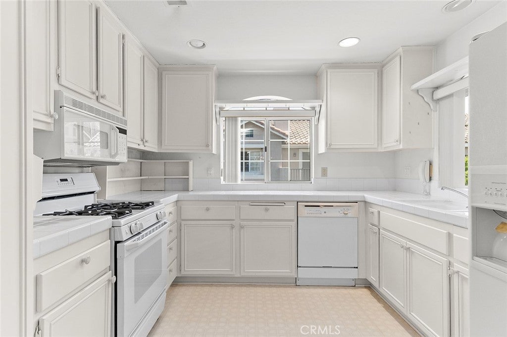 Fantastic opportunity to own this condo located in the beautiful "Gated Ventana Community" of Tustin Ranch. Perfectly located, with no one above or below, this condo offers high vaulted ceilings, great open floor plan, gas fireplace, and private balcony. Brand new laminate flooring through out, plus a completely remodeled master bathroom. Large master bedroom room with three large closets. Master bathroom is big with a huge shower area and double sink vanity. The kitchen is original with lots of counter space and tons of natural light. The hallway bathroom is original with great potential to improve. There is a separated laundry area. Forced air and heat plus large 2 car attached garage with built in shelves. HOA amenities include gated entrance, Tennis courts, Playground, Pool/Spa, BBQ, and a grass picnic area. Award winning TUSD schools, super close to Tustin/Irvine Marketplace. With low HOA's, condo is must see.