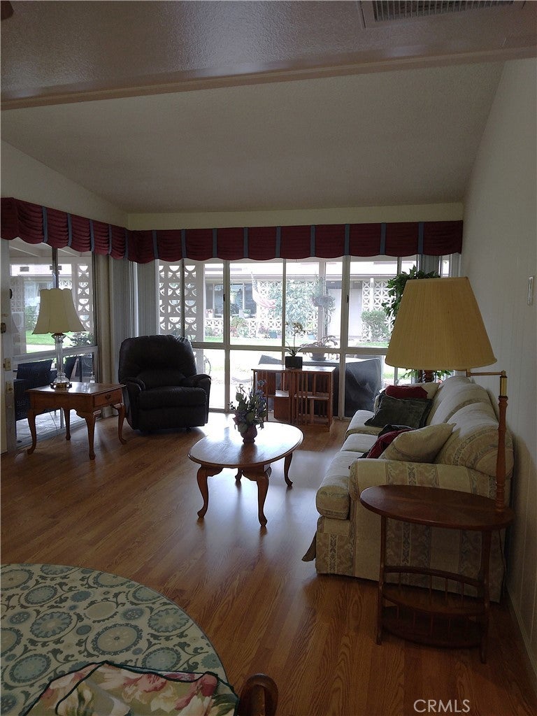 Be a part of the city of Seal Beach. There's plenty to do in Leisure World with the 9 hole golf coarse, renovated swimming pool and entertaining Amphitheater with the live band concerts in the summer. The fitness center has a variety of equipment and there are classes throughout the week. If arts and crafts are of interest, there are all types and the list of all the clubs can be found in the Leisure World newspaper. In the Library there's a computer lab and for convenience there's a Post Office annex. This south facing 2 bedroom 1 bath unit has central air for year around comfort. There's laminate flooring throughout, as well as laminate kitchen and bath counters. The large windows let in the sun and are emphasized by a cornice above the blinds for a finished look. Entertain on the L shaped tiled patio year around, it's light and roomy with a skylight, a walk-in storage closet and an open garden ready to be decorated. Within walking distance is street parking, carports, laundry and greenbelt. The carport has a large upper cabinet for extra storage. For easy driving access it's situated between the main and north gates.