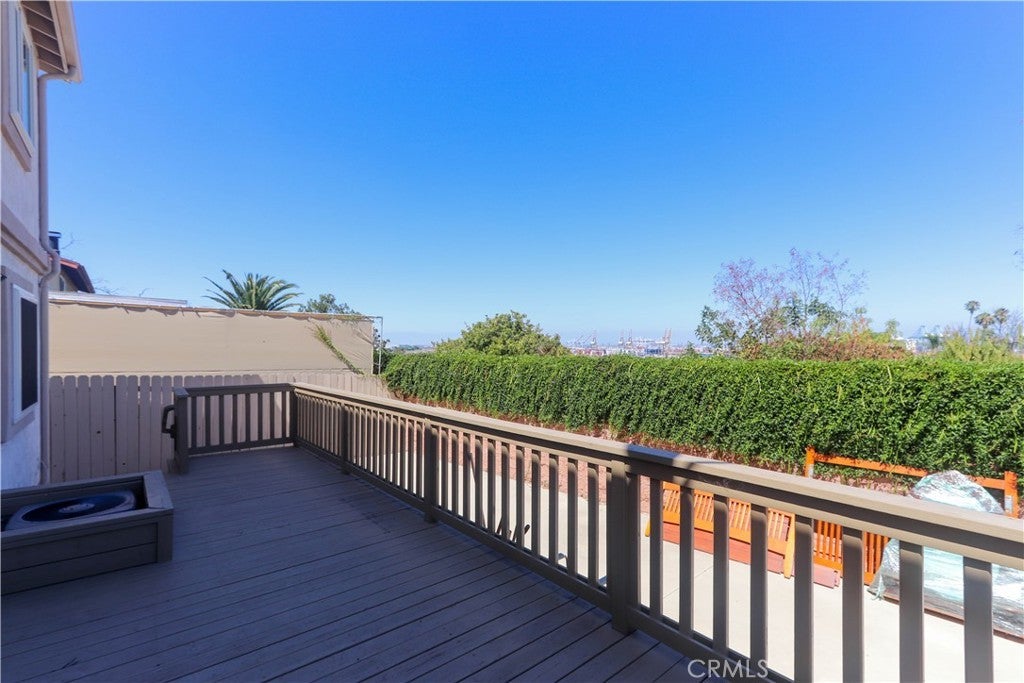 Updated single-family home at the end of a cul-de-sac with views of the Vincent Thomas Bridge, the harbor, and city lights at night is ready to be your new home. This three-bedroom, two-bath residence features an open floor plan with an excellent spatial footprint. It includes an updated family kitchen with custom cabinetry, a tile backsplash, double sinks, and abundant granite countertops, opening to the breakfast bar, dining area, and great room. The living room opens onto a large private deck. Upstairs are the three bedrooms, the primary with an en-suite bathroom, and a hall bath with a step-in shower serving bedrooms two and three. Additional highlights include central air and heat, vinyl flooring throughout the living areas, multiple ceiling fans, dual-pane windows, in-home laundry, and a two-car attached garage with direct access—all situated on a full-sized lot. Conveniently located near shops, restaurants, entertainment, and the beach, with quick access to the port, harbor, and major freeways. This home checks all the boxes. Don’t miss it!