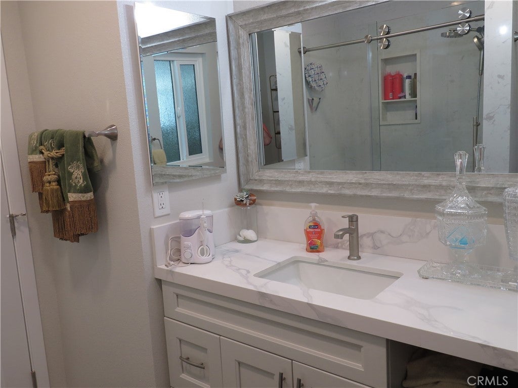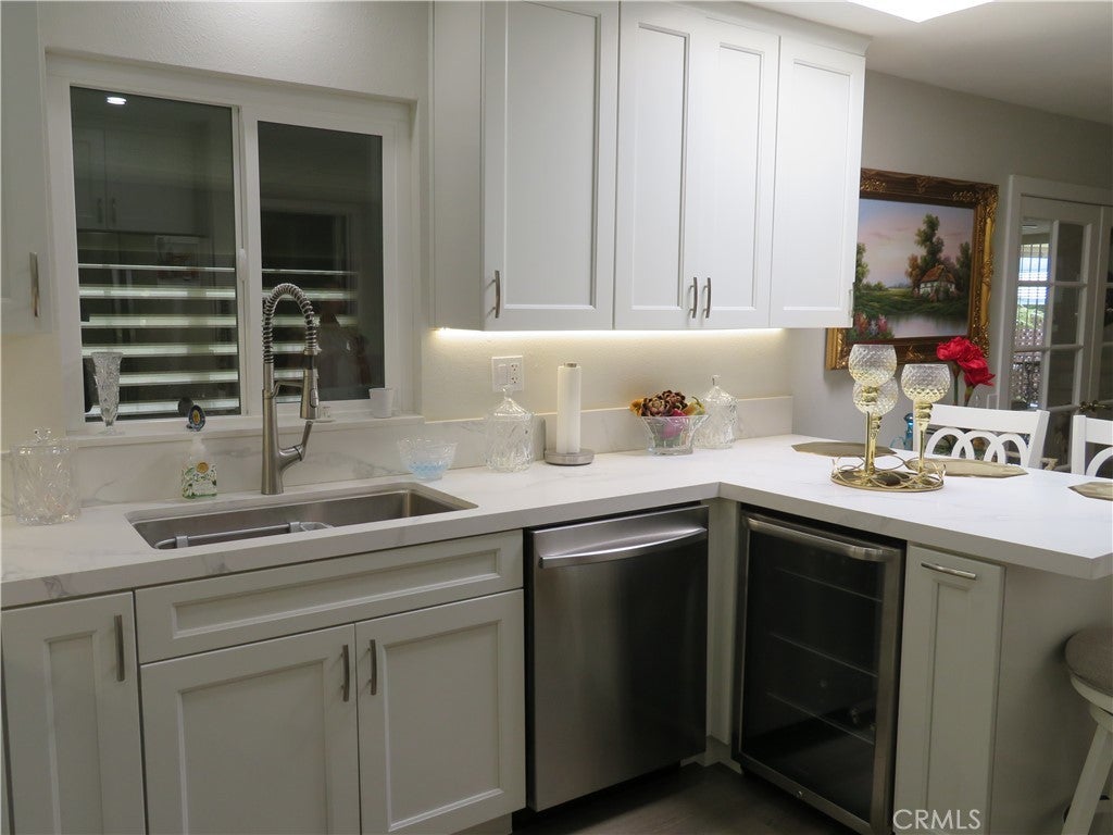 This Lovely Home is a Masterpiece in disguise, a one of a kind. Beautifully Remodeled. Drywall interior, Dual pane windows, Wood Laminate flooring, New HVAC plus New Electric. The Plumbing is copper. The New Kitchen features Self closing White Cabinets, Quarts Counters and Breakfast Counter. Stainless Steel Appliances, A 5 Burner Gas Stove, Dishwasher and built-in Beverage Refrigerator are a plus. And a wet bar. A skylight brings the outside-in. The main Bathroom features a eye appealing double size Marble Surround walk-in Shower, and A quarts covered Vanity. The large Main Bedroom features a Walk-in Closet. The exterior of this Lovely Home is surrounded by lush Landscaping front, side and rear. Must see to appreciate. Plus the Front and Rear Comfortable Patios. A Beautifully added Sun Room with a added sink and a extra Closet. The storage sheds and attached Carport are both covered. Additional Guest Parking is near by. Call today to make your appointment to see this Lovely Home.
