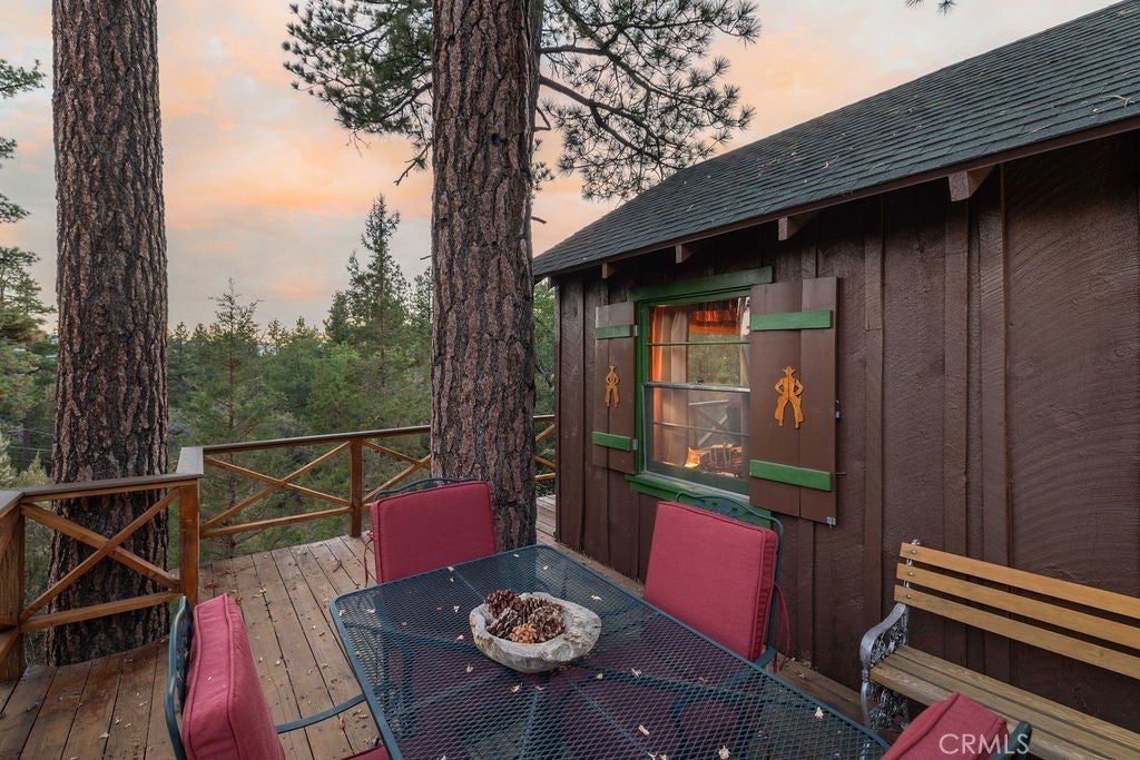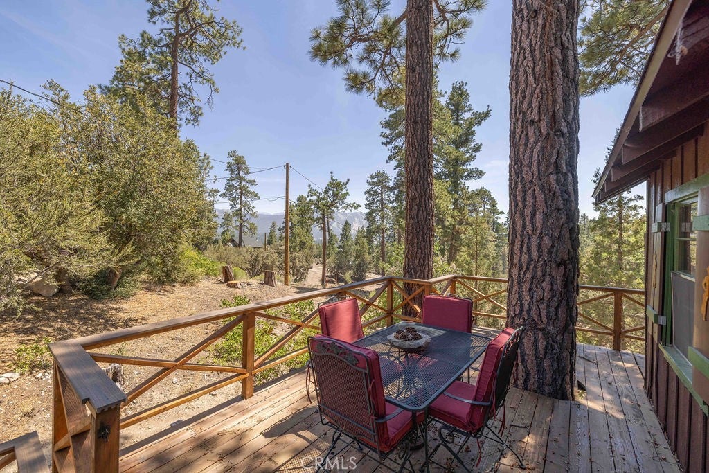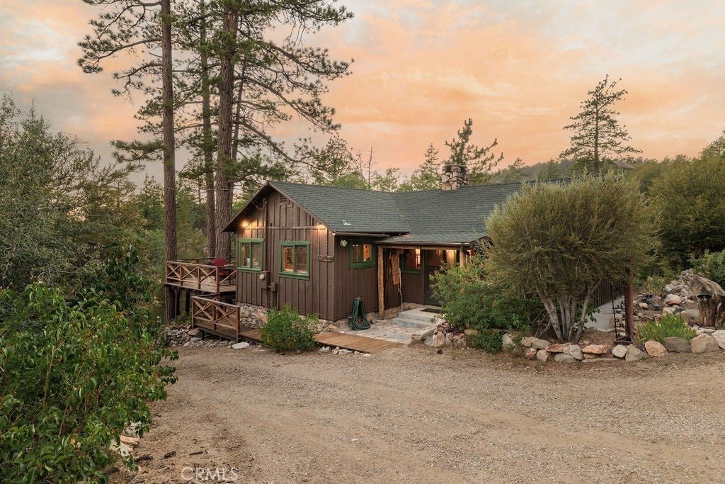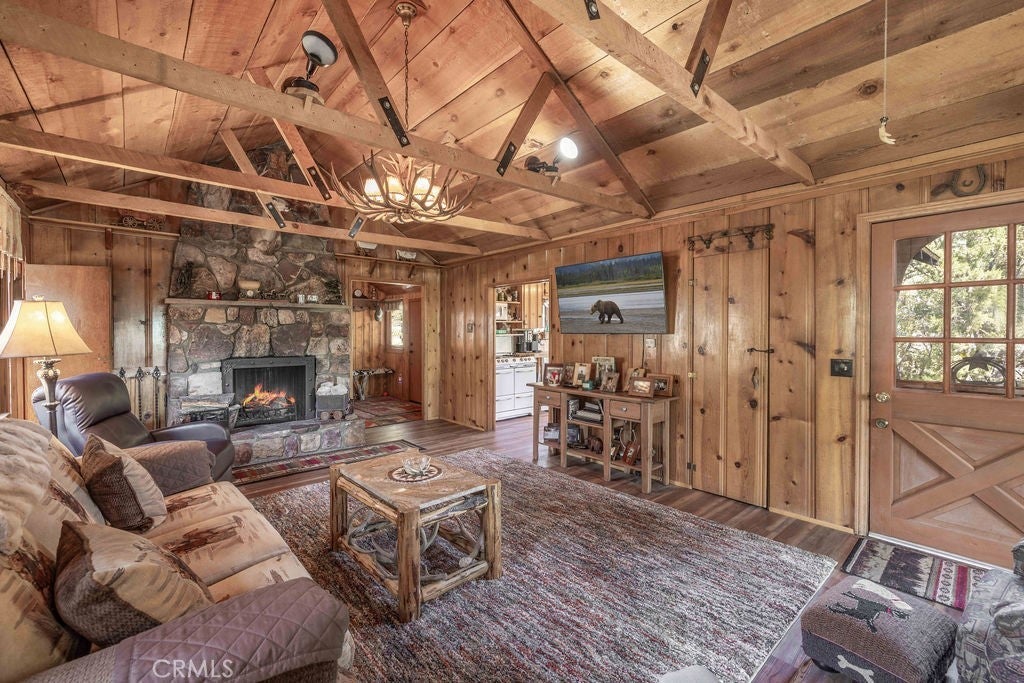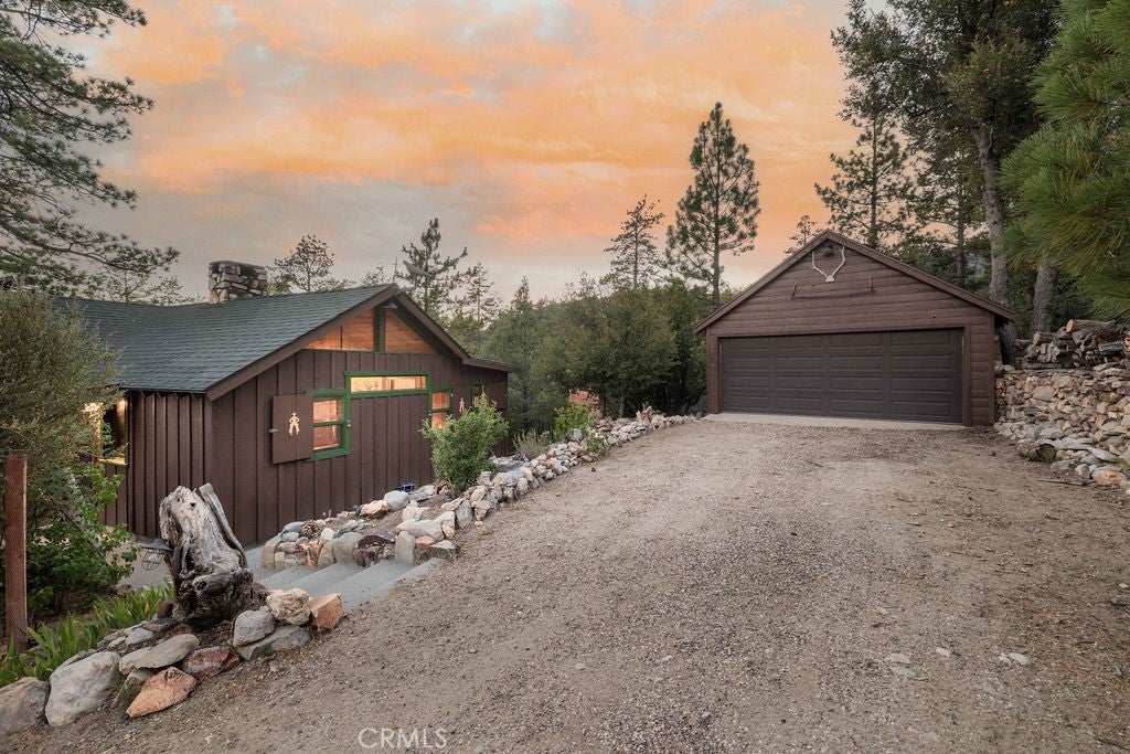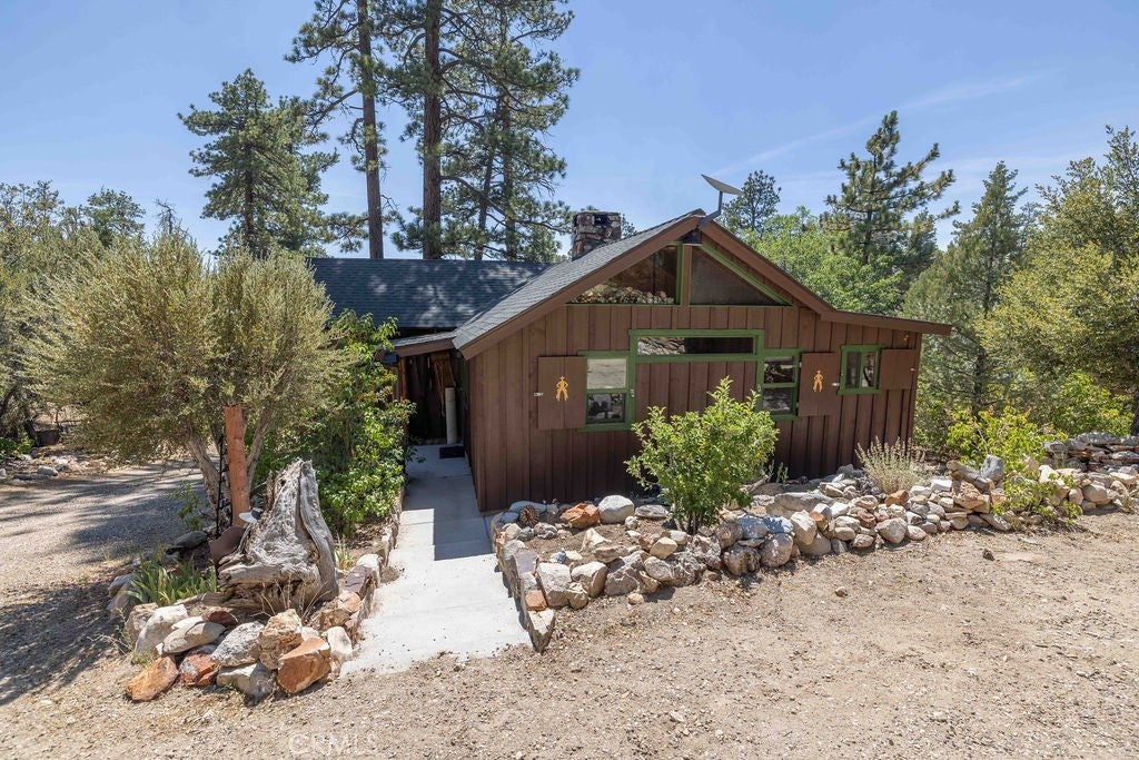 Nestled in the heart of the National Forest, this beautifully maintained 2 bedroom, 2 bathroom cabin offers the perfect blend of rustic charm and modern comfort. With over 1,000 square feet of living space, this home boasts a thoughtfully designed floorplan that feels open, functional, and inviting. Step inside to find a warm, welcoming interior highlighted by wood accents, natural textures, and a stunning native rock fireplace that serves as the centerpiece of the cozy living area. Large windows frame sweeping views of the surrounding forest, ski slopes, and the serene beauty of nature—giving you that peaceful, “cabin-in-the-woods” feeling without sacrificing convenience. Each room has been lovingly cared for, reflecting true pride of ownership throughout. The spacious kitchen and dining areas flow seamlessly, perfect for entertaining or quiet evenings at home. Two bathrooms offer comfort for guests, while the detached two-car garage provides ample storage for vehicles, tools, or outdoor gear. Whether you’re sipping your morning coffee surrounded by trees, enjoying snow-covered mountain views in winter, or simply watching wildlife pass by, this home captures the best of Big Bear’s mountain lifestyle. And while you’ll feel miles away from it all, you’re still just minutes to shopping, dining, ski resorts, and the lake. This is more than a cabin—it’s a peaceful retreat, a year-round haven, and a rare opportunity to own a forest-side gem. Don’t miss your chance to make it yours!