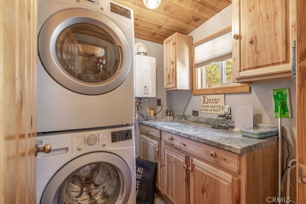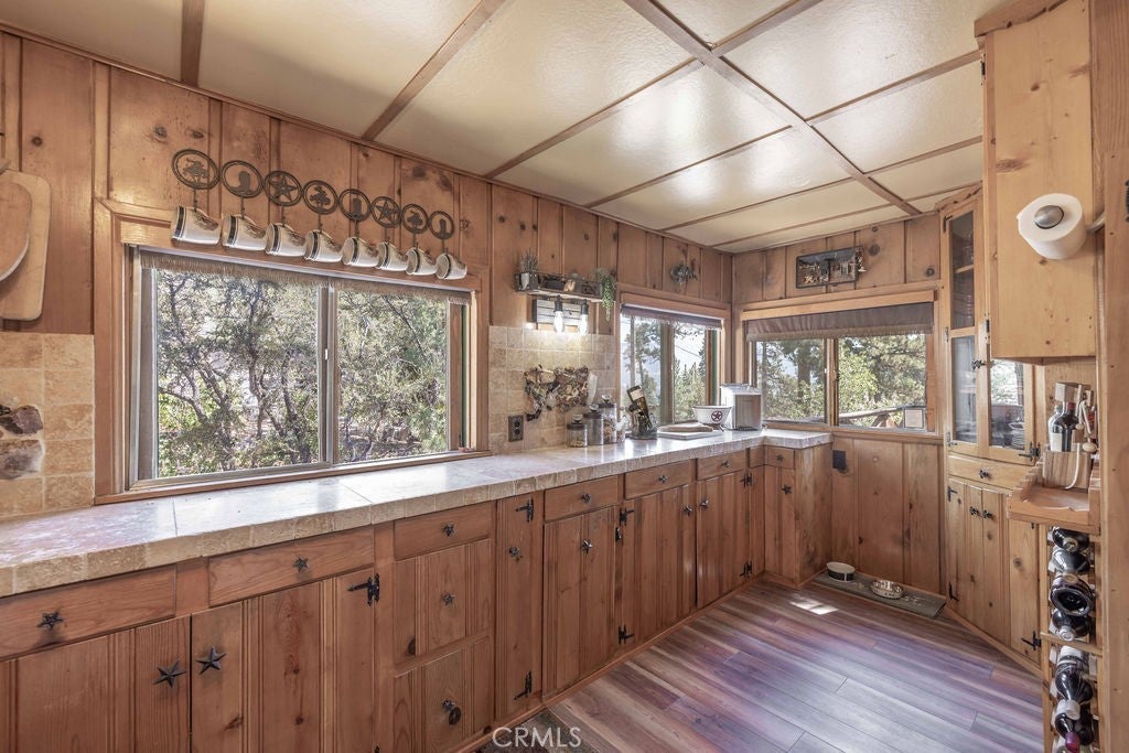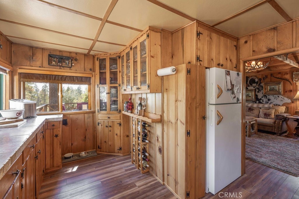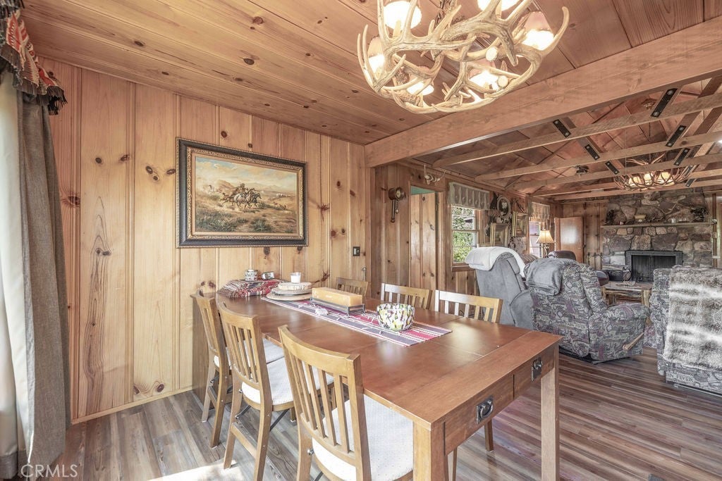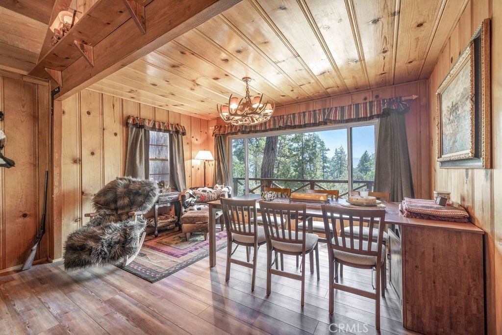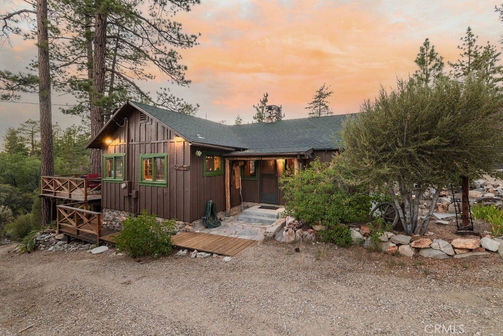 Nestled in the heart of the National Forest, this beautifully maintained 2 bedroom, 2 bathroom cabin offers the perfect blend of rustic charm and modern comfort. With over 1,000 square feet of living space, this home boasts a thoughtfully designed floorplan that feels open, functional, and inviting. Step inside to find a warm, welcoming interior highlighted by wood accents, natural textures, and a stunning native rock fireplace that serves as the centerpiece of the cozy living area. Large windows frame sweeping views of the surrounding forest, ski slopes, and the serene beauty of nature—giving you that peaceful, “cabin-in-the-woods” feeling without sacrificing convenience. Each room has been lovingly cared for, reflecting true pride of ownership throughout. The spacious kitchen and dining areas flow seamlessly, perfect for entertaining or quiet evenings at home. Two bathrooms offer comfort for guests, while the detached two-car garage provides ample storage for vehicles, tools, or outdoor gear. Whether you’re sipping your morning coffee surrounded by trees, enjoying snow-covered mountain views in winter, or simply watching wildlife pass by, this home captures the best of Big Bear’s mountain lifestyle. And while you’ll feel miles away from it all, you’re still just minutes to shopping, dining, ski resorts, and the lake. This is more than a cabin—it’s a peaceful retreat, a year-round haven, and a rare opportunity to own a forest-side gem. Don’t miss your chance to make it yours!