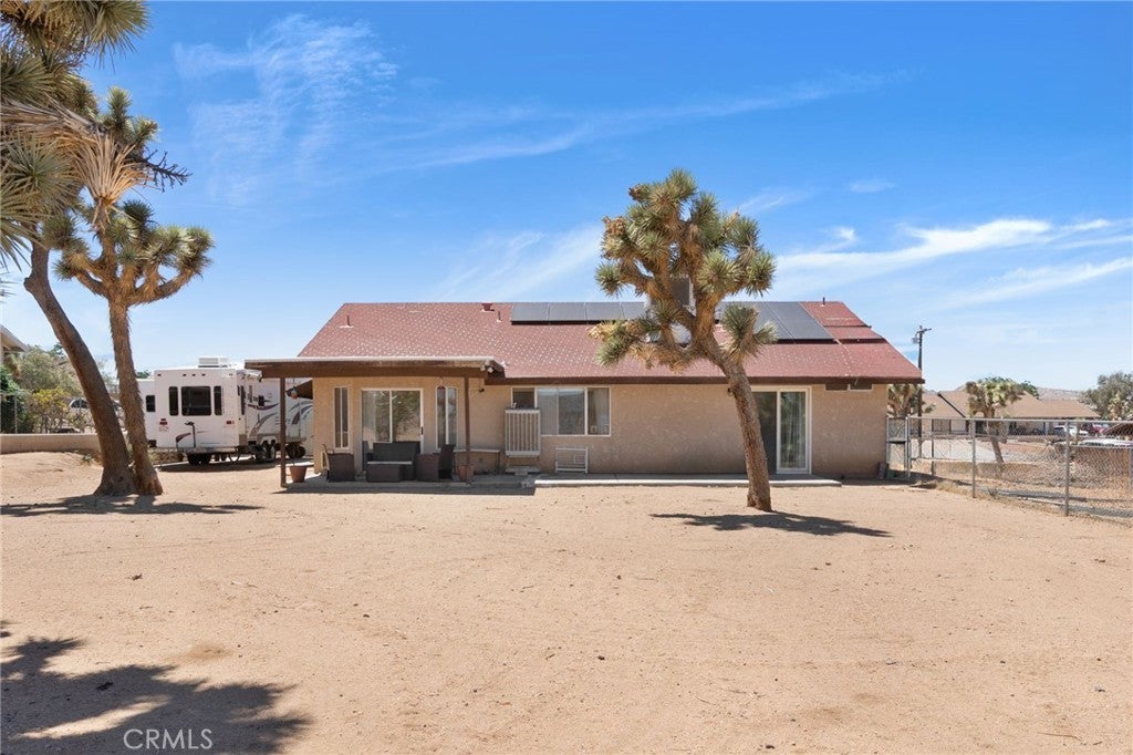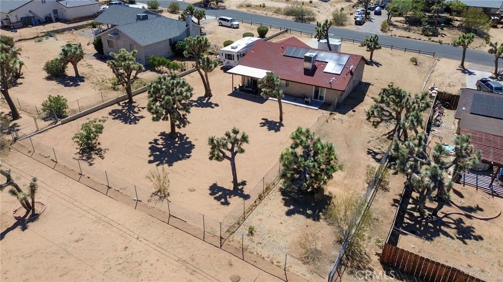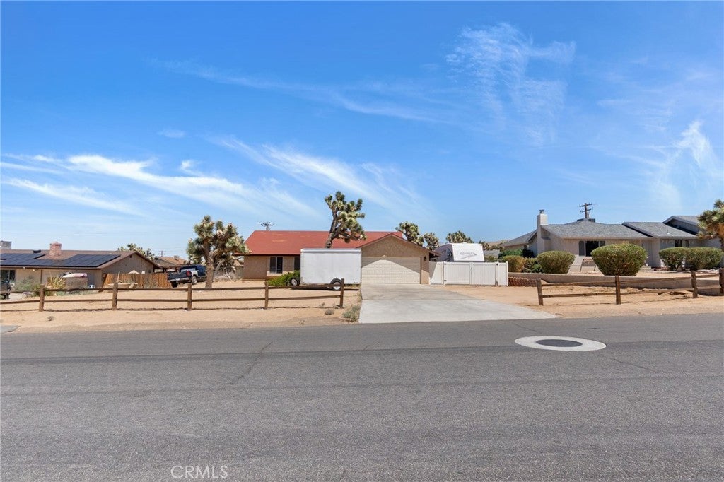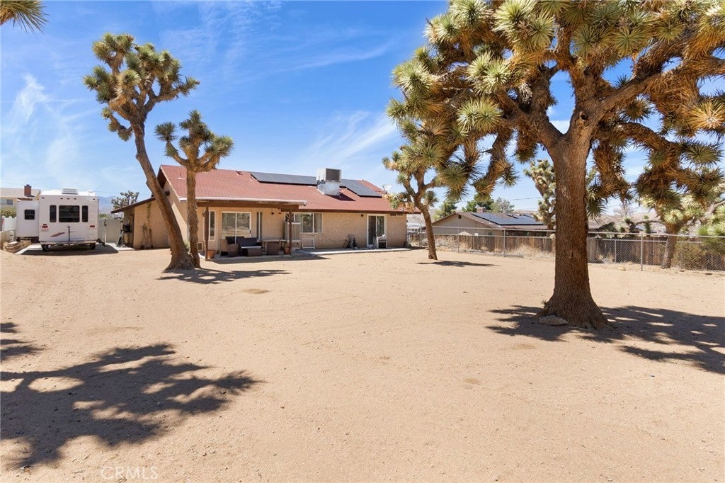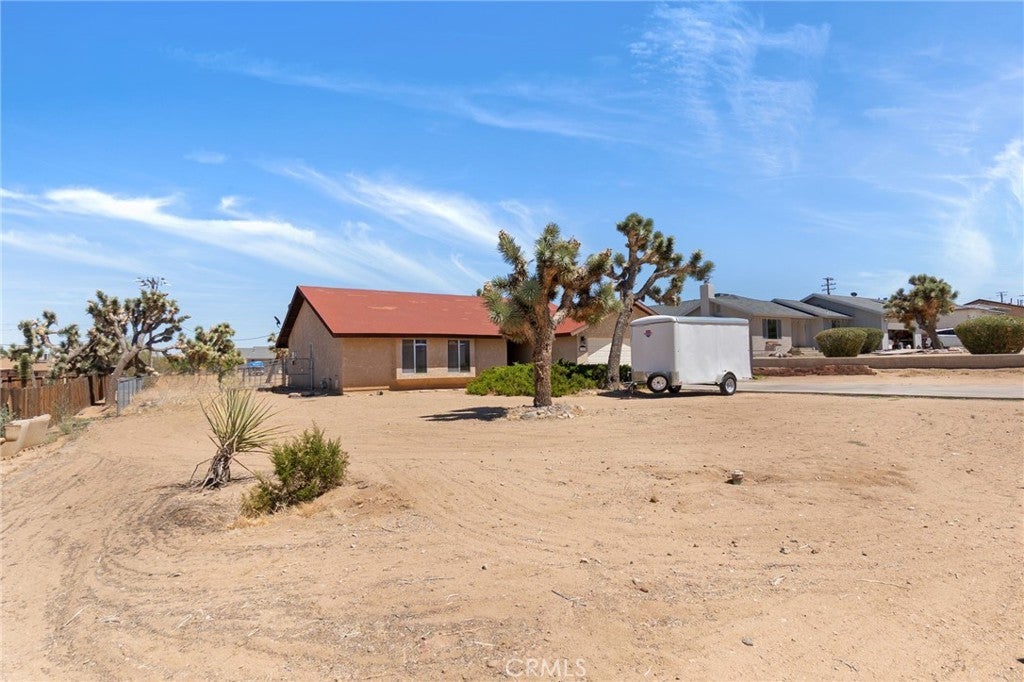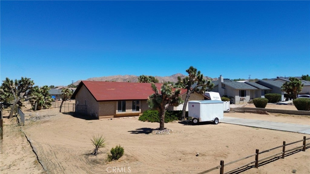 Welcome to this beautifully maintained 3 bedroom, 2 bath home sits on a large 0.41 acre lot in Western Hills Ranchos with stunning mountain views. Enjoy an open floor plan with bright living spaces and a spacious kitchen with bay windows. The fenced backyard is ideal for entertaining and outdoor living, featuring dedicated RV parking with full hookups, perfect for RV enthusiasts or extra storage. An attached 2-car garage and indoor laundry add convenience. Close to schools, shopping, and just minutes from Joshua Tree National Park—this home offers space, comfort, and the perfect desert lifestyle! Don't miss this opportunity!