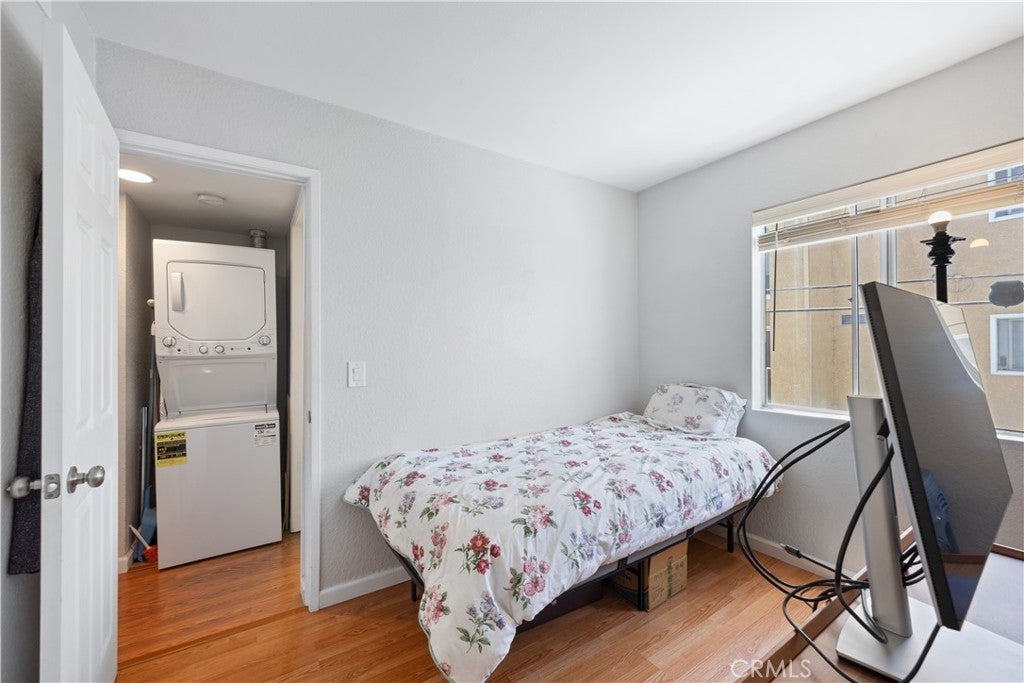 Welcome home to a 2-bedroom, 2-bathroom condo, unit #103 in the beautiful city of Long Beach. This is a corner unit, and it includes newer appliances: GE stackable washer and dryer, 22 cu. ft. stainless steel LG refrigerator with french doors and lower freezer and water heater. Kitchen also includes a microwave, stove and oven, pantry and a counter bar. There is a built-in bookshelf in the living room, a fireplace and sliding glass doors with custom curtains, leading to a large balcony patio area. The large Master Suite includes custom-built closets, an ensuite bathroom with dual sinks and a separate restroom as well as black out curtains and hardware from West Elm. There is one common wall. The condo complex is a gated community with access to two parking stalls, two storage units, an onsite workout room, elevator access, common laundry room and also a spacious community seating area that has a barbecue grill for entertaining. The condo is located within walking distance of 4th Street Retro Row. This location offers residents a walkable, bike friendly environment and a strong cultural atmosphere with weekly farmers markets. The condo is within a few blocks from the beach, near vintage shops, a variety of restaurants, several local merchants, the historic Art Theatre and events such as "Fourth Fridays." Living in this area puts you near other parks and the LB downtown area with access to public transportation.