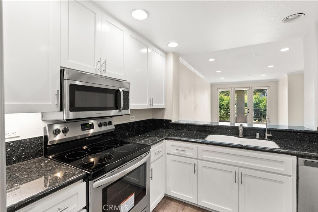 Living in a perfect retreat. Spacious, ideal quiet corner unit unlike any other, a beautifully appointed condo at The Metropolitan, Building B. Boasting a generous size of 1264 square feet, this luxurious condo offers a harmonious blend of elegance and comfort, enhanced by resort-style amenities. Inside, experience an abundance of natural light and an open floor plan with 9-foot ceilings, crown molding, and exquisite real wood flooring. This large unit includes two bedrooms and two baths, plus a versatile bonus room ideal for an office or a third bedroom. The modern kitchen is equipped with newer cabinets, granite countertops, stainless-steel appliances, new flooring, and a stackable washer and dryer, as well as a breakfast bar for casual dining. Imagine having your primary suite, a peaceful sanctuary with a quiet private balcony, a walk-in closet, and a spa-inspired bathroom featuring a marble shower with a bench, rain, and handheld showerheads, a soaking tub, and dual vanities with ample storage. The outdoor living space offers a light and bright patio surrounded by lush tropical landscaping and greenbelt views, providing a serene escape. Just steps away, enjoy access to resort-style amenities including a sparkling pool, spa, sunbathing court with cabanas, outdoor barbecues, a state-of-the-art fitness center, and an exclusive resident lounge and clubhouse. Some of the HOA covered expenses include Water and Trash. A secured storage area is available. Two assigned parking spaces are available for this unit and plenty of guest parking within the community. This unit combined with a motivated seller will sell soon. Don't miss this!