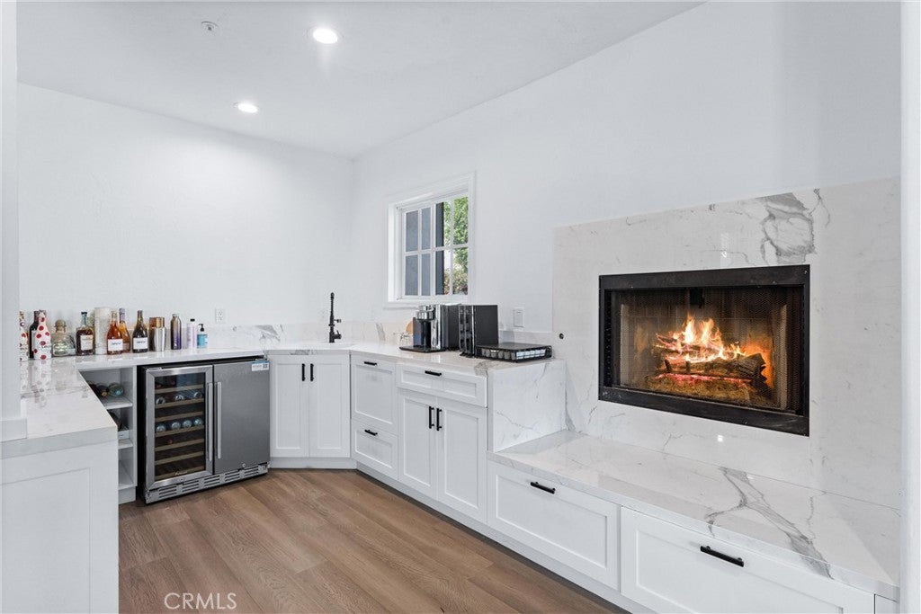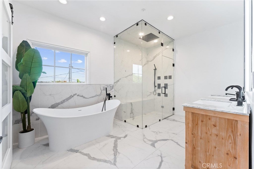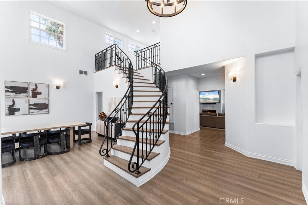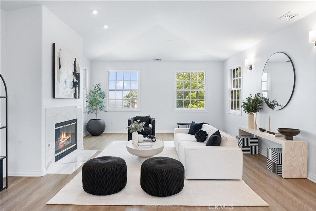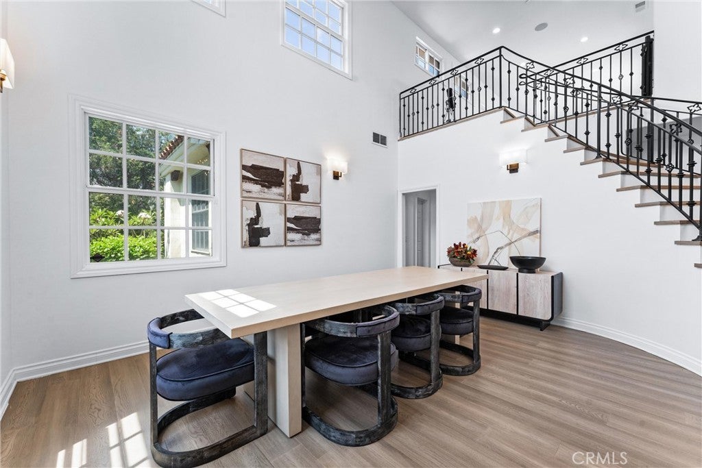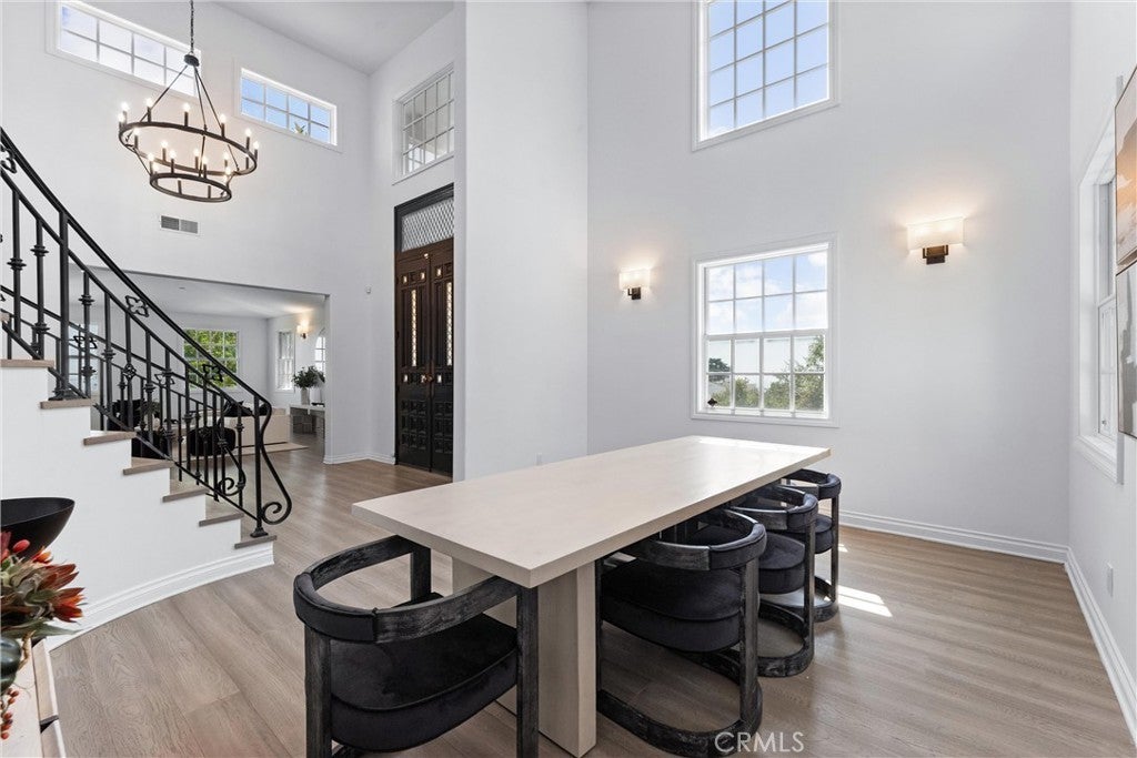 Welcome to 927 E Avocado Crest Rd, a one-of-a-kind Spanish Style Estate. This property boasts stunning panoramic and picturesque views from Orange County to Los Angeles, including Catalina Island, city lights, nightly fireworks all visible from multiple sitting decks and the pool. The north side offers views of the renowned Hacienda Golf Course, a historic La Habra Heights landmark. This freshly upgraded home greets you with a stunning entry that exudes luxury and attention to detail. The primary bedroom offers a private balcony with breathtaking views of the resort-style grounds and city lights, ideal for enjoying amazing sunsets. It includes a spacious sitting room, and the en-suite bathroom features a soaking tub and a true spa sanctuary. The custom-designed shower suite includes a rainfall shower head, multiple shower heads, and soothing body sprayers, and it doubles as a steam room or sauna with a built-in steam generator and aromatherapy compatibility for a relaxing and restorative experience. The kitchen is equipped with marble countertops, top-of-the-line appliances, a butler's pantry with a wine refrigerator, a commercial stove with commercial venting, and wood plank flooring throughout. Each of the five bedrooms has its own en-suite bathroom, a walk-in closet. One bedroom and en-suite bathroom are conveniently located on the main floor for guests or easy access. Additionally, there is a loft with an adjoining deck. There are two staircases: a formal entry with a cascading staircase leading to the upper level, and a back stairway that connects the kitchen to the bedrooms, decks, and loft. The game room is perfectly situated for entertaining and opens to the outdoor patio and pool area, and it includes a bar with seating for a crowd, a wine refrigerator, dishwasher, ample storage, and a half bath. The outdoor amenities include a pool, spa, waterfall, BBQ/bar, and a spacious grassy area with tropical foliage and a variety of fruit trees. Smart home system is wired for high-speed internet to ensure optimal Wi-Fi performance in every room, and centralized control from your smartphone over the air conditioning, pool, automatic gate, security system, and built-in sound system. The direct access garage consists of two 2-car garages, and additional parking providing enough room to park an RV or around 20 cars. Whether you're entertaining guests or enjoying a quiet night in, this home delivers convenience, comfort, and control with cutting-edge ease.