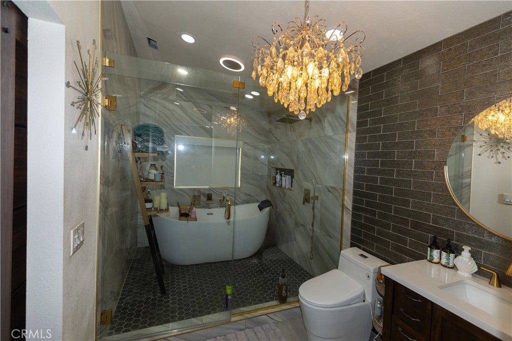 ***Motivated Seller****Charming single-level, 3-bedroom, 2-bath home and ADU located on a cul-de-sac in Yucaipa. This inviting property features approxiately 1595 square feet and a good size lot of approximately 10,500 square feet with an ADDED BONUS: a one-bedroom, one-bath ADU, perfect for in-law quarters or potential rental income. NO HOA! The home has been beautifully upgraded, showcasing a stunning kitchen with white cabinets, waterfall quartz countertops, and a decorative tiled backsplash. Additional features include newer windows, new flooring throughout, a wine fridge, an upgraded primary bathroom, ceiling fans, solar energy, a tankless water heater, and newer A/C. This home is gorgeous! The private backyard is ideal for relaxation, complete with a fire pit and fruit trees. This home is a must-see, reflecting pride of ownership, and is ready for the next family to create lasting memories. Schedule your private showing today!