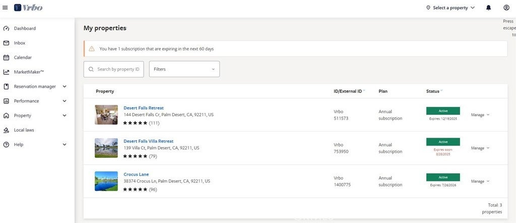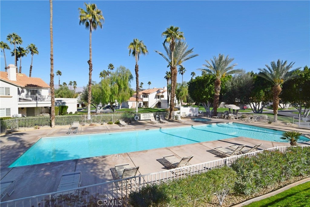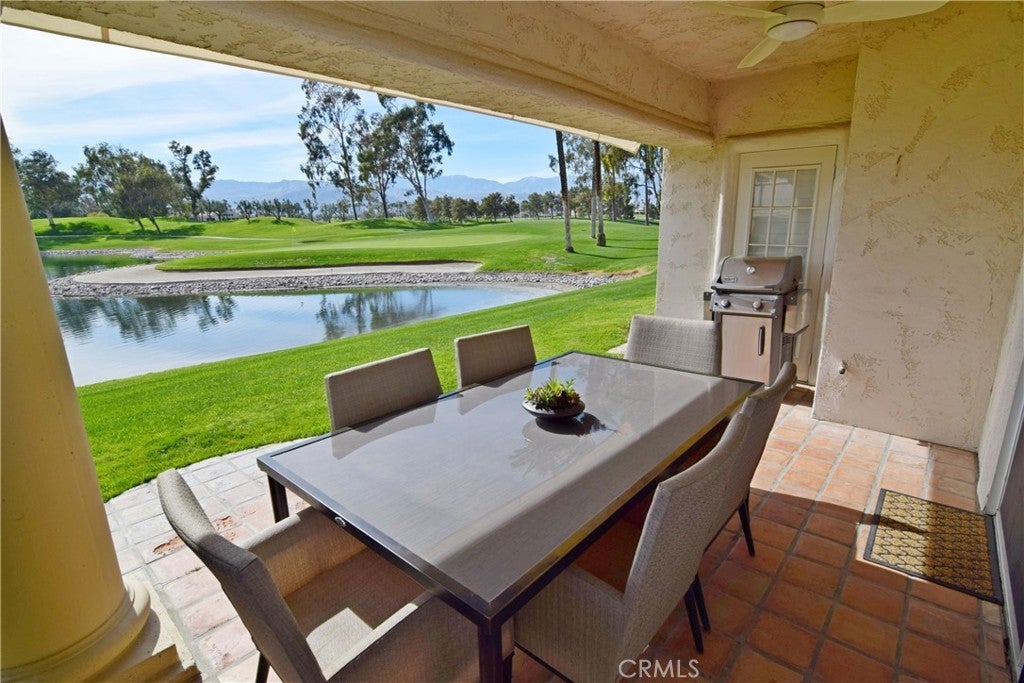 Priced to move! Updated beauty! GROUND level, VIEW & a modern interior with remodeled kitchen, 2 car attached garage and access to fitness center and golf course! This stunning 2 bed, 2 bath condo has a view of the lake at the 12th hole-- one of the premier and most desired locations on the golf course. Snowbirds, vacationers and short term renters LOVE this place--and it has a solid rental history!!!! Enjoy watching golfers hit tee shots and putt from this south-facing, single level unit.This updated home features a modern kitchen with quartz countertops, white shaker cabinets and updated appliances. Other amenities include plantation shutters, and newer porcelain wood-style flooring and custom baseboards. Includes indoor laundry room, covered patio facing the golf course and a large private driveway. This end-unit home is perfectly positioned on a quiet cul-de-sac and just across the street from one of the many pools! The guard gated, STR friendly association offers exceptional amenities, including a gym, tennis courts, pickleball, and an active clubhouse. Experience luxury living in a serene, sought-after vacation setting! Furnishings available. Strong vacation rental history and book of business and time available to enjoy yourself as well!!! Owner will train. Property ("Desert Falls Villa Retreat") has a 5 star rating and 79 reviews on VRBO alone--and VRBO advises those reviews should be transferable to the new owner's account!!!