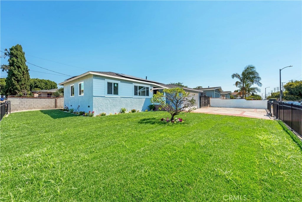 Welcome to your fully updated 3-bedroom, 2-bath home, where modern comfort meets timeless charm. Step inside to discover brand-new vinyl flooring and fresh interior and exterior paint, creating a bright and inviting atmosphere. Recessed lighting and a smart thermostat add both style and efficiency, while brand-NEW dual pane vinyl windows and upgraded attic insulation keep your home comfortable year-round. The kitchen and living spaces flow effortlessly, supported by a completely upgraded electrical panel—ready to power your electric vehicle—and brand-new water pipes for peace of mind. Outside, enjoy brand-new landscaping with fresh flower beds, new sprinklers, and a brand-new roof for lasting protection. Enjoy the 2-car garage with addition 3 car parking in the driveway fenced by brand NEW iron-wrought fencing. BONUS Energy Efficient UPGRADES includes BRAND NEW and PAID OFF Solar Panels. With over $150,000 worth of upgrades, this move-in ready home is a rare opportunity to enjoy modern upgrades without lifting a finger—just unpack and start living. Experience convenient living by local eateries, schools, major hospitals, with quick freeway accessibility.