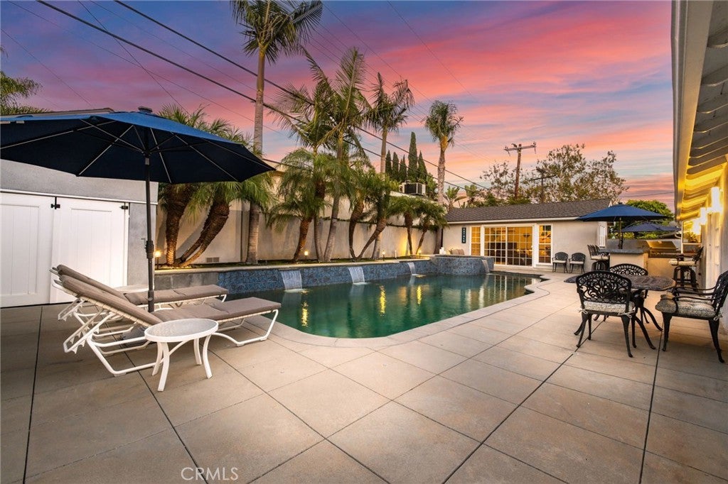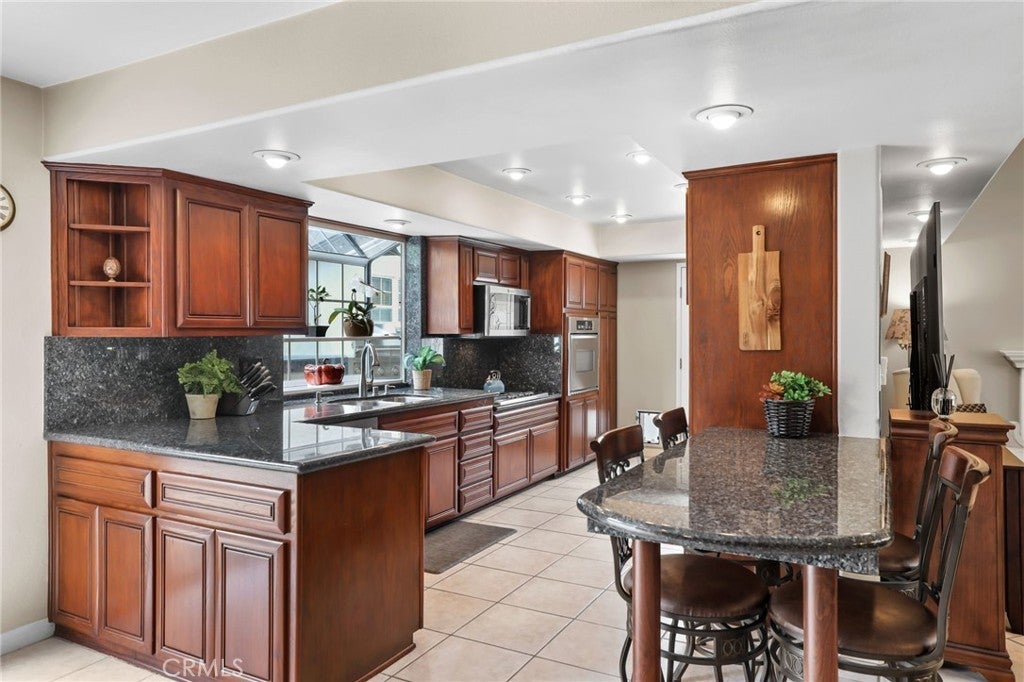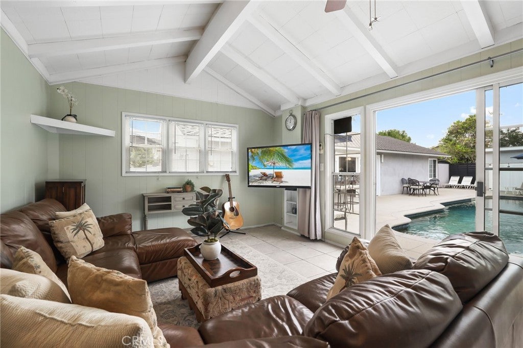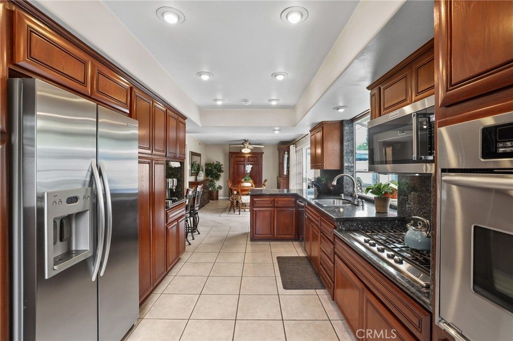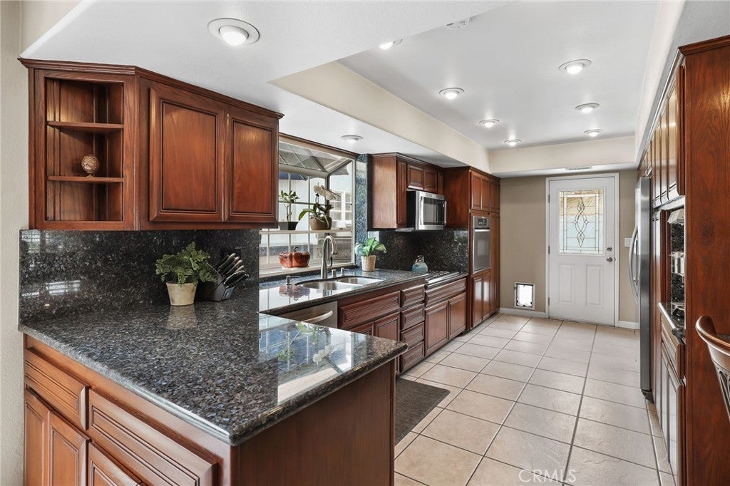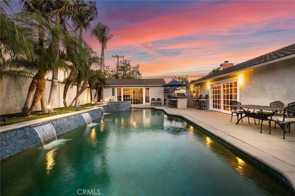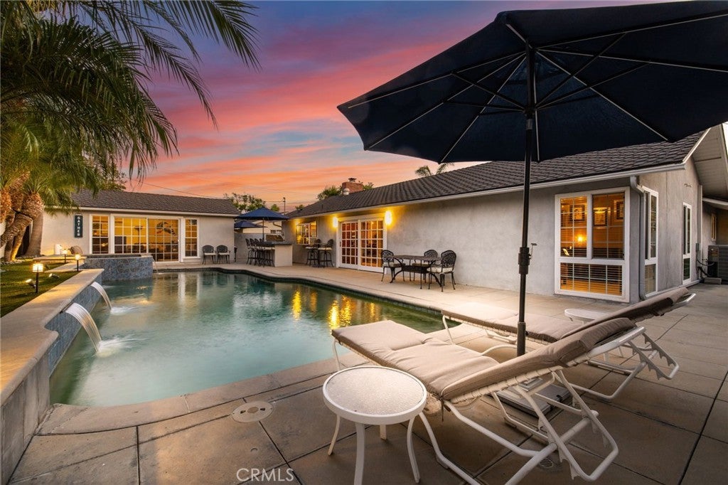 Welcome to 12852 Foster Road, nestled in the highly sought-after community of Rossmoor, Orange County—where pride of ownership meets exceptional comfort and design. This beautifully upgraded single-story home offers approximately 2,000 square feet of total living space, including a 1,645 sqft main home and a 355 sqft detached pool casita. Situated on an 8,064 sqft lot, it features full RV hookups, a 45-foot gated RV parking space, and a sweeping driveway leading to a finished two-car garage with direct access—altogether a rare find in Rossmoor. Inside, high vaulted ceilings, recessed lighting, and designer tile flooring flow seamlessly throughout. The living room centers around a granite gas-and-wood-burning fireplace with mantle, surround sound, and dual-pane windows, creating a warm and inviting gathering space. The chef’s kitchen has been completely remodeled with solid wood cabinetry (with custom pullouts), granite countertops, stainless steel KitchenAid appliances, and a sunlit garden window. The adjacent formal dining area opens through a custom beveled-glass sliding door to the private backyard oasis. The primary suite offers a walk-in closet and a luxurious en-suite bath featuring granite counters, a marble shower, and elegant designer finishes. Secondary bedrooms include mirrored closets and ceiling fans. The detached casita provides flexibility as a home office, guest suite, or fourth bedroom, complete with built-in cabinetry and a view of the resort-style backyard. Step outside to enjoy your own private retreat, showcasing a Pebble-Tec pool and spa, built-in BBQ with seating area, outdoor bathroom, mature palms, custom lighting, and abundant storage. Additional upgrades include a newer roof, tankless water heater, re-lined sewer line, and updated HVAC for year-round comfort for both main house and annex. The finished two-car garage offers extensive cabinetry, a stainless utility sink, and washer/dryer hookups. Ideally located near award-winning Los Alamitos schools, beautiful parks, and convenient shopping, this home perfectly blends functionality, sophistication, and the best of Southern California indoor-outdoor living.