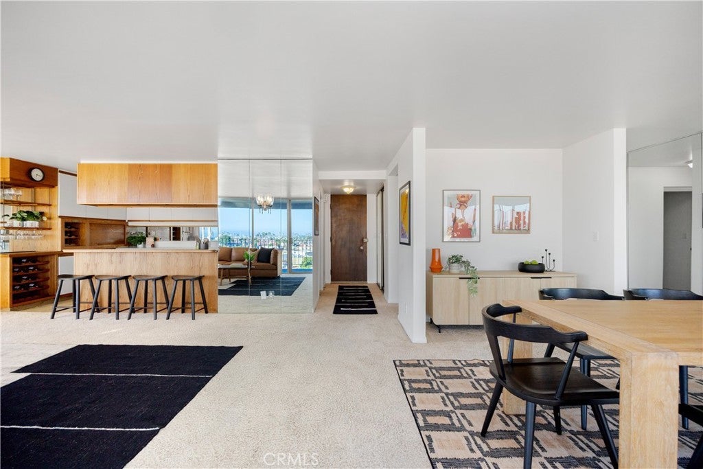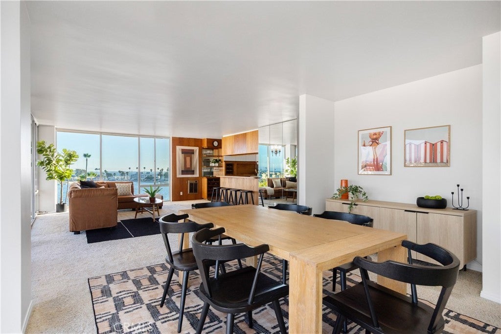 Welcome to 5400 The Toledo, designed by renowned architect Hugh Gibbs and home to one of the rarest and most incredible oceanfront condos you may ever see on Naples Islands. Unit 601/603 is not only expansive by way of sheer square footage, but also boasts one of the most spectacular panoramic views all of the Long Beach coast has to offer. Pulling into one of this condo's two side by side gated parking spaces, you may notice the building's consideration and care which carries from the secured parking garage, into the 24 hour secured lobby, continuing all the way from the elevator to the front door of unit 601 at the end of the hall. Walking inside, you'll more than likely feel a blast of cool ocean air before you notice the reflection in the hall closet of what's to come. Although the kitchen is to your right and a hallway to your left, it's hard not to observe what's directly in front of you. Walking into the living room adjoined by a formal dining area, you're greeted with floor to ceiling 180 degree views from Catalina to the Mountains. When you finally gather yourself and comprehend the impressiveness of what you're seeing, you can head into the galley kitchen accompanied by a bar top with potential for hosting and serving alike. Wrapping back around, you'll find yourself looking down a hall which leads you past 3 guest bedrooms and 3 guest bathrooms, bookmarked with one of the largest and most expensive condominium en-suites in 90803. Aside from the perks of over 2200 square feet, extra storage, guest bedrooms and additional parking, having two units turned into one also offers the perks of a walk-in primary closet with its own laundry hook ups, space for an additional refrigerator with water line, and bedside views from the coast of Long Beach all the way to Laguna. Finding a rarity like this would be a once in a lifetime find in itself, but adding the 30 foot dock into the equation is where things get just that much more special. Whether you plan to walk to the restaurants, award winning schools, or take the boat out for a cruise, coming back home everyday to arguably the best view in town could be just that easy.