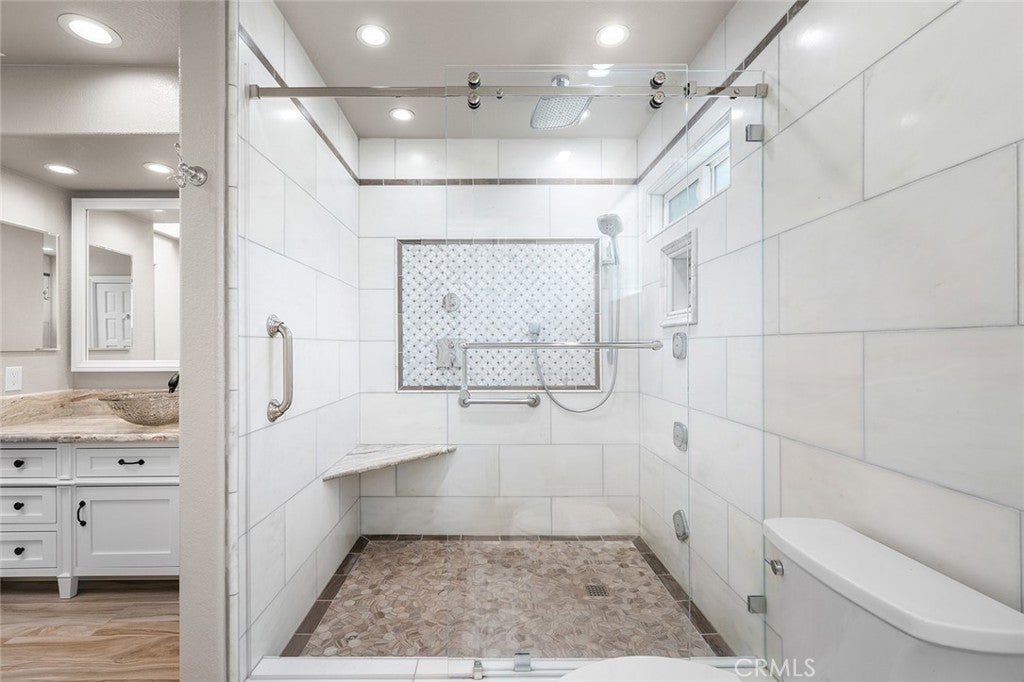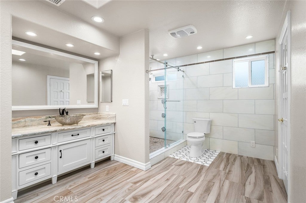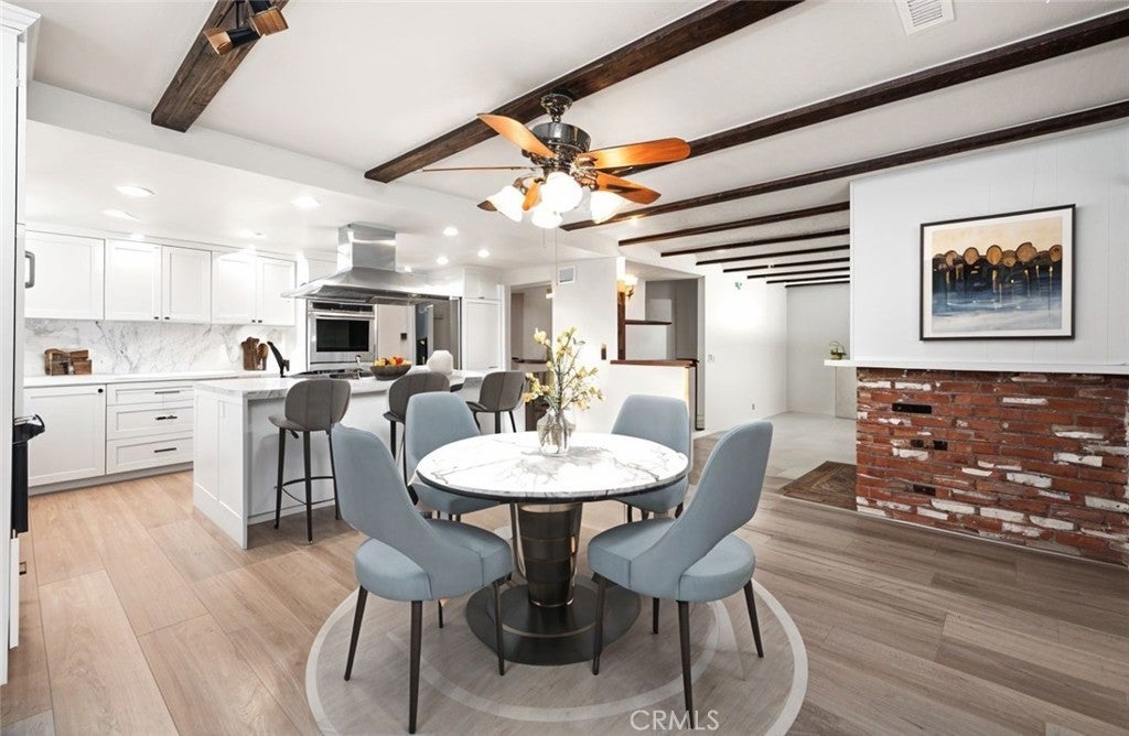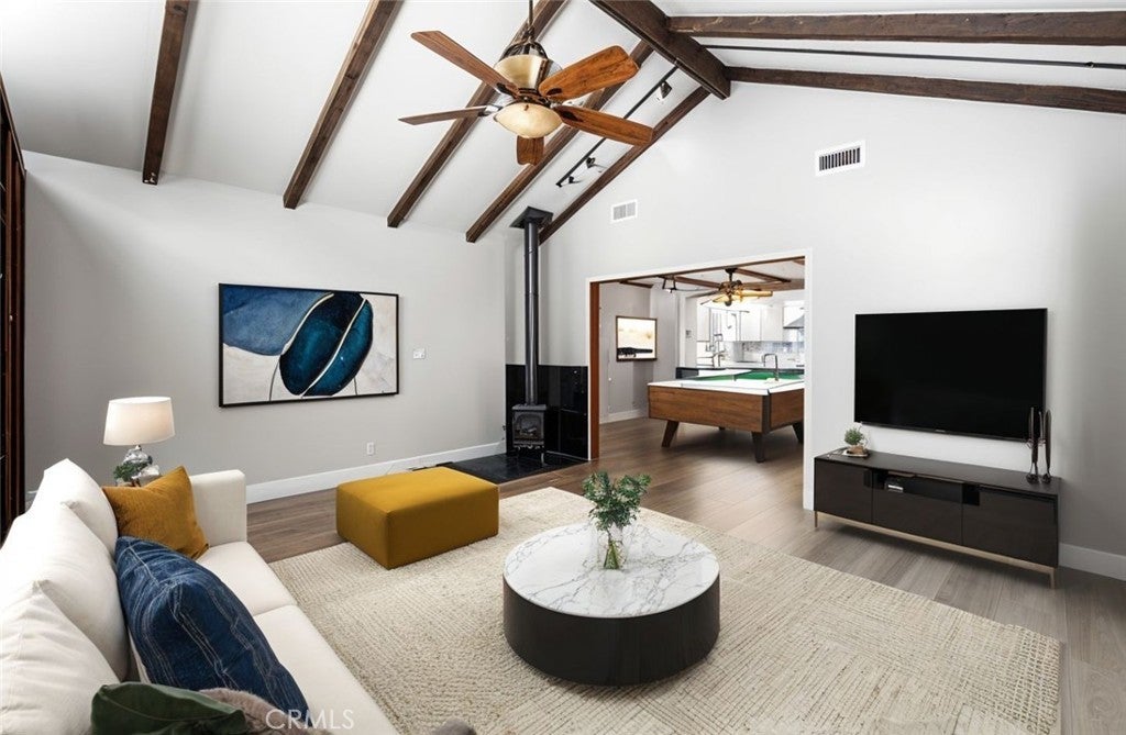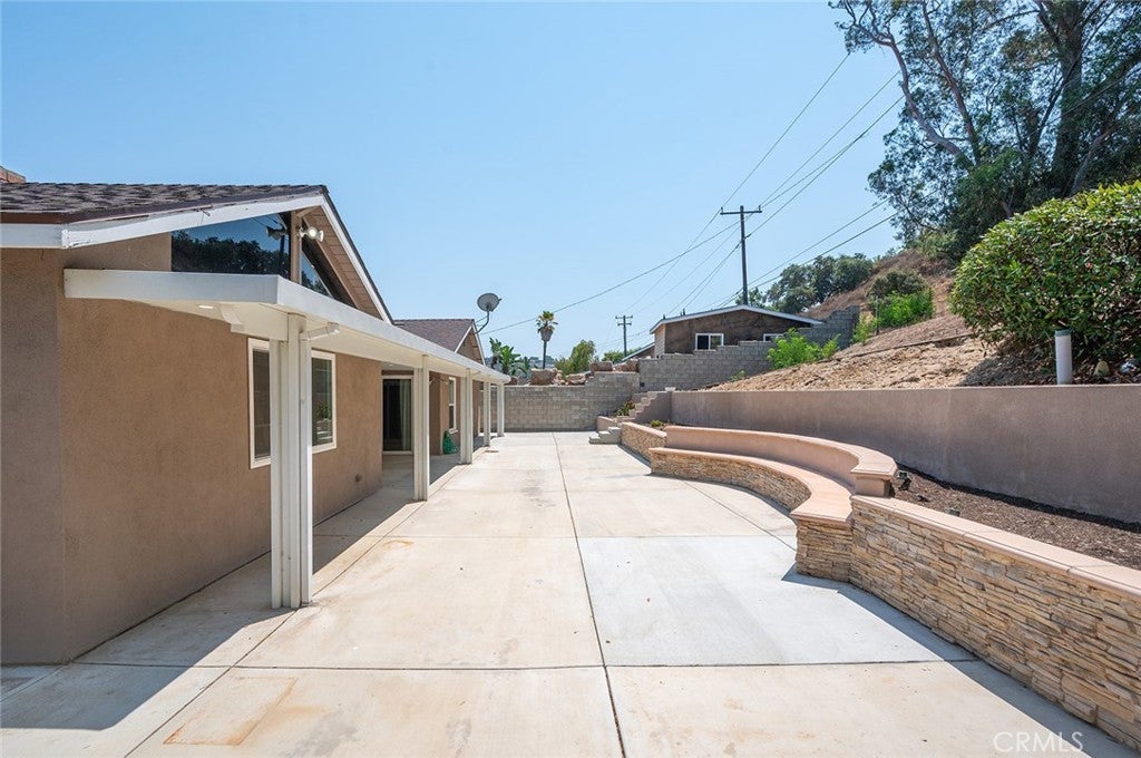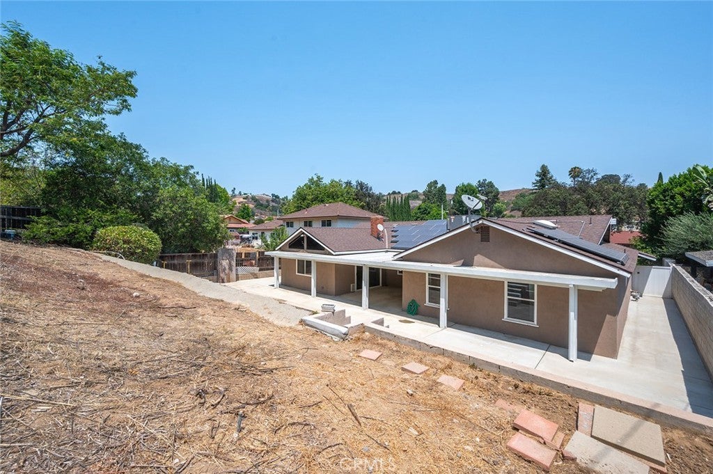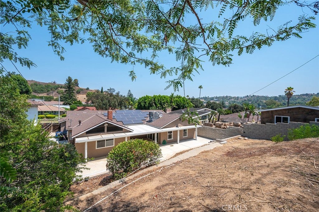 This private Diamond Bar Ranch-style residence is situated on a large private lot in a cul-de-sac neighborhood. Gracious double-door entry to a large foyer leading to the step-down living room with a charming fireplace. The kitchen is a gorgeous 2021 remodel. Quartz countertops, tile backsplash, and recessed lighting wth an under-mount sink. Totally custom cabinetry, including a handy "lazy susan" corner cabinet. The culinary island includes ample seating, storage, a six-burner Thermador range, and an exhaust hood. Built-in Kitchen Aid double ovens with a top-of-the-line refrigerator, Thermador dishwasher, PLUS drawer-style microwave complete the appliance package. The center island offers ample storage for those small appliances and decor that are not often used. Speaking of storage, do not overlook the walk-in pantry installed in 2010 with custom shelving! The kitchen sewer line was sleeved in 2019. Direct access to the kitchen is from the two-car garage. You'll find the laundry, the water softener (paid for in 2020), and the oversized water heater (2022). Off the glamorous kitchen is a large dining area which opens to the family room for ease of entertaining. The family room has beamed vaulted ceilings and sliding doors to the covered patio. Remodeled in 2022, this patio space has newer concrete that spans the whole rear and side of the home. Also included in the 2022 remodel is fresh hardscape with seating and tiered planters with steps to the sloping hillside, ready for your gardening touch. The primary bedroom, bathroom, and one bedroom were reimagined in 2020 to create a dream retreat. The primary bathroom has custom tile throughout with a large walk-in shower with glass doors. There is a lovely skylight for ambient lighting and a massive walk-in and walk-through closet with a custom storage system. There are three other spacious bedrooms and a bright hall bathroom as well. Enjoy the newer dual-pane vinyl windows (2020) and relax in the climate-controlled environment thanks to the 2022 HVAC system. Tesla solar system installed in 2014 on the 2022 roof! More than just a property, this home has been lovingly cared for and updated - ready for you to enjoy!