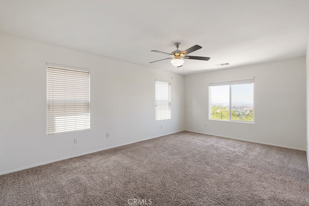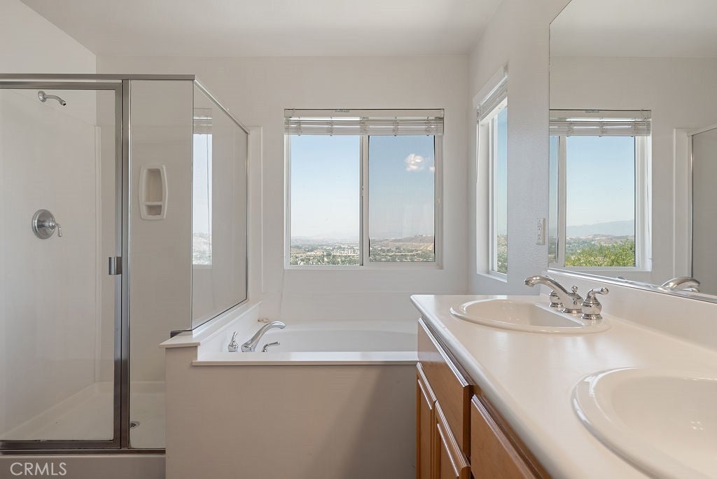 Welcome to the Sienna Ridge community within the Shangri-La neighborhood, perched atop a tranquil hillside in one of Canyon Country’s most desirable neighborhoods - where comfort, style, and stunning panoramic valley and mountain views come together. This inviting 4-bedroom, 3-bathroom home spans approximately 2,353 sqft and is thoughtfully designed for modern living. The flexible layout includes a downstairs bedroom with a full bath, ideal for hosting guests, multigenerational living, or a private home office. The main living features a dual-sided gas fireplace that connects the living and dining rooms, while abundant natural light creates a warm and welcoming atmosphere throughout. The kitchen is built for both entertaining and everyday functionality, featuring a center island, walk-in pantry, and ceramic tile counters. Just off the dining area, you’ll find a private patio where you can take in sweeping valley and mountain views. A perfect setting for morning coffee, evening sunsets, or weekend gatherings with friends. Upstairs, discover a spacious loft with a built-in study nook, perfect for working or learning from home. A dedicated laundry room and two spacious bedrooms with mirrored closet doors add convenience and functionality. The large primary suite offers a peaceful retreat with dual walk-in closets and panoramic views of the hills and city lights. Beyond the home itself, residents of Sienna Ridge enjoy access to a community pool and well-maintained common areas, creating a true neighborhood lifestyle. The monthly HOA fee of $275 covers water service, simplifying your utilities. Conveniently located, this home puts you just minutes from grocery stores, the public library, and a mix of local and chain restaurants. With quick access to the 14 Freeway, commuting is easy. Best of all, there are no Mello Roos fees, so you can enjoy the benefits without extra costs. Move-in ready and waiting for you to make it your own, come experience life at 27635 Sienna Ridge Row.