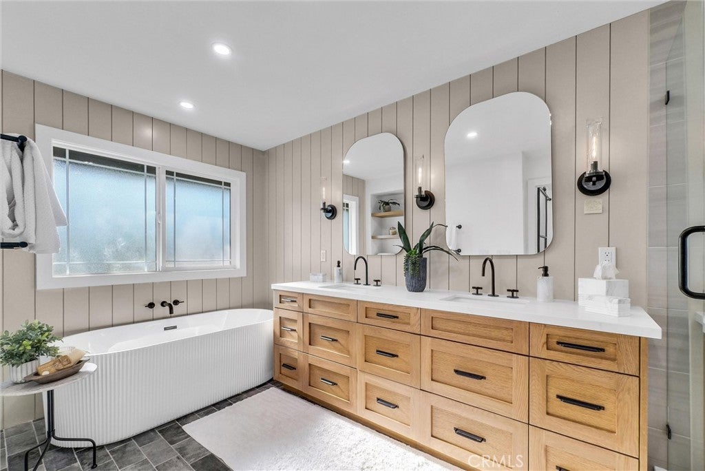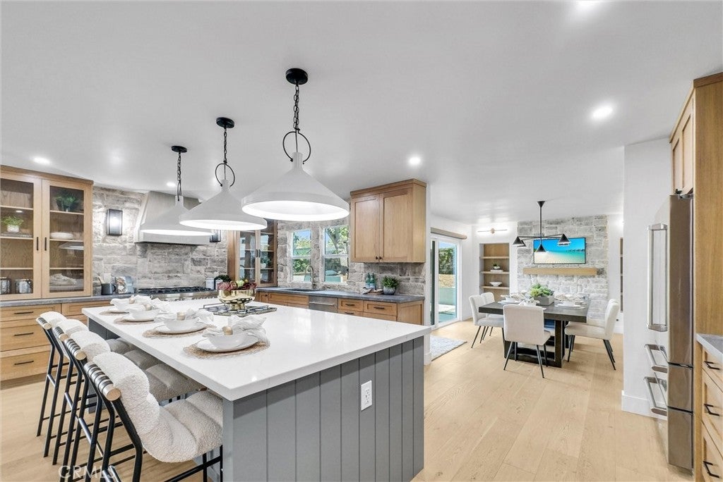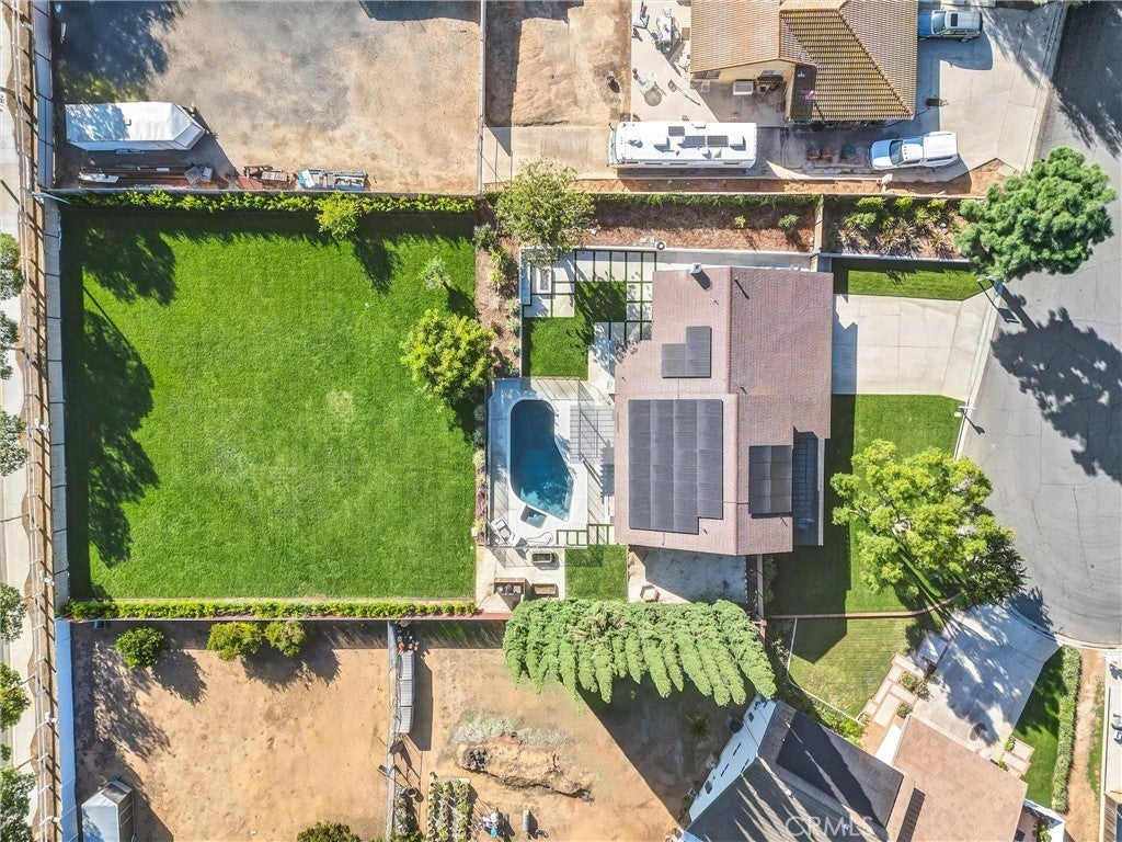 This stunning 4 bedroom, 3 bathroom Dual Master pool home is located on a completely flat half-acre lot at the end of a quiet cul-de-sac. Offering ample space for RV or boat parking, horses, and more. Upon entering the property, you'll be welcomed by vaulted ceilings, abundant natural light, and carefully curated designer finishes. The fully remodeled kitchen features custom oak cabinetry, a large island, stone backsplash, and high end stainless-steel appliances. The home offers two luxurious primary suites—one upstairs with a spa-like bathroom, walk-in closet, beverage center, and new washer and dryer. Another primary is downstairs with a floating double vanity and custom tiled shower. All bedrooms feature wide plank white oak flooring and generous closet space. Step into your resort-style backyard, complete with a newly plastered pool and spa, built-in gas fire pit, covered patio, BBQ island (now converted to natural gas), pool fence, and new wireless pool controller, lights, and pool sweep. The outdoor space has been extensively enhanced with stonework, landscape lighting, a new irrigation system with a smart sprinkler box and timer, new plants, tree removal, and borders around flower beds. Ready for your stables, sport court and other outdoor activities. Upgrades continue throughout the home with a New Paid Off solar system, custom closets, attic fan, soft water system, solar shades, EV chargers, 2 Tesla Powerwalls, and insurance-grade water flow monitoring (Flo system). With a three-car garage, sparkling pool, and access to award-winning schools, this one-of-a-kind property offers the ultimate in comfort, style, and functionality. This is California living at its finest!