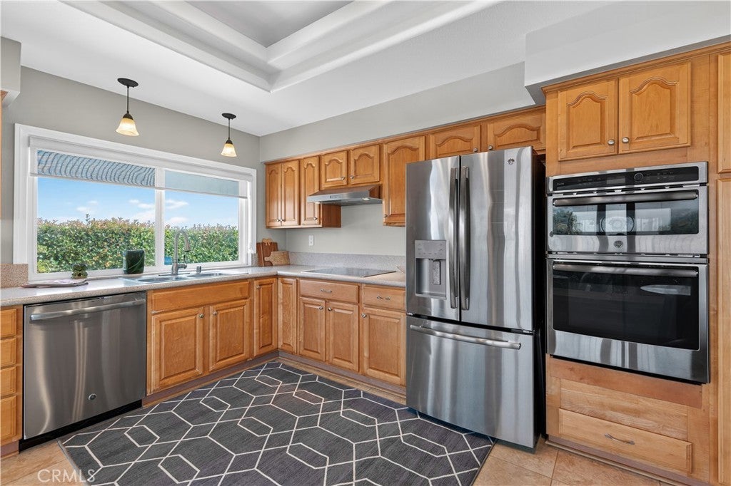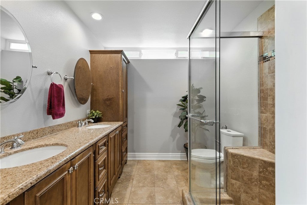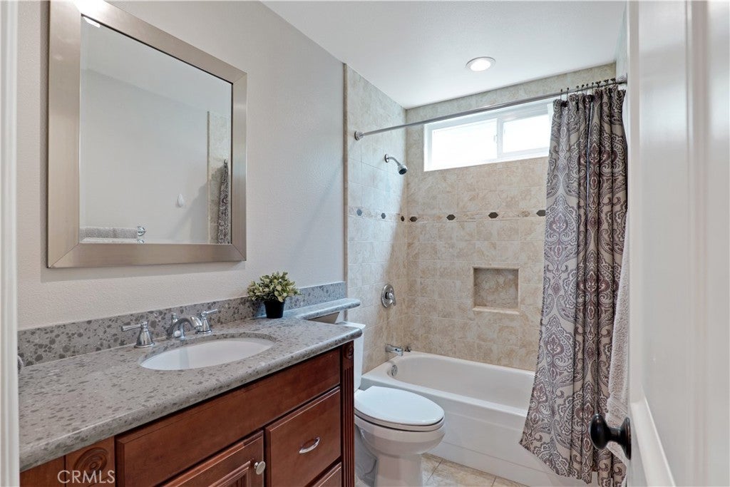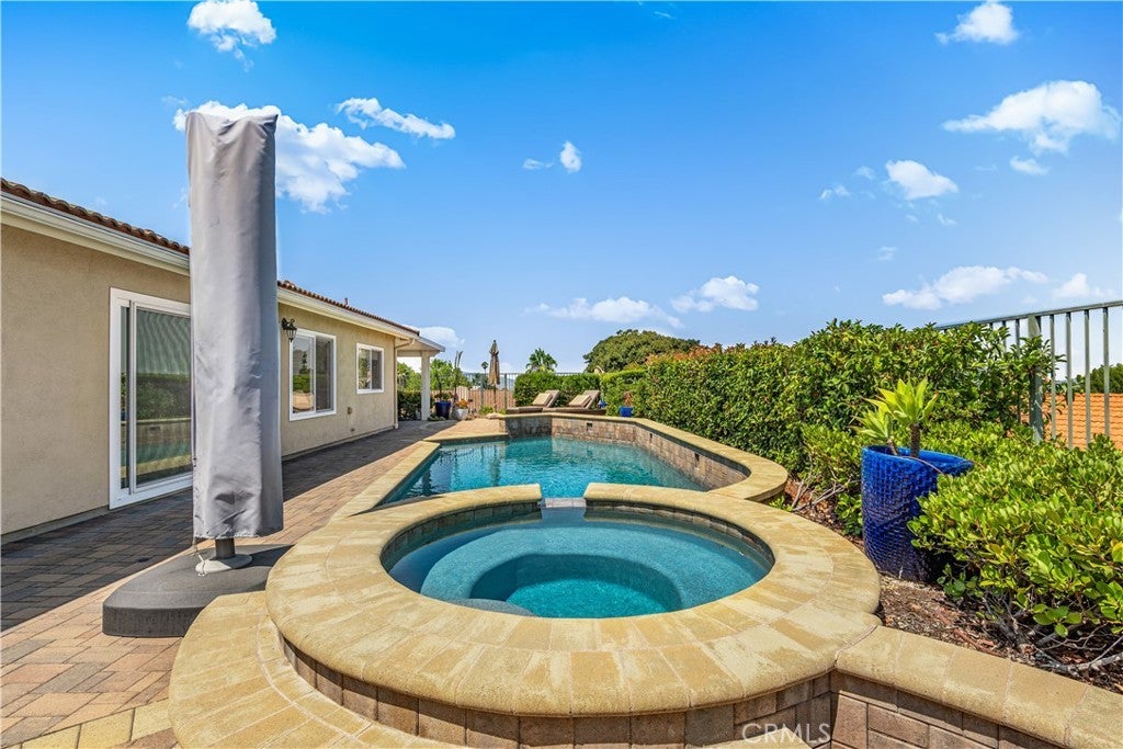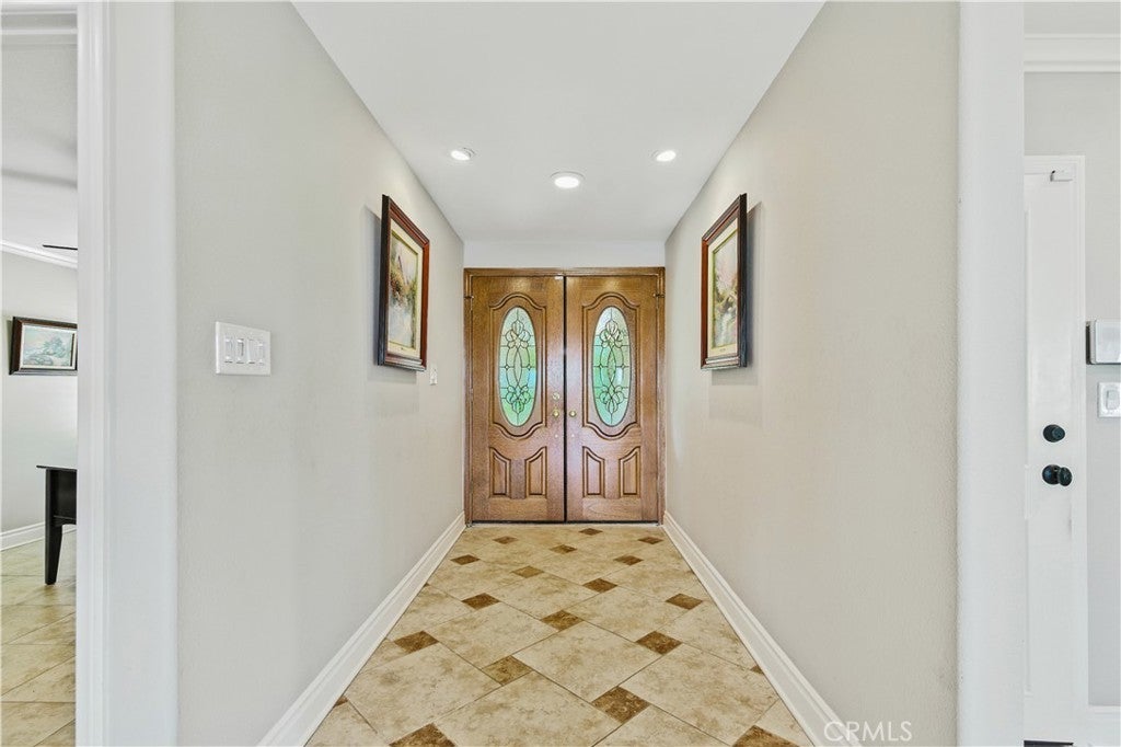 Highly upgraded single level home on quiet cull de sac with beautiful mountain & city lights views from rear yard with fountain, pool & spa. This private residence has no neighbor on one side as you're greeted with custom landscape, sego palms, rose bushes and brick pavers approaching decorative side & rear yard with patio overhang. After entering through custom front door you'll notice upgraded tile flooring throughout entertainment areas, fireplace in family room, cathedral ceiling in living room, upgraded dual pane windows. Gourmet kitchen boasts coffered ceiling, granite countertops, 4 burner GE Profile stovetop, roll down blinds in kitchen & family room. Primary suite & bathroom features double marble pullman sinks, built in storage. Added highlights include mirrored closet in 2nd bedroom, 3rd bedroom with new closet poles, decorator granite counter in guest bathroom, canned lighting throughout, extra attic storage with light, stairs & fan, tankless hot water heater, Life Source water system, built in rainbird & security system. Must See to appreciate!!