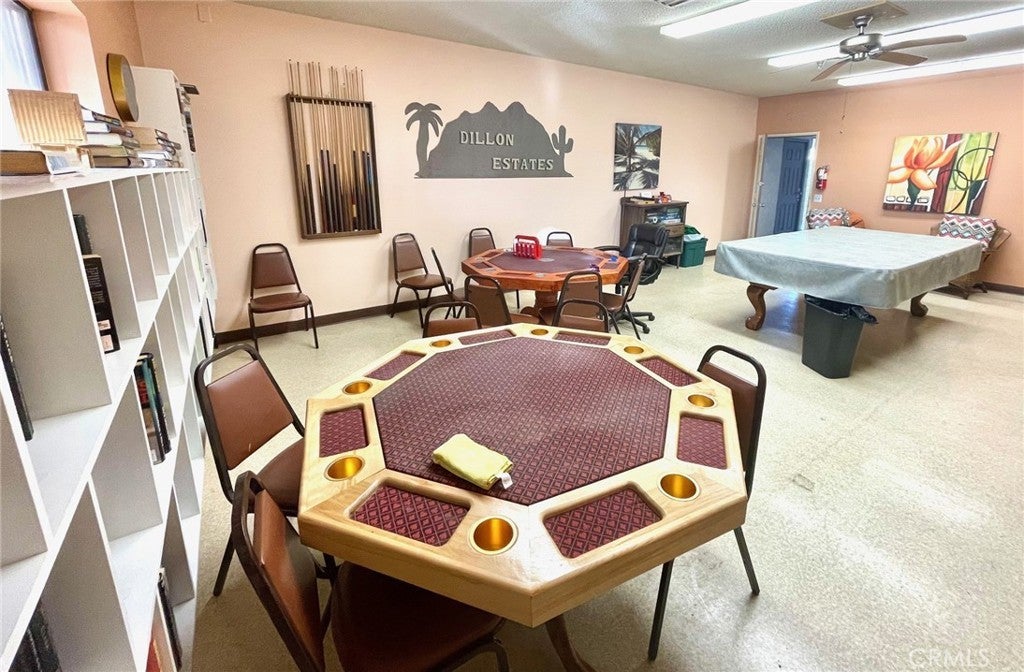 Billiard Room, Clubhouse, Controlled Access, Fitness Center, Game Room, Meeting/Banquet/Party Room, Outdoor Cooking Area, Barbecue, Picnic Area, Pool, Recreation Room, Spa/Hot Tub, Trash, Bocce Court, Dog Park, RV Parking