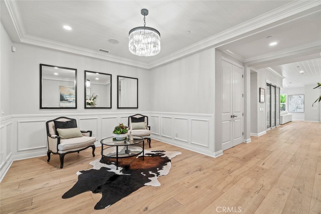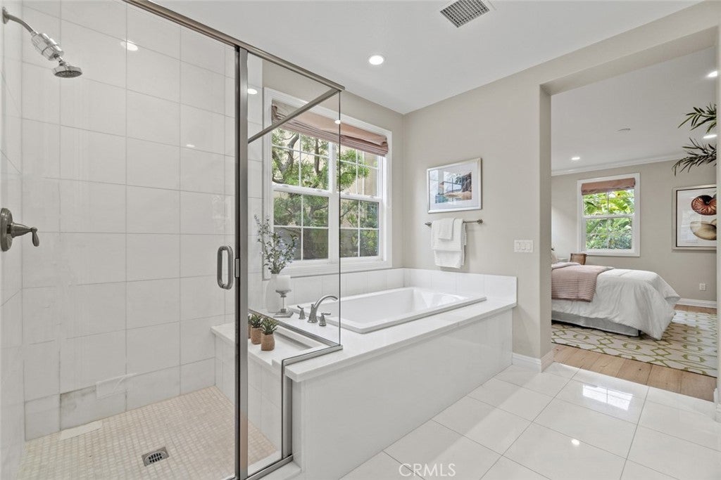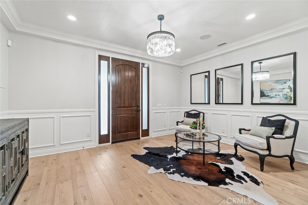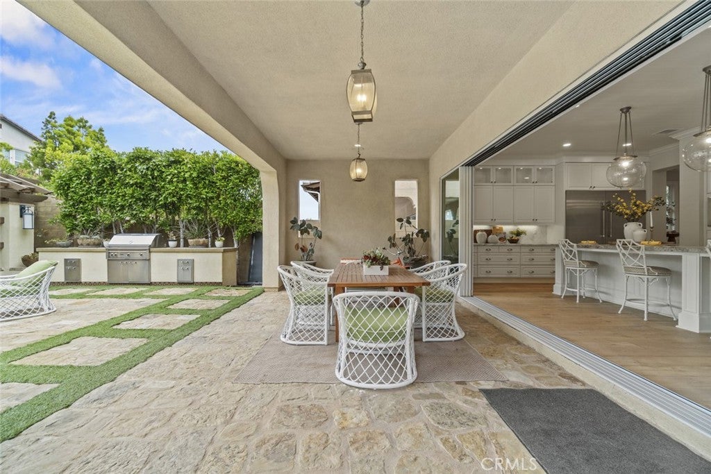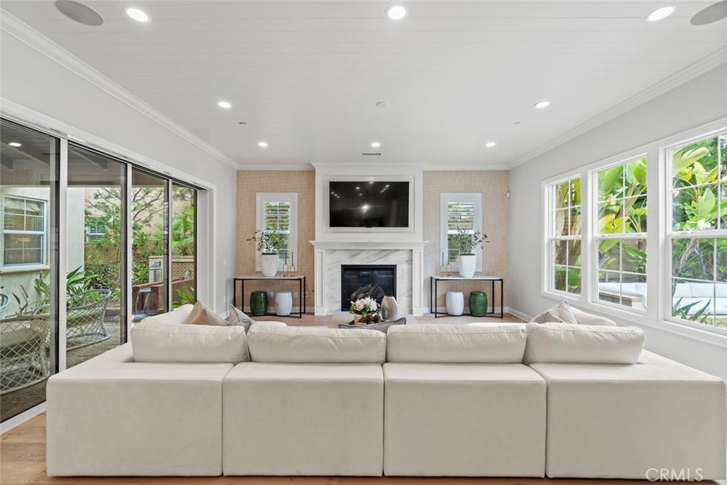 A stunning former model home located in the prestigious Great Park community. This beautifully designed residence features high-end upgrades throughout, including custom lighting, window treatments, wall paneling, wainscoting, and a state-of-the-art alarm and speaker system. The home’s interior exudes elegance with custom paint and thoughtful electrical enhancements. The main floor offers a junior master bedroom with a full bath, perfect for guests or multi-generational living. The gourmet kitchen is equipped with top-of-the-line Thermador stainless steel appliances, upgraded granite countertops, a custom backsplash, and white raised panel cabinets. Luxurious finishes continue in the primary suite, featuring marble slab upgrades in the master bath. The flooring throughout the home includes a blend of stone, wood, and carpet in designated areas, adding warmth and style. Step outside to the professionally landscaped front and back yards, where you'll find an outdoor BBQ, fire pit, and a tranquil courtyard fountain — perfect for entertaining or relaxing. As a resident of the Great Park community, enjoy access to premier amenities, including the five-acre Great Lawn, a resort-style pool and spa, sports courts, an outdoor kitchen, and recreational trails. The location offers convenience with direct access to Great Park facilities and inclusion in the highly acclaimed Irvine Unified School District, featuring the future Beacon Park K-8 School and Portola High School. This exceptional home blends luxury, comfort, and convenience in one of Irvine’s most sought-after neighborhoods. Don’t miss the opportunity to make it yours!