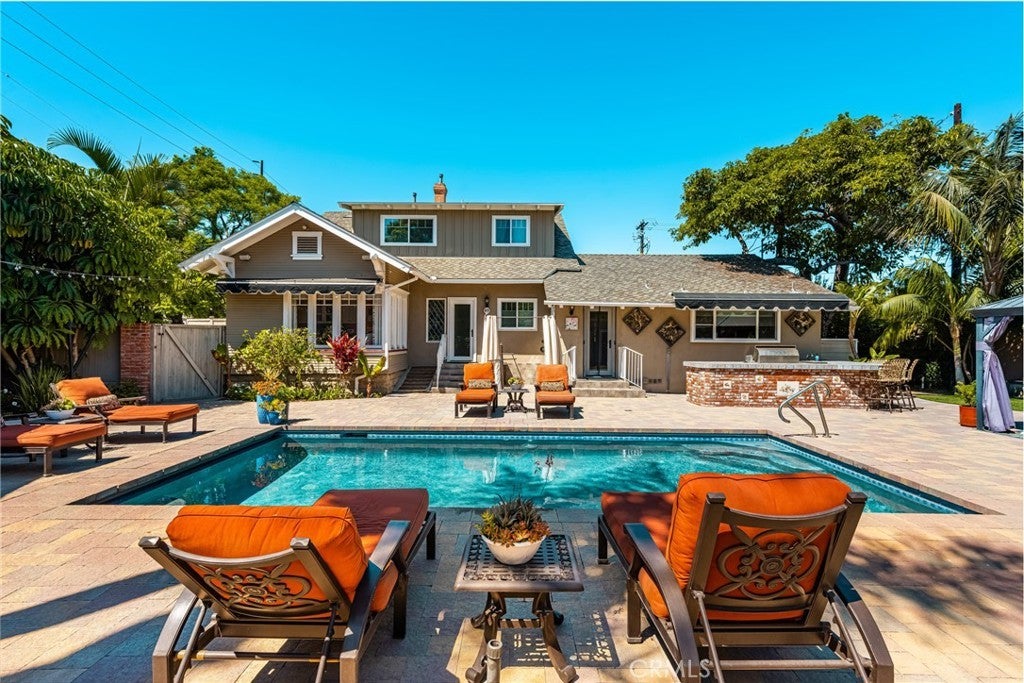 Step into history and timeless artistry with this extraordinary one of a kind property. The 1909-built Craftsman home offers 5 bedrooms and 3 bathrooms across a sprawling, one-of-a-kind estate. Every detail truly tells a story! Inside, custom wood flooring guides you through the first floor where multiple living spaces invite both comfort and connection. A warm family room with a cozy fireplace anchors the home which is highlighted by hand-milled wood vaulted ceilings featuring a striking wood beam that was carefully chosen and floated down the Mississippi River on its journey to being specifically placed. Overlooking the family room and backyard, the chef’s kitchen offers everything a modern entertainer could dream. The main floor primary suite is a true retreat. Featuring generous closets, a designer ensuite bath and a private enclosed patio with a custom outdoor patio and Jacuzzi. Finishing off downstairs, a versatile bedroom (currently used as an office) overlooking the stunning backyard, a laundry room, powder room and living room. Upstairs, you’ll find three well-sized bedrooms, a flexible common space perfect for reading or hobbies and a full bathroom with a luxurious Jacuzzi tub. Between the main residence and the former garage lies a beautifully manicured courtyard. The former approx. 420 square foot garage has been fully finished, creating the perfect bonus living area with ADU potential, an entertainment lounge or a game room. The backyard is an entertainer’s paradise, complete with a custom-built outdoor kitchen and BBQ, all centered around a sparkling saltwater pool. Beyond the pool sits a private approx. 552 square foot 1-bedroom, 1-bath casita featuring a modern kitchen, study nook, walk-in closet, laundry and its own serene garden and patio. Behind the casita, an additional structure providing the ideal setting for a private office or creative studio. Two newer garages with space for 4+ vehicles, a workshop and a massive upstairs storage area add to the property’s functionality. Surrounding it all shaded walking paths meander through lush gardens with avocado, persimmon trees, fountains and even an Australian Chestnut rivaling those found in Disneyland. Perfectly situated near Old Towne Orange, CHOC and St. Joseph’s Hospitals, shopping, dining, and freeway access, this estate is more than a home - it’s a rare masterpiece blending history, character, and modern convenience.