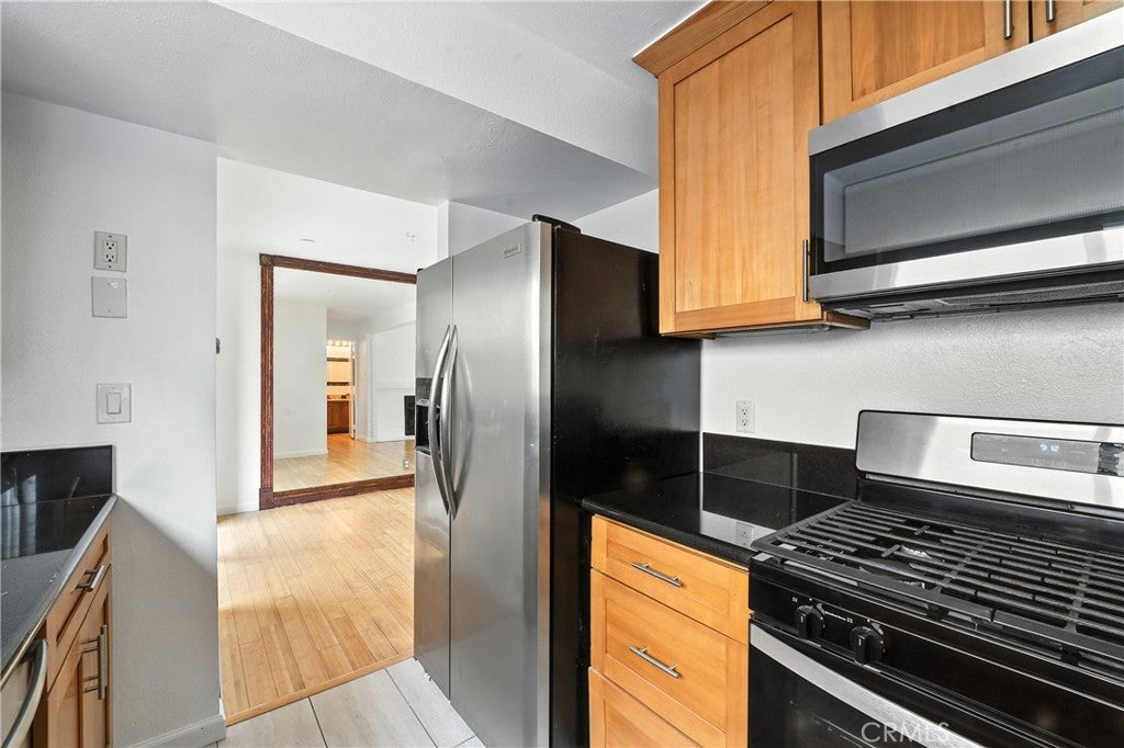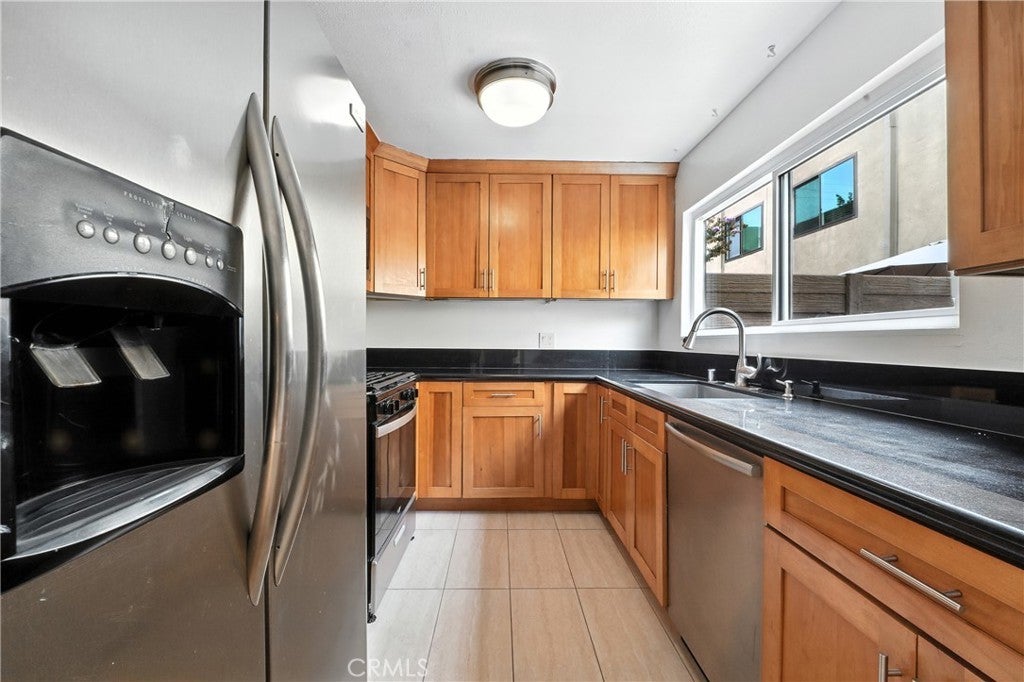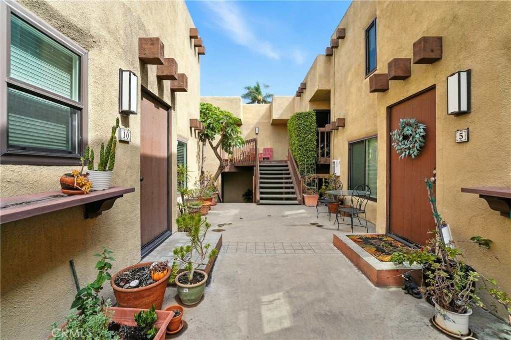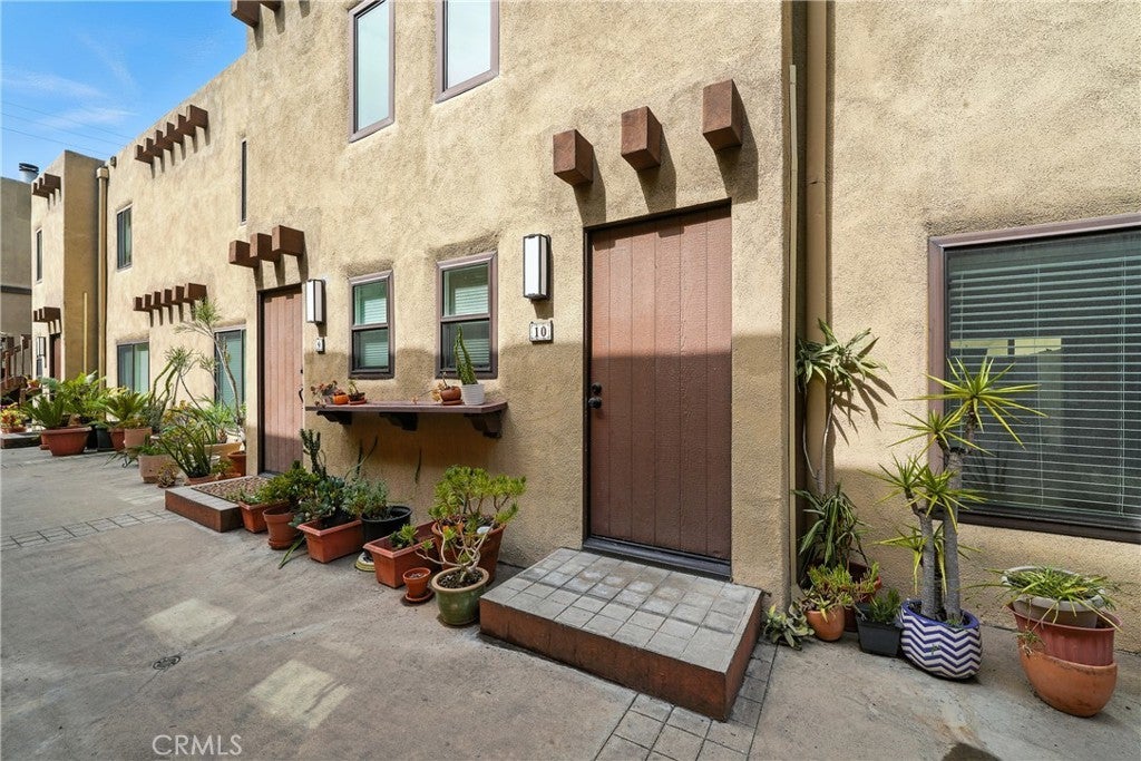 Welcome to 940 E 3rd St, #10, Long Beach. This beautifully updated Spanish style condo is just three blocks from the beach. With its two story layout, it lives more like a townhouse and offers the perfect blend of charm, comfort, and convenience in the heart of Downtown Long Beach. Step inside the front door and into the inviting living and dining area, featuring bamboo floors and abundant natural light. The updated kitchen showcases quartz countertops, wood shaker cabinets, stainless steel appliances (INCLUDED) and modern finishes. A downstairs half bath makes hosting guests effortless, while a sliding glass door from the dining area opens to a spacious private patio complete with a doggy door making this the perfect place for entertaining or relaxing outdoors. Upstairs, you’ll find two bedrooms, including one with a generous walk in closet and a full bathroom with a shower/tub combination. Additional highlights include central air and heat with a newer furnace, a Nest thermostat, a secured building entrance and updated windows throughout. Parking is a breeze with two dedicated spaces that include one PRIVATE garage and one secured carport. The community is well maintained by a proactive HOA, giving you peace of mind and pride of ownership. All of this, just moments from the beach, shops, dining, and everything vibrant Downtown Long Beach has to offer.