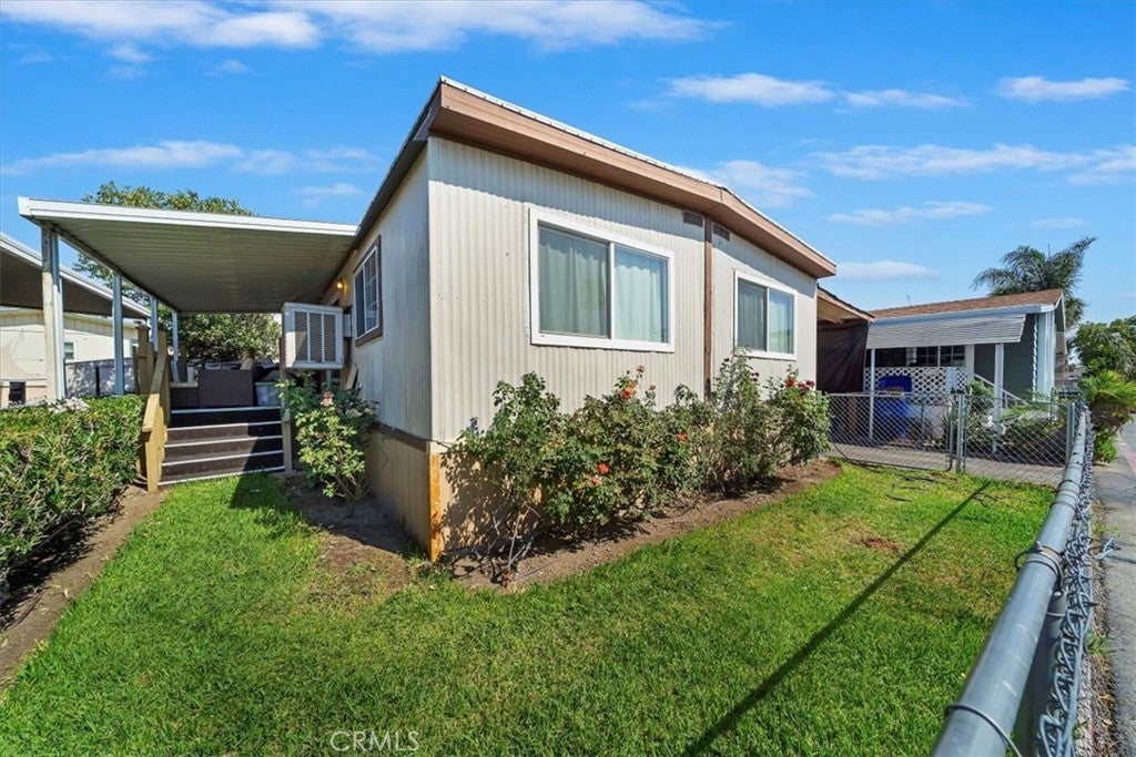 Beautiful 4 Bedroom, 2 Bath Mobile Home! This spacious residence features a newly painted exterior, recessed lighting throughout, elegant crown molding, wood laminate flooring, and beautifully upgraded kitchen and bathrooms. Enjoy the convenience of a 3-car carport, a fully fenced yard with a storage shed, and a lush landscaped setting filled with flowers and plants. Centrally located near shopping, dining, schools, and freeway access. With so much to offer, this home is truly a must-see!