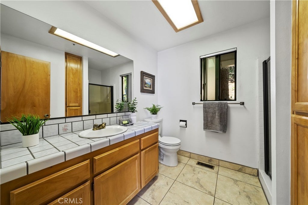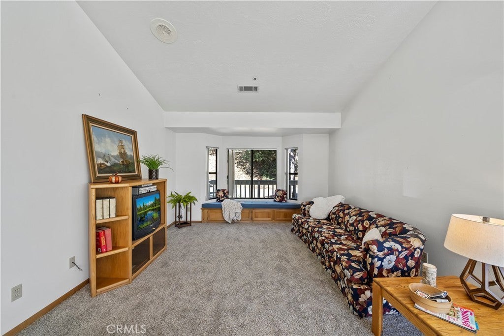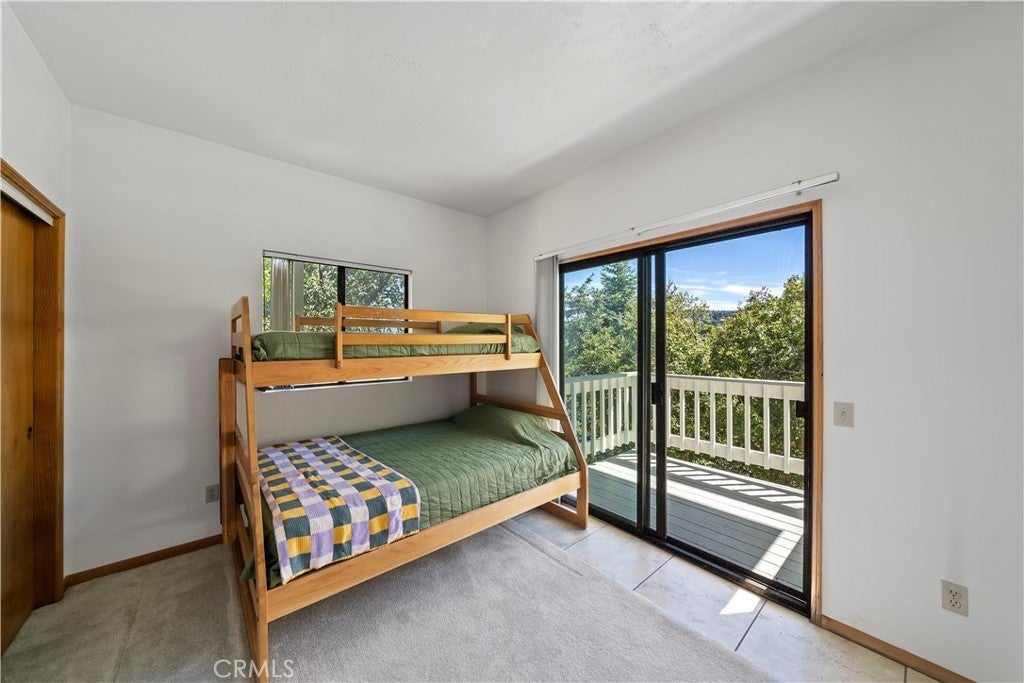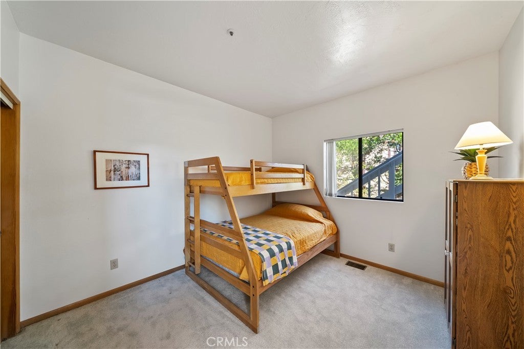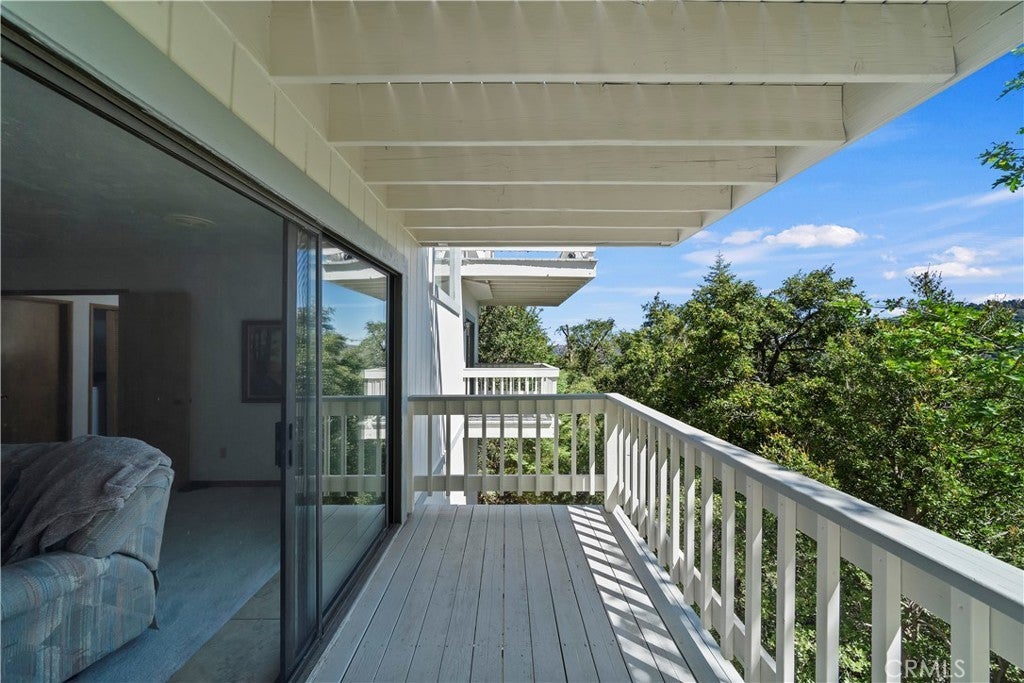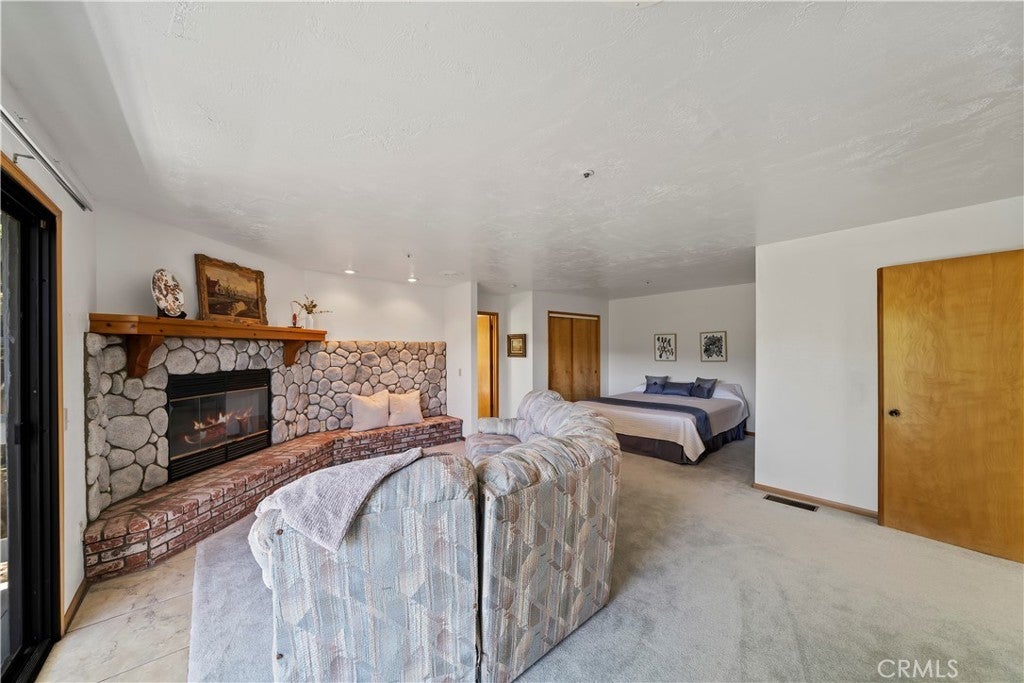 Nestled in the forest is your opportunity to own a mountain chalet with a open floorplan. Step through the foyer and take in the views from the windows and doors. The living room beckons you to come in and relax by the fireplace with raised hearth and rich mantle. It also features a bay window seating area with storage cabinets as well. Relax and read a book by the window with a view. The living room also has a walk-on deck with view of the forest. Invite family and friends over for dinner in your formal dining room with a walk-on deck perfect for a BBQ, taking in the sunrise early in the morning with a cup of coffee, or maybe star gazing in the evening. Great kitchen with ample counterspace and cabinetry, new dishwasher, 5 burner gas cooktop, trash compactor, convection microwave, oven, refrigerator/freezer, breakfast bar including the bar stools. Powder room as well. The second level features a primary suite with living area with walk-on deck perfect for relaxing, amazing fireplace with raised hearth and mantle, bedroom area has two closets, adjoining primary bath features dual vanity, step up separate soaking tub with massaging jets, separate walk in shower, walk-on deck off bath, walk in closet, and your own private sauna. 1st secondary bedroom has window with view and two closets, 2nd secondary bedroom has it's own walk-on balcony with view, Plus a inside laundry room that includes the washer and dryer, 3rd level is a spacious bonus room that was basement area. It comes with pool table and light, a table with chairs for playing cards, games or eating area. The flooring at the table area is tiled. Remaining room is carpeting, large area for kids to play, storage area under the stairway perfect for toys, games, etc. Plenty of room for family and friends over for the weekend, holidays, etc. There is a two car garage with automatic opener and the driveway can hold two additional cars. Close to Lake Gregory with water park, swim beach, Lake trail, Skate park, boating, kayaking, paddle boarding and dog park. Property is perfect for short-term rental or year round living. Celebrate the Christmas holidays this year in your mountain home. Don't miss this great opportunity to call this your new home.