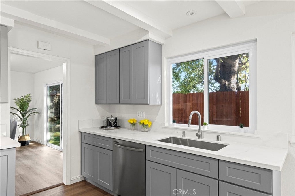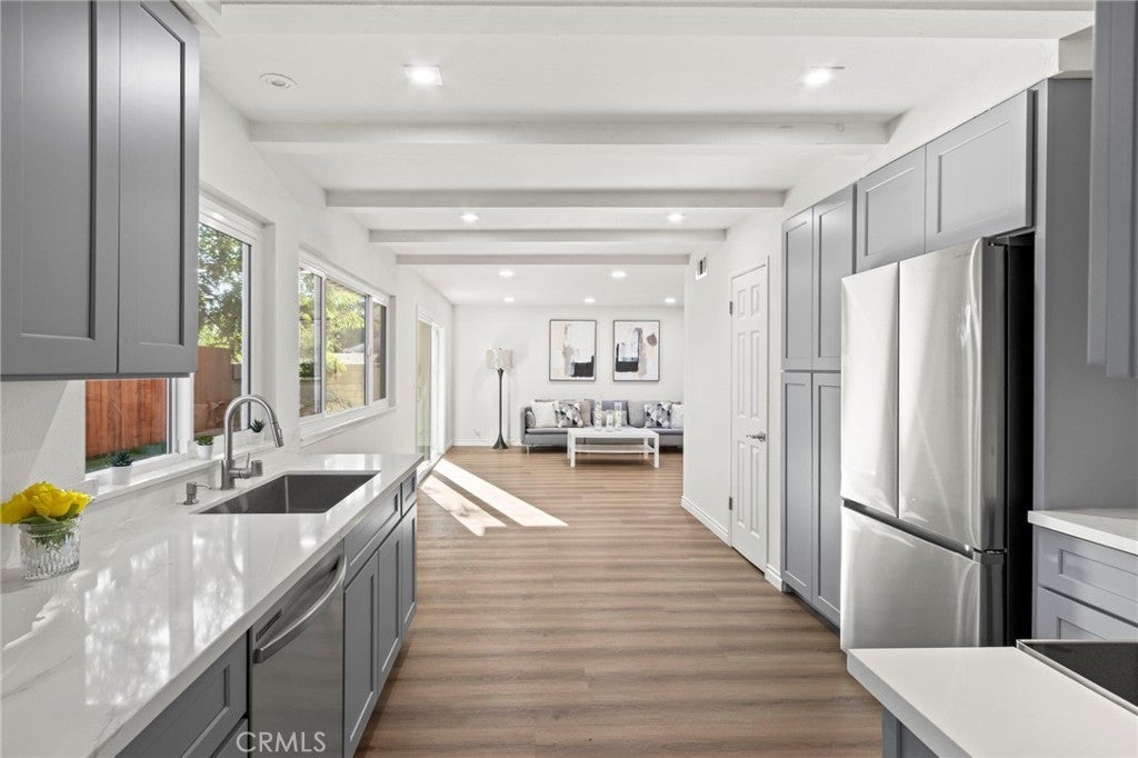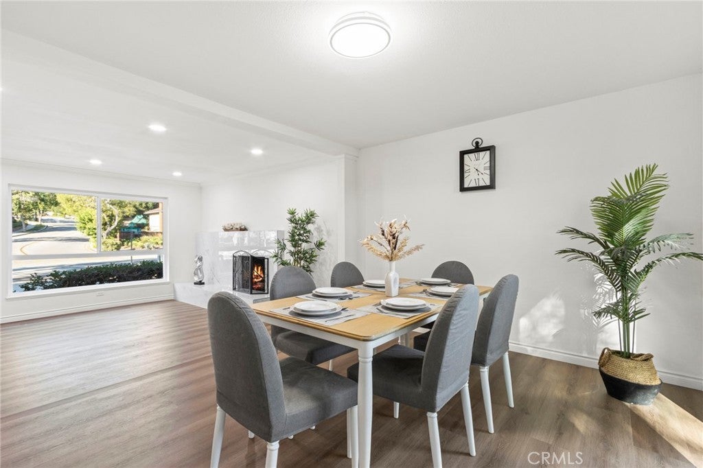 Welcome to this beautifully renovated 5 bedroom, 2.5 bathroom home in the heart of Brea. This spacious two story residence has been thoughtfully updated inside and out, offering modern comfort with timeless style. Step through the inviting double door entry into a light filled interior featuring new LVP flooring, recessed lighting, and fresh paint throughout. The sunken living room boasts a cozy fireplace and large windows that flood the space with natural light. A generously sized dining room opens through sliding glass doors to the newly landscaped backyard, perfect for indoor & outdoor entertaining. The chef’s kitchen is a true highlight with stainless steel appliances, stone countertops, custom cabinetry, and a window over the sink that frames the view. Adjacent to the kitchen, you’ll find an additional family room complete with a bar area and convenient laundry room. The updated powder bath rounds out the downstairs living space. Upstairs, a striking chandelier sets the tone as you discover five well sized bedrooms with new windows and ample closet space. The primary retreat includes an en suite bath and private patio, offering a peaceful escape. Outdoors, enjoy a brand new sod lawn, patio area, and fencing, creating a private space to relax or entertain. Brea Olinda Unified School District offers enriching Science, Technology, Engineering, Arts and Mathematics (STEAM) programs in elementary, junior high and high school. Located near Brea Mall, downtown shopping and dining, and easy freeway access, this home truly has it all.