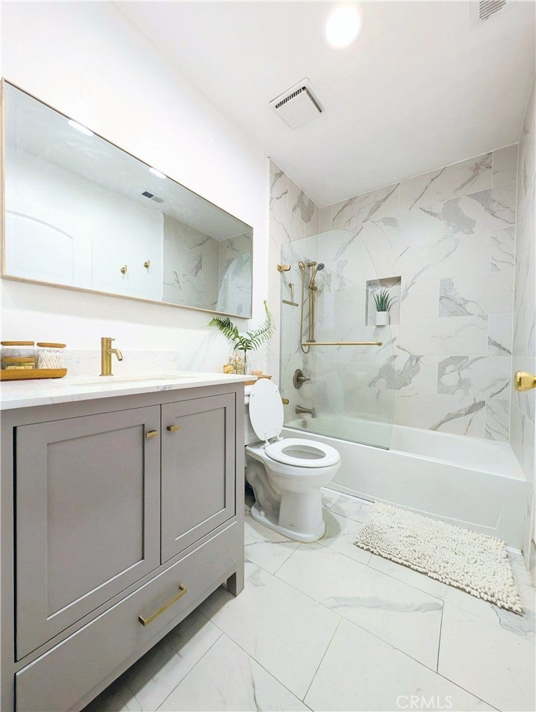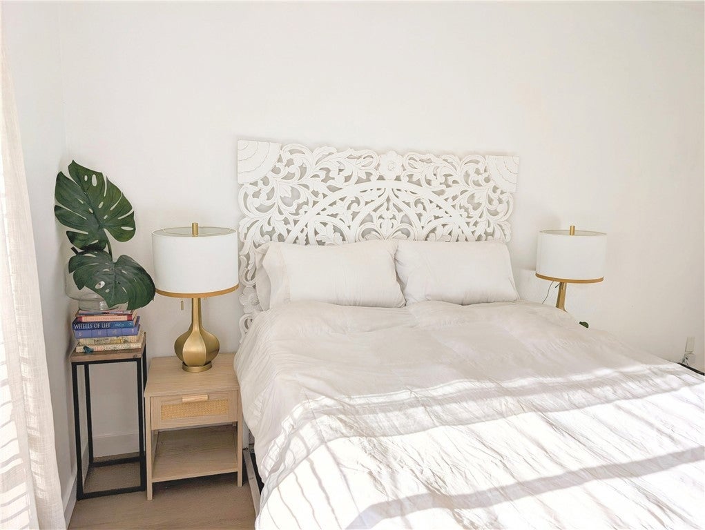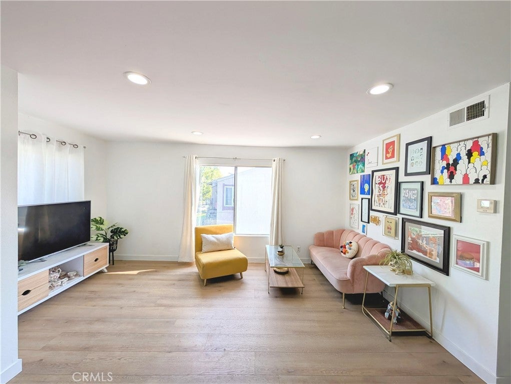 Welcome to this charming upstairs corner end unit. This updated 2 bedroom and 1 bathroom home offers an open floor plan with plenty of natural light, waterproof luxury vinyl plank flooring, recessed lighting and central AC and heating. The kitchen features white calacatta quartz with a waterfall edge, brushed stainless steel appliances and fixtures, shaker cabinets and reverse osmosis water filter system under the sink. The bathroom features quartz countertop, large marble like tiles and brushed gold fixtures. Home has in unit laundry room and an extra closet in the hallway for extra storage. Parking is in your own detached tandem 2 car garage in the gated community that offers swimming pool and spa, picnic area and playground. Low HOA covers landscaping, water, trash, and common area maintenance. Located next to the 710 freeway and close to the 10, 60 and 5 freeways, you're just minutes from downtown LA, restaurants, shops and CSULA.