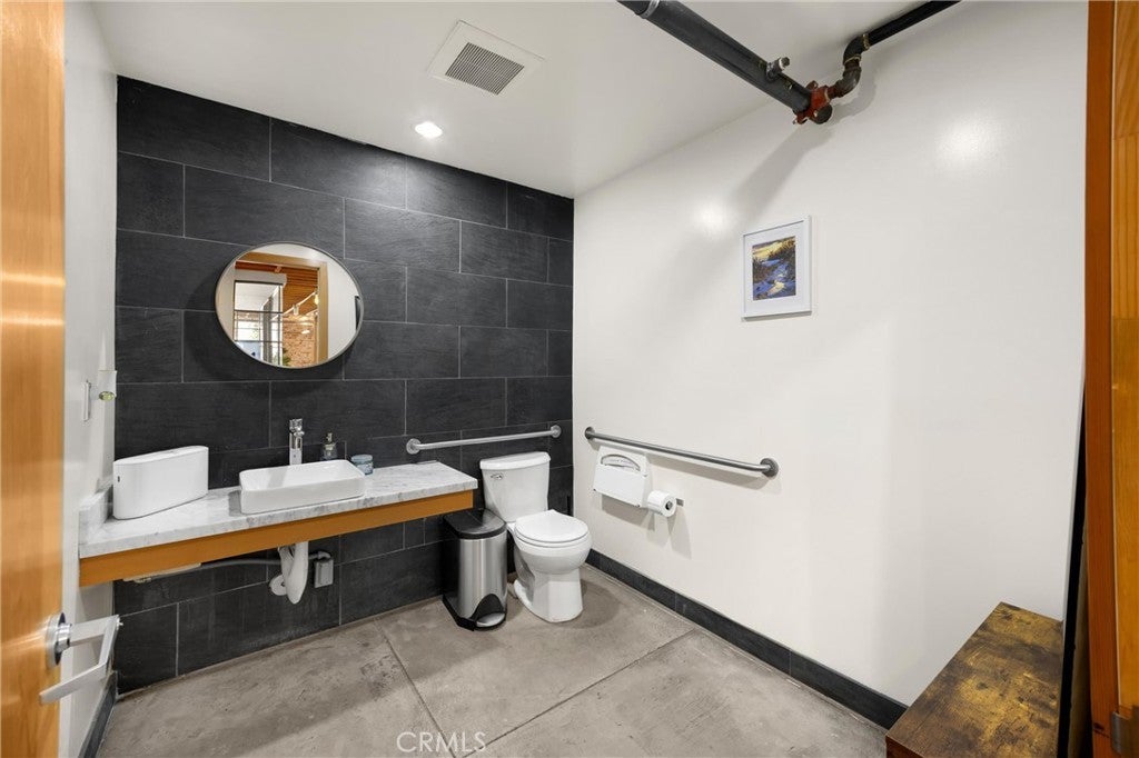 We are proud to present an extraordinary loft-style office space that redefines modern sophistication. Perfectly situated in the heart of Downtown Long Beach’s vibrant Arts District, this one-of-a-kind property blends historic local charm with contemporary design. From the moment you step inside, you’re greeted by striking architectural details — soaring ceilings, exposed brick walls, sleek cement floors, and expansive floor-to-ceiling glass that floods the interior with natural light. Every corner of this office exudes style, energy, and inspiration. The layout has been thoughtfully designed to balance privacy and collaboration. Featuring 8 private office suites, several open office spaces, spacious conference room, recently upgraded grand open-concept kitchen, welcoming front reception, and two well-appointed restrooms, this property provides both functionality and elegance. A dedicated private space further enhances its versatility, making it ideal for dynamic teams and creative professionals. 425 E. 4th E. Street isn’t just an office — it’s a statement. A place where innovation meets sophistication, designed to impress clients and energize your team. The recent improvements to this space are both extensive and value-enhancing. For additional information or to arrange a detailed discussion, please contact the listing broker.
